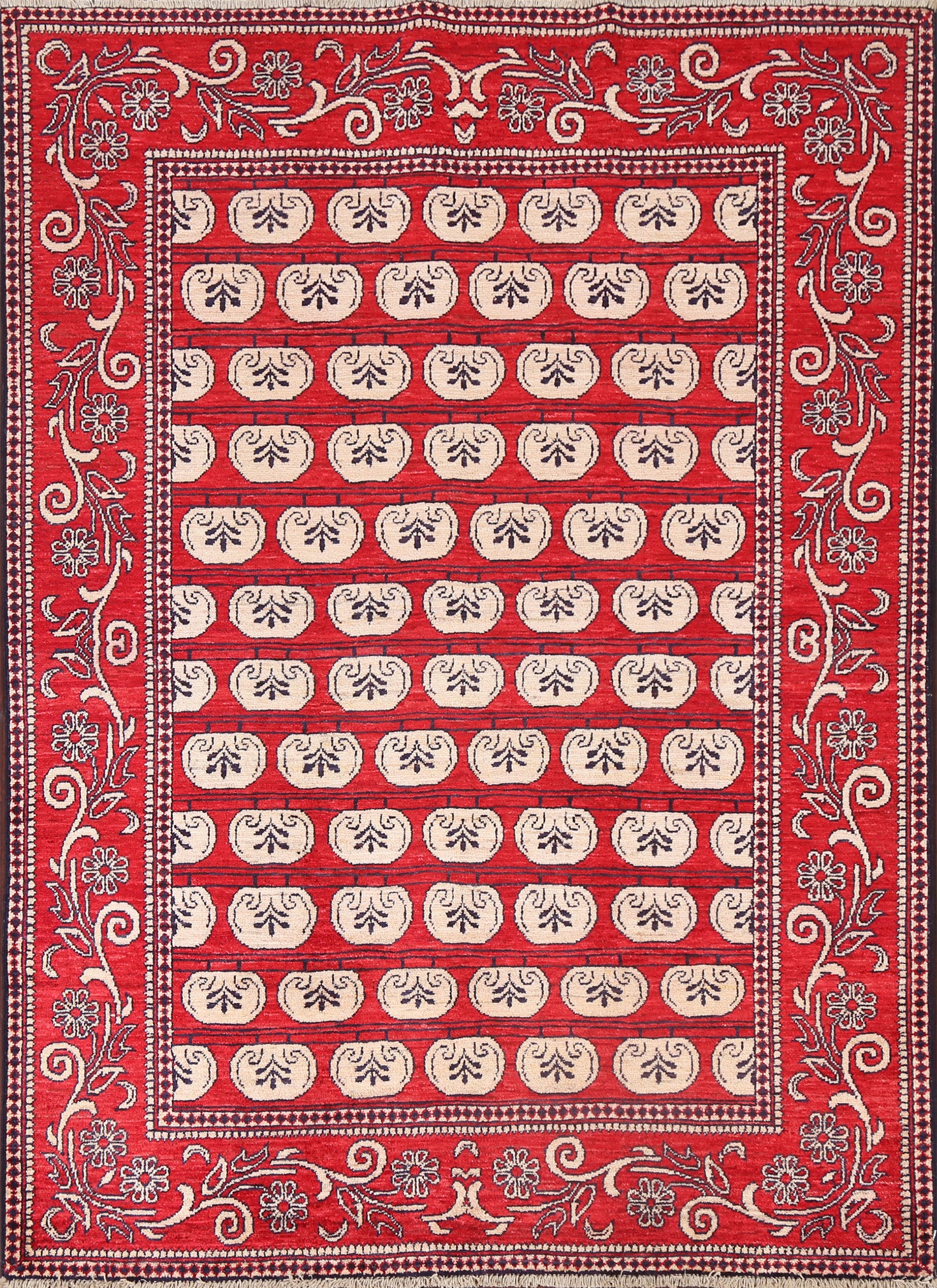 A Beautiful Genuine Pakistan Gabbeh (kashkoli) rug is Hand Knotted by skillful weavers in Pakistan with 100% Wool Material. This rug is in New, First Quality condition. dimensions are 6' 4'' X 4' 11'' in foot and 193 X 150 in centimeter. the primary color is Red.
