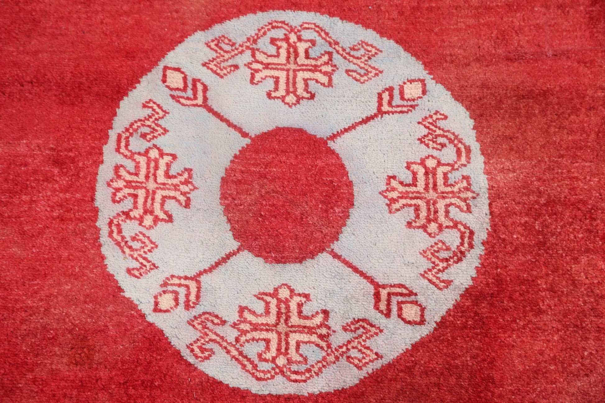 A Beautiful Genuine Pakistan Gabbeh (kashkoli) rug is Hand Knotted by skillful weavers in Pakistan with 100% Wool Material. This rug is in New, First Quality condition. dimensions are 7' 10'' X 5' 0'' in foot and 239 X 152 in centimeter. the primary color is Red.