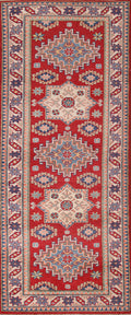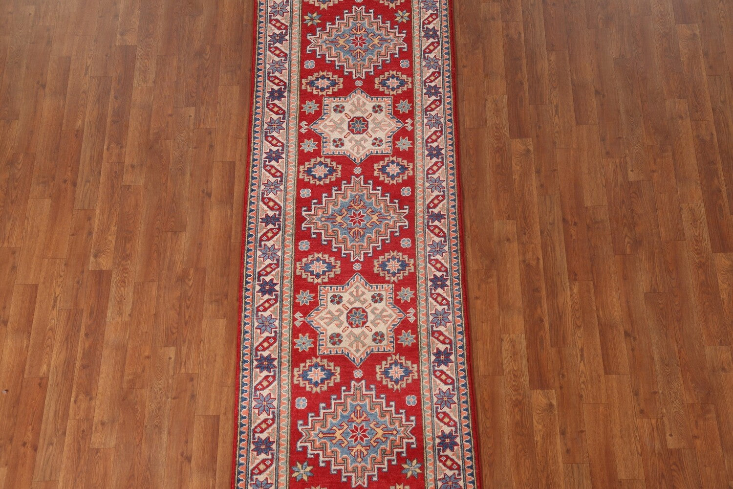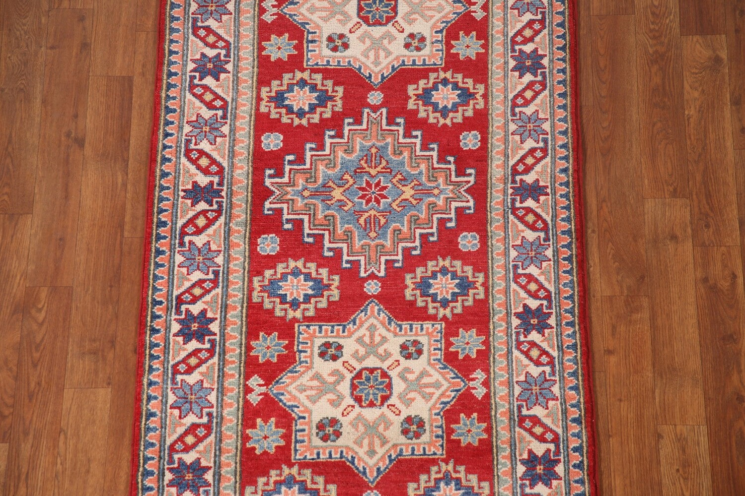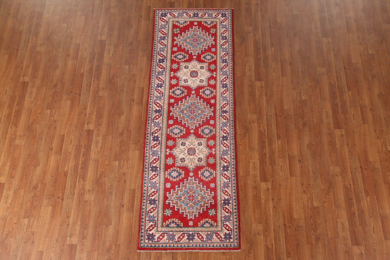 Red Handmade Kazak Oriental Runner Rug 3x8