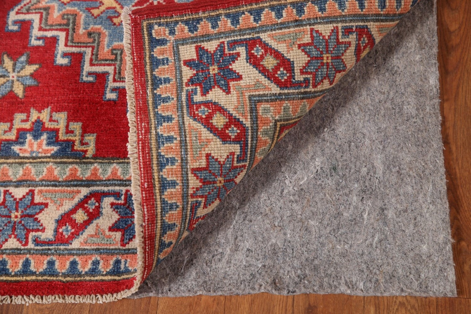 A Beautiful Genuine Pakistan Kazak rug is Hand Knotted by skillful weavers in Pakistan with 100% Wool Material. This rug is in New, First Quality condition. dimensions are 8' 0'' X 2' 8'' in foot and 244 X 81 in centimeter. the primary color is Red.