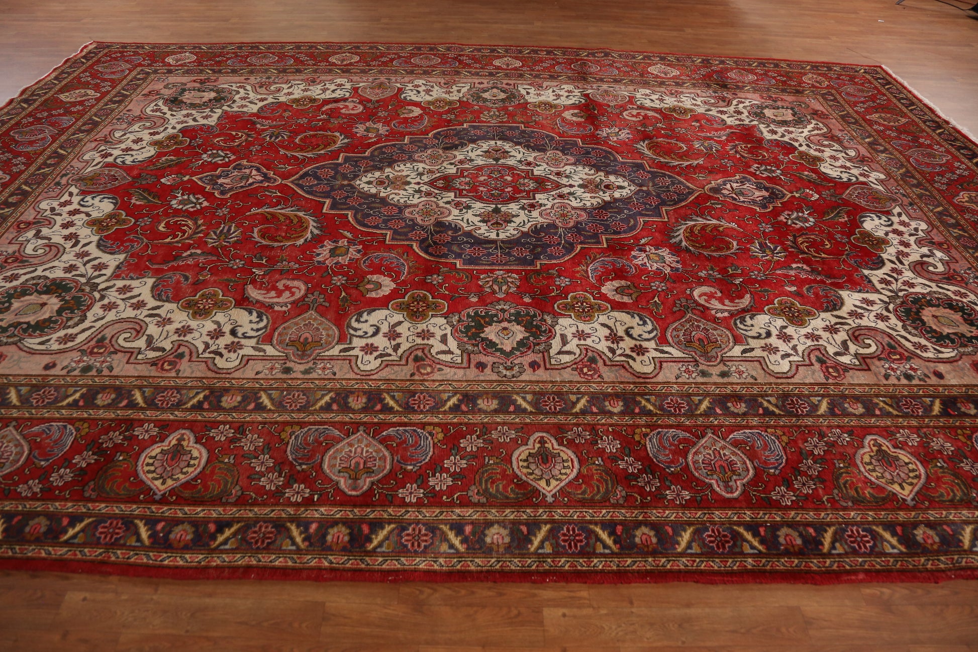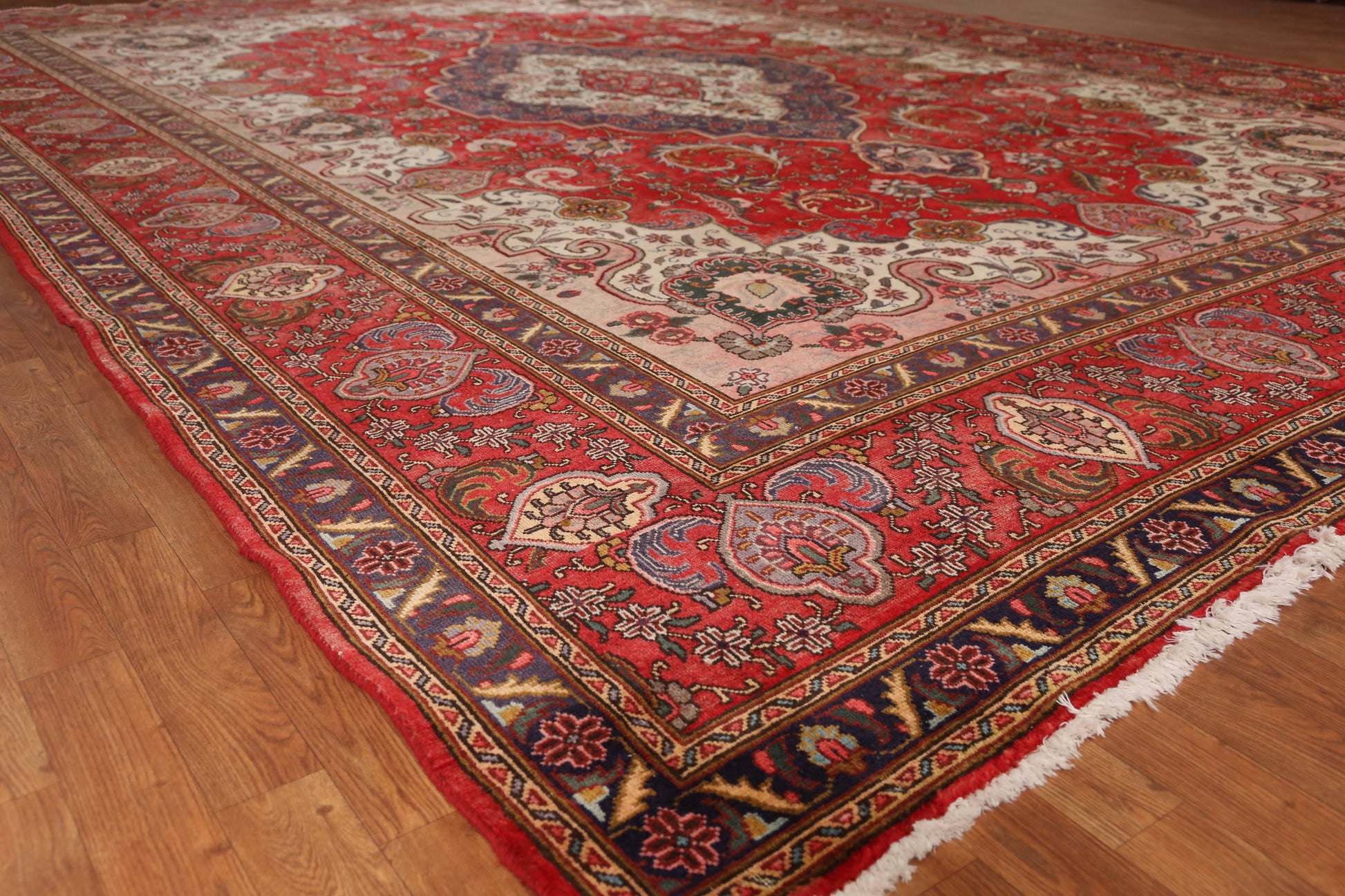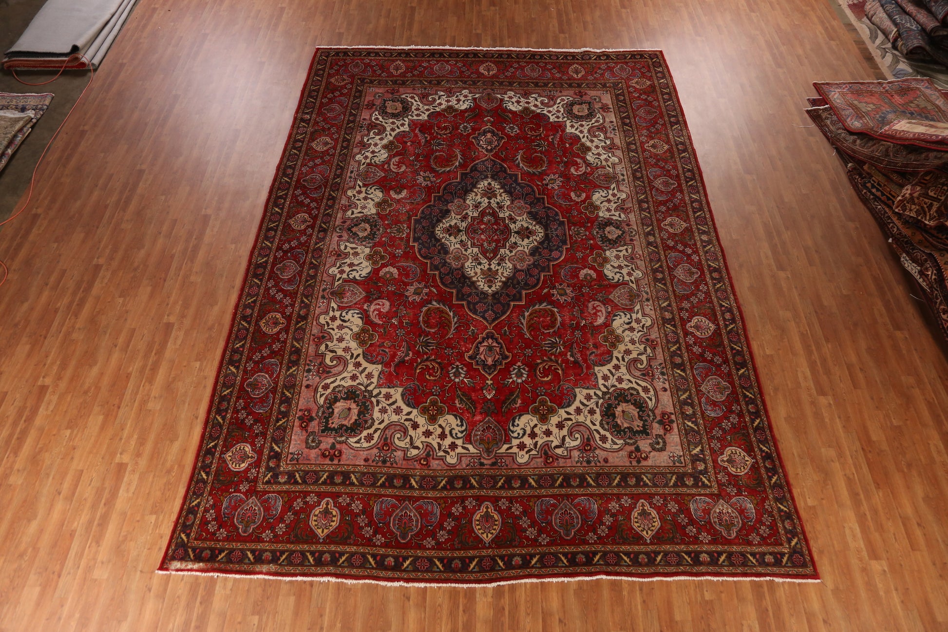 Red Medallion Wool Tabriz Persian Large Rug 11x16