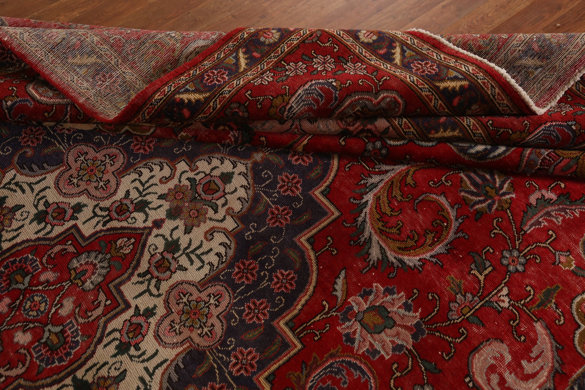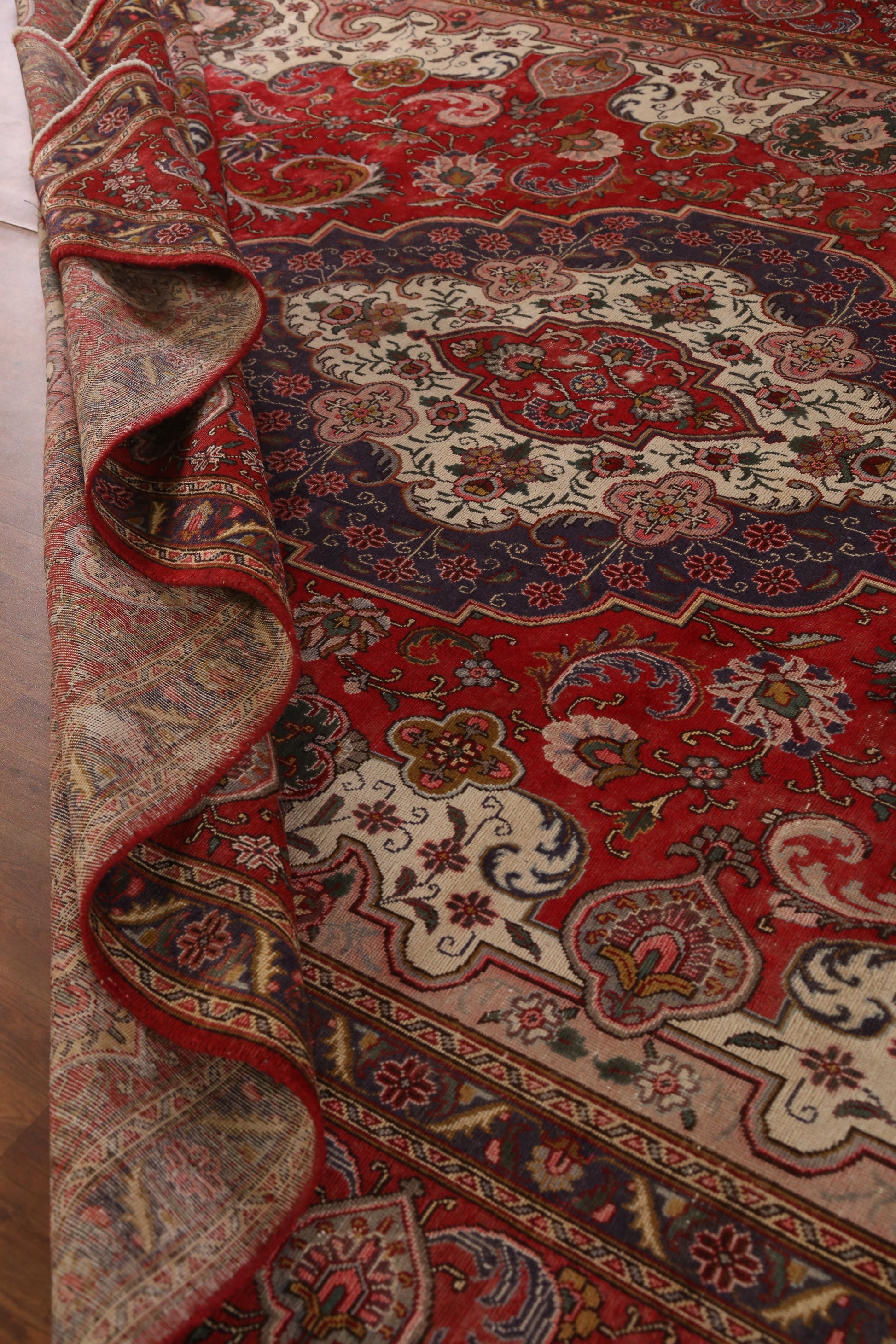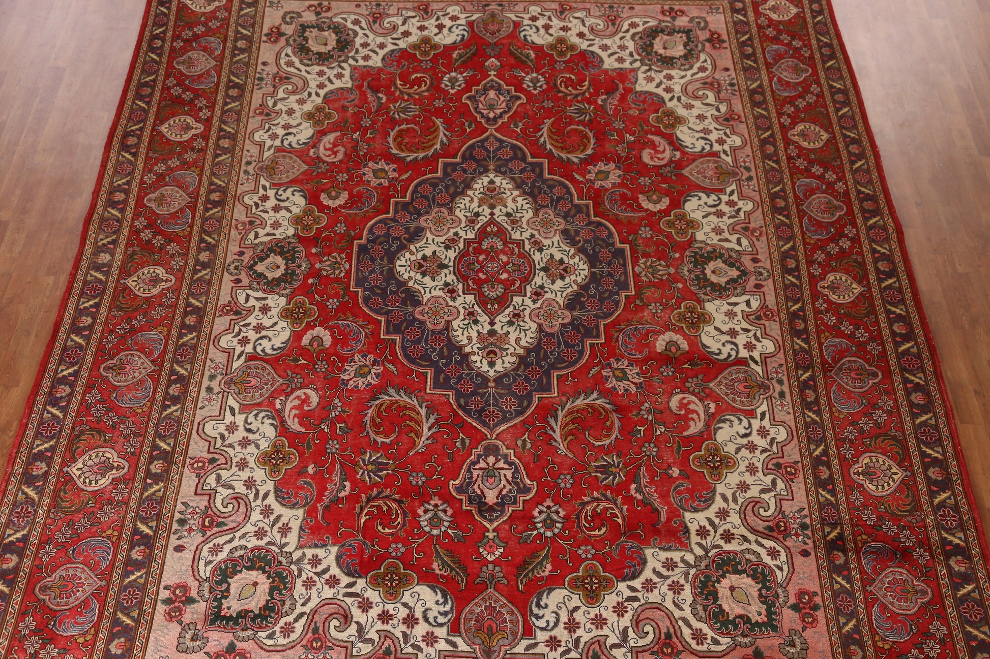 Red Medallion Wool Tabriz Persian Large Rug 11x16