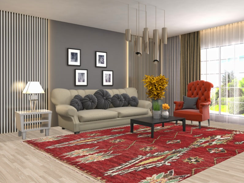 A Beautiful Genuine Morocco Moroccan rug is Hand Knotted by skillful weavers in Morocco with 100% Wool Material. This rug is in New, First Quality condition. dimensions are 10' 8'' X 7' 4'' in foot and 325 X 224 in centimeter. the primary color is Red.