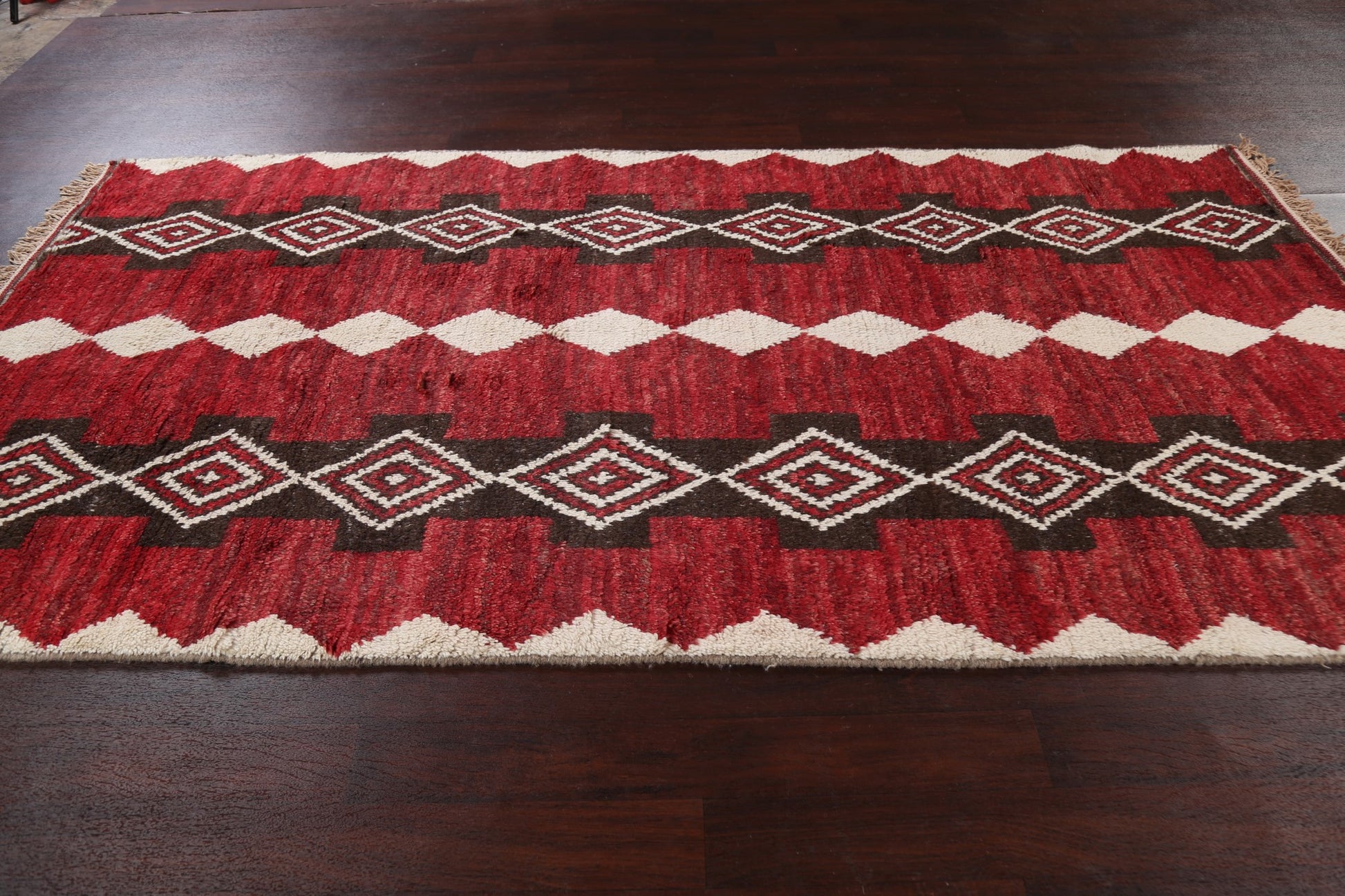 Red Moroccan Wool Area Rug 5x11