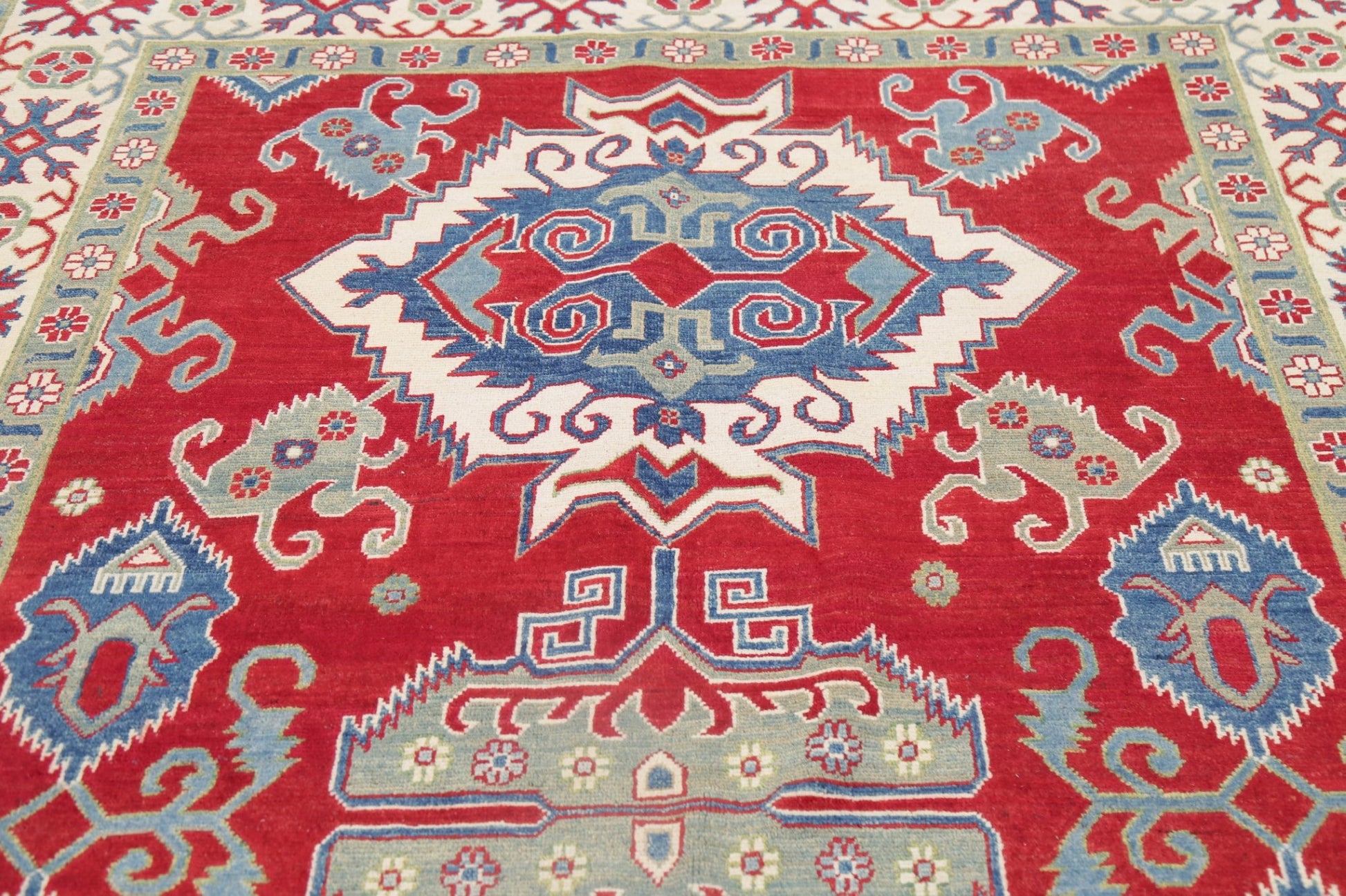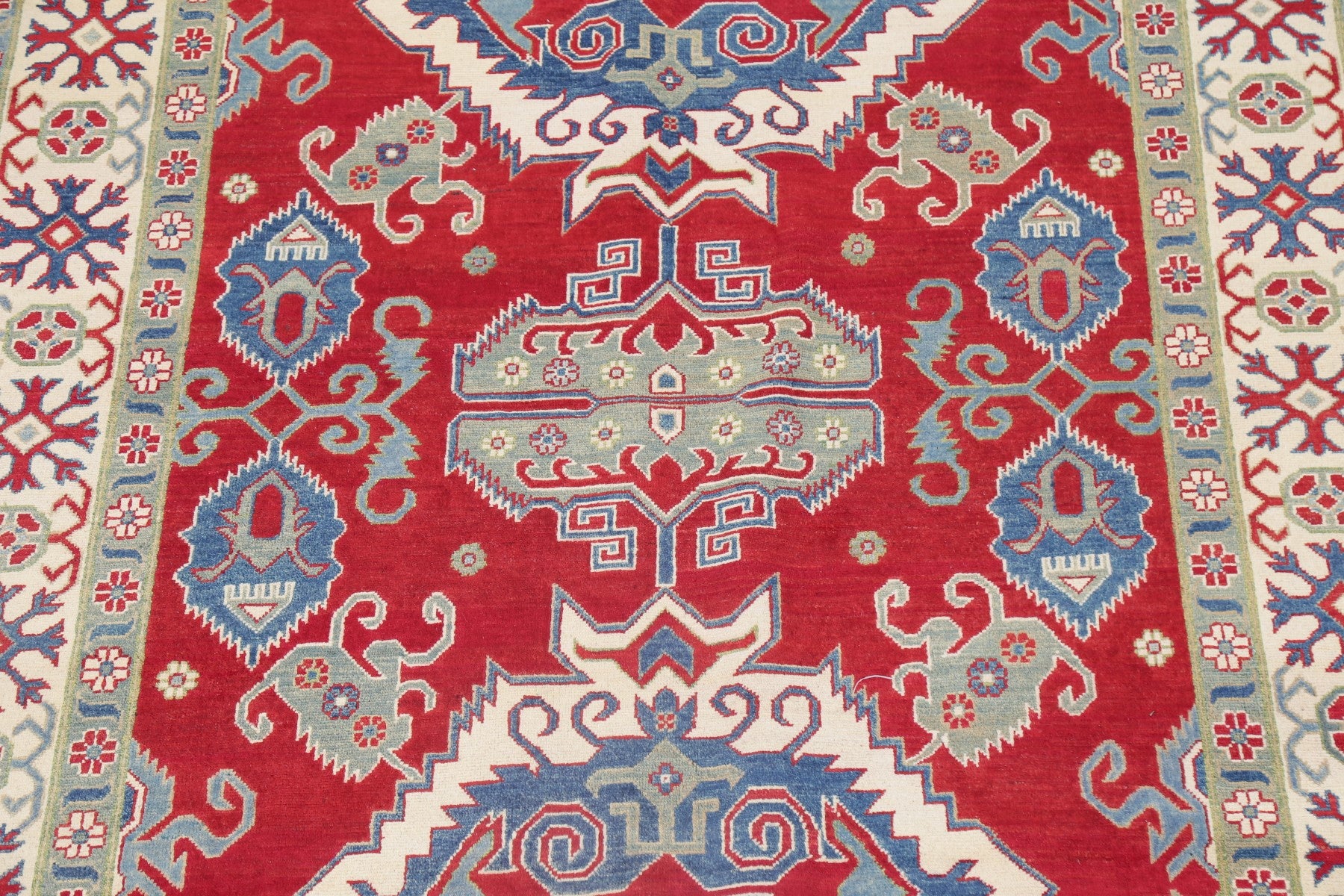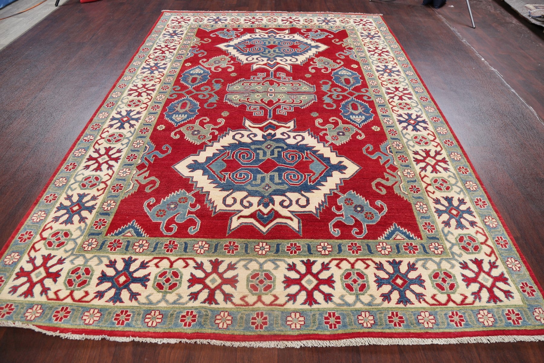 Red Super Kazak-Chechen Oriental Wool Area Rug 7x10