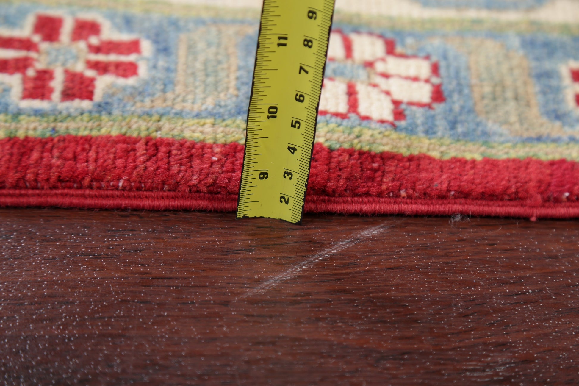 A Beautiful Genuine Pakistan Kazak rug is Hand Knotted by skillful weavers in Pakistan with 100% Wool Material. This rug is in New, First Quality condition. dimensions are 9' 9'' X 6' 6'' in foot and 297 X 198 in centimeter. the primary color is Red.