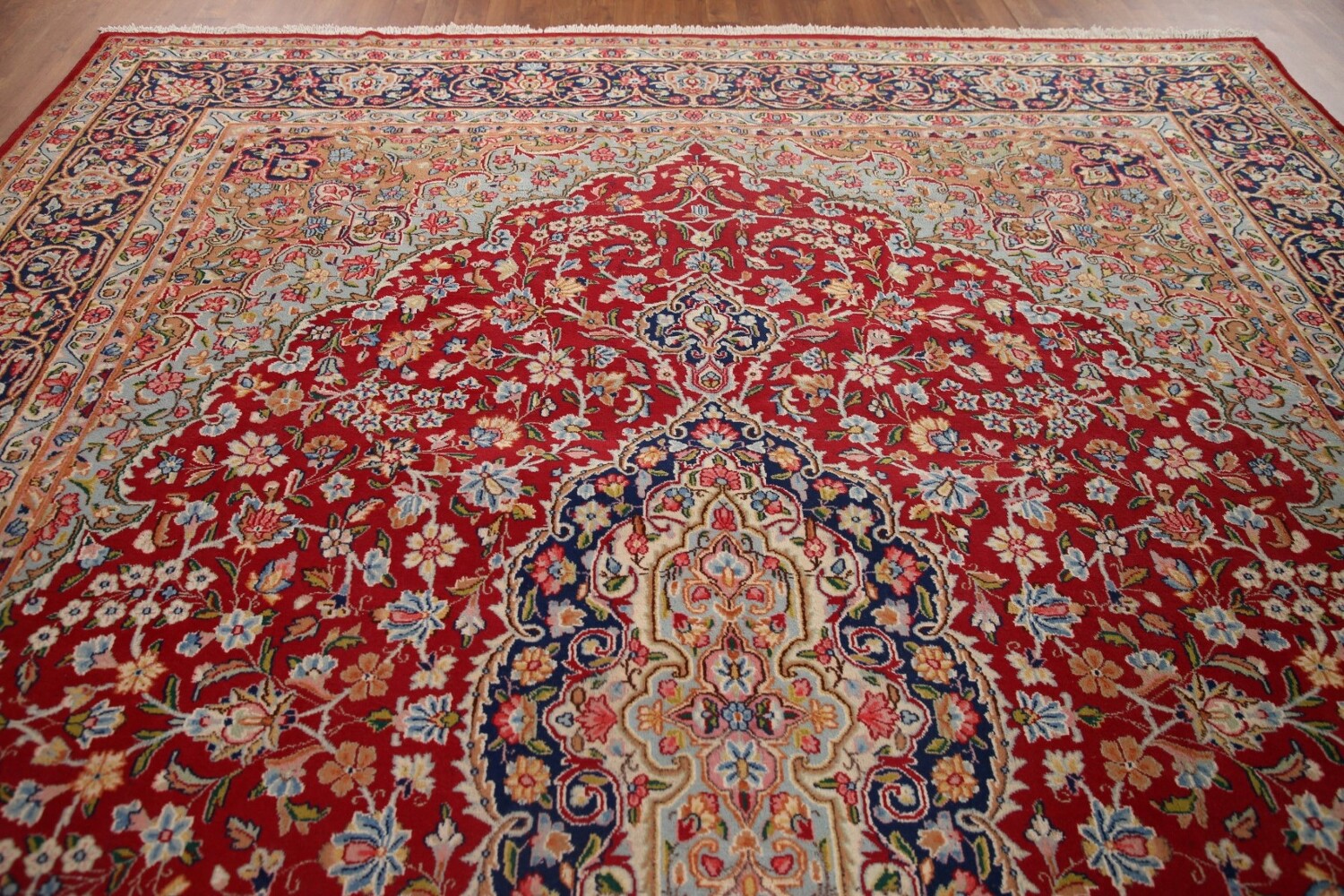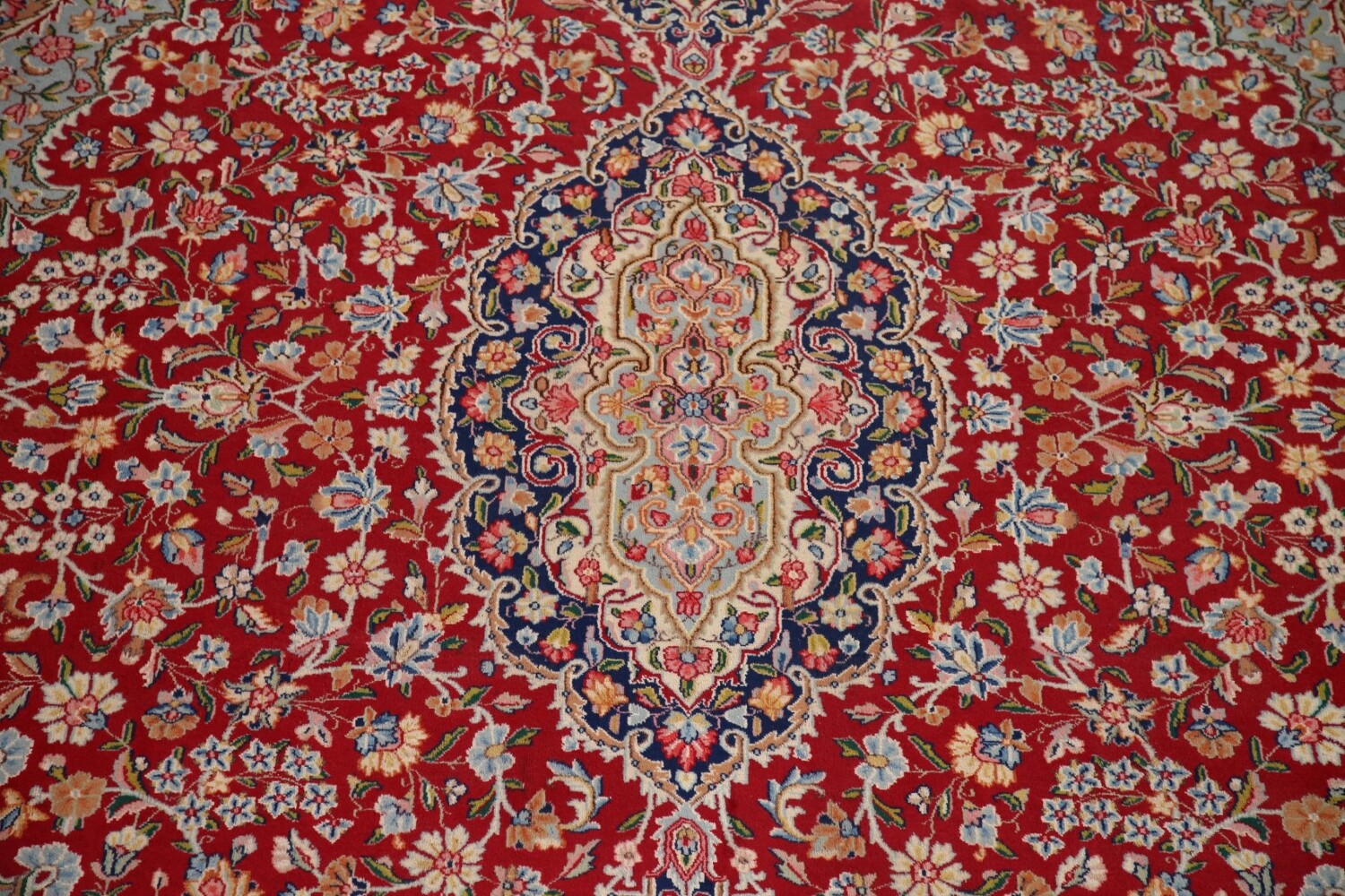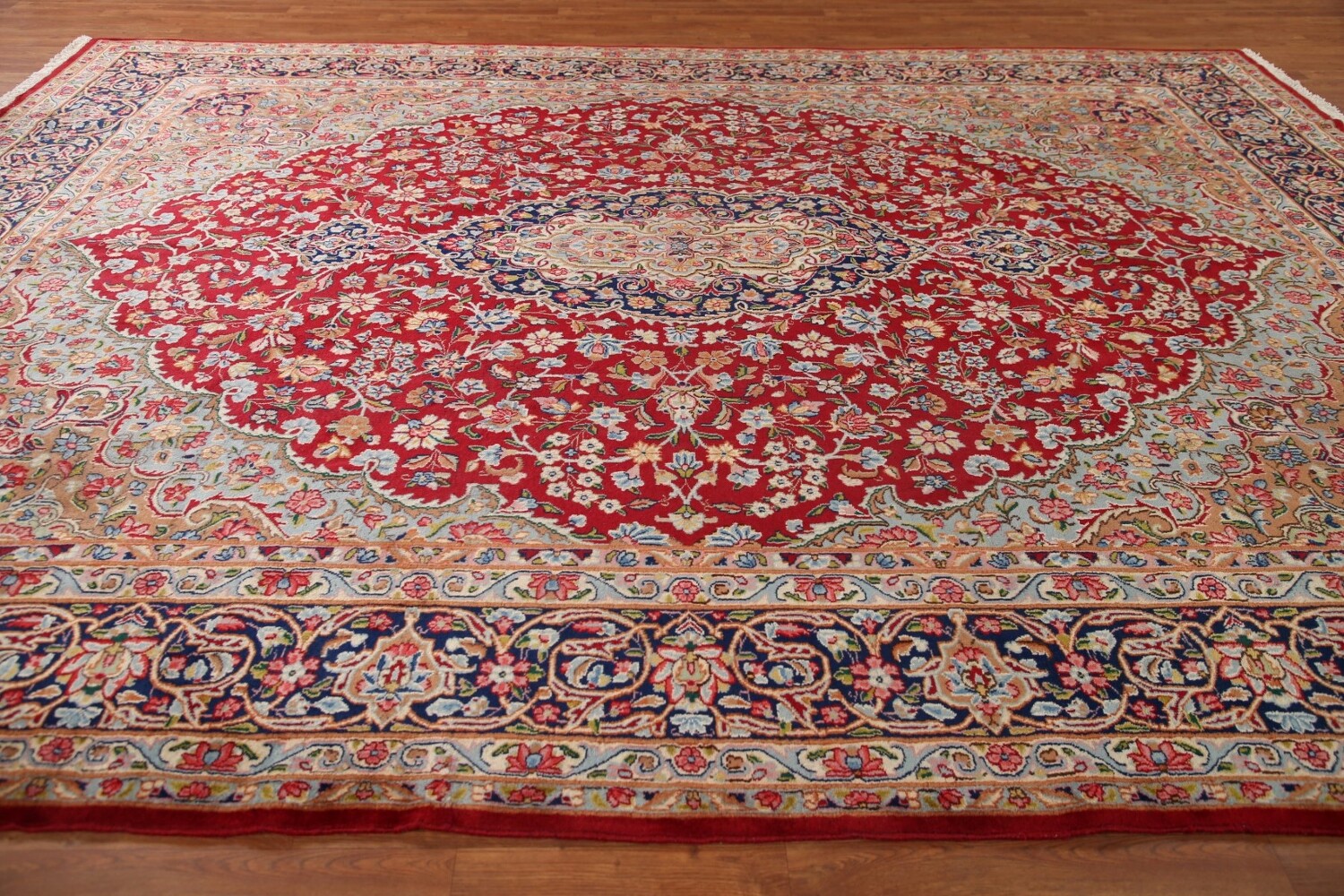 A Beautiful Genuine Persia ( Persia ) Kerman rug is Hand Knotted by skillful weavers in Persia ( Persia ) with 100% Wool Material. This rug is in Very Good condition. dimensions are 13' 0'' X 9' 9'' in foot and 396 X 297 in centimeter. the primary color is Red.