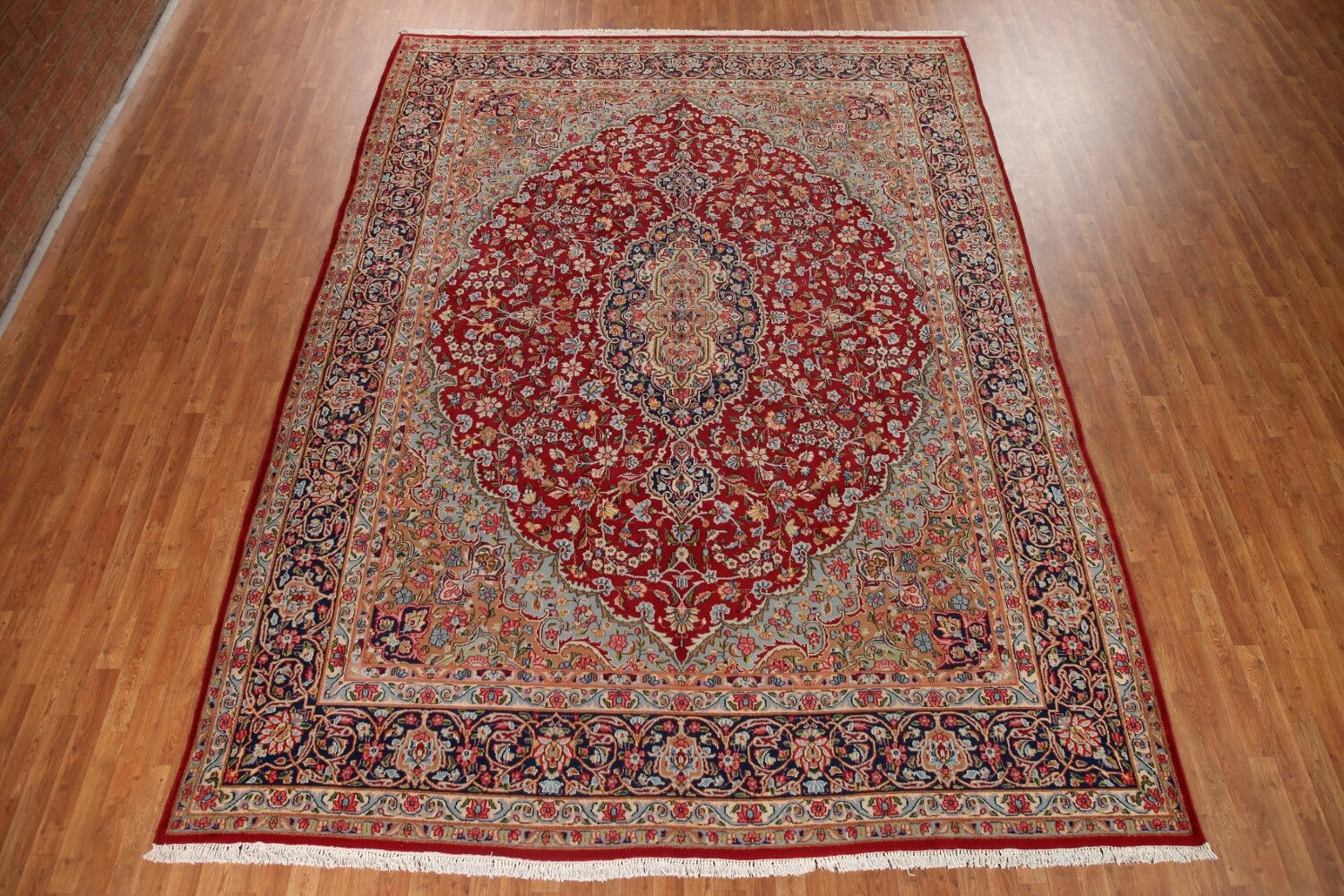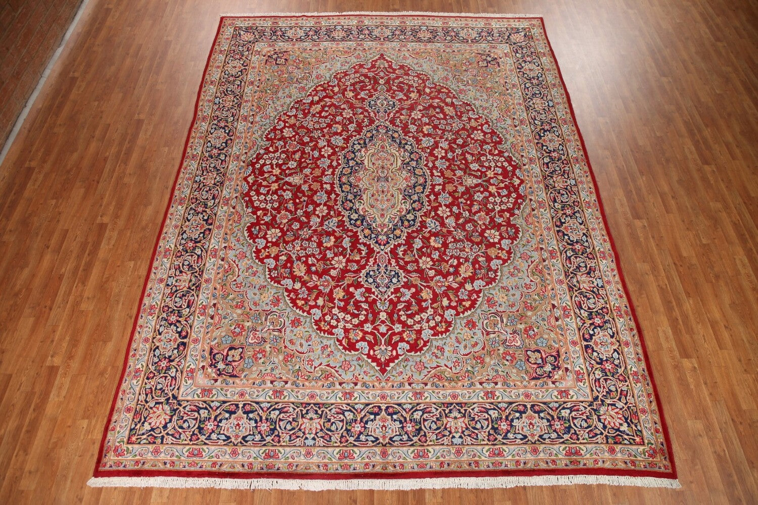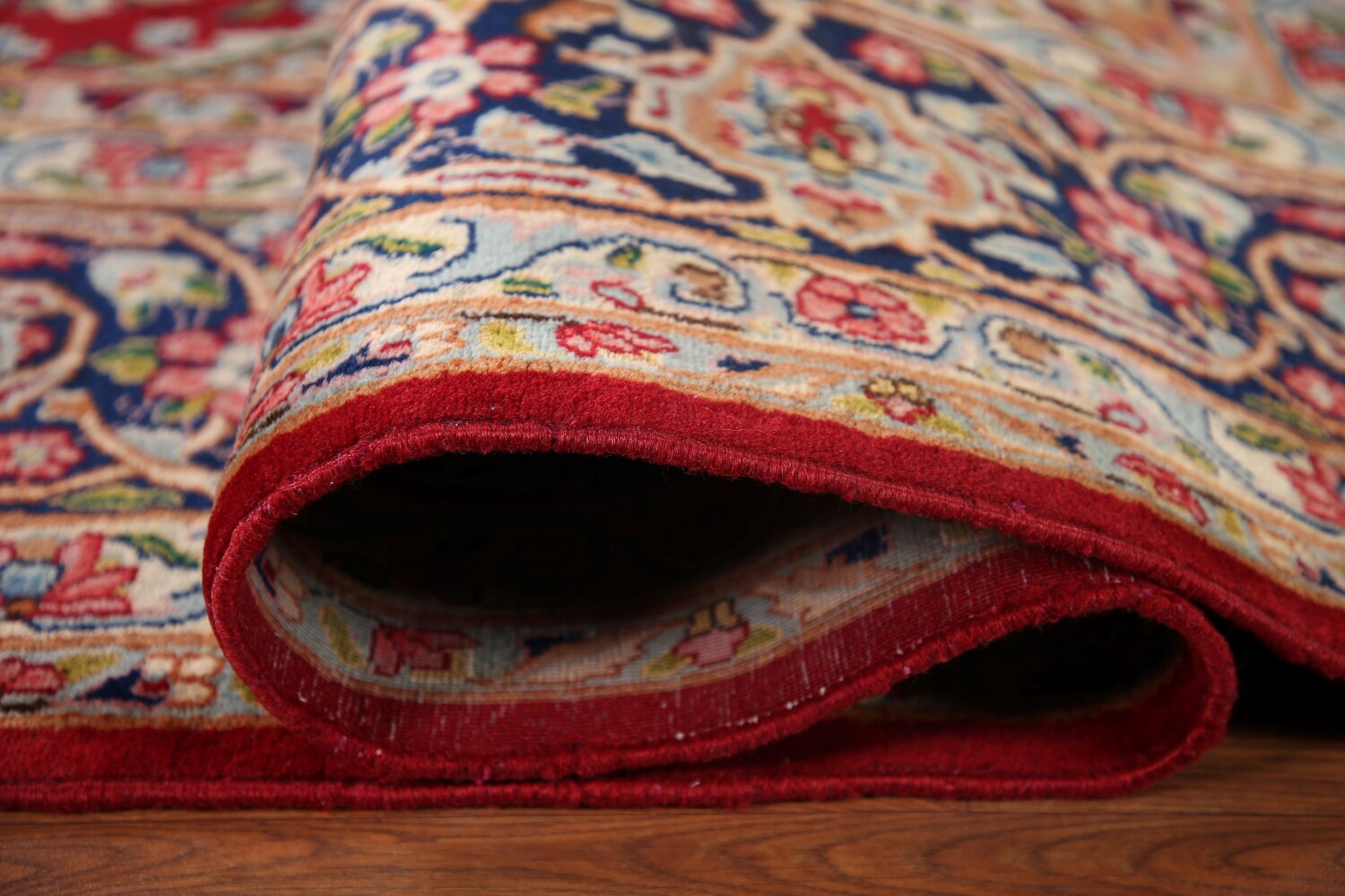 A Beautiful Genuine Persia ( Persia ) Kerman rug is Hand Knotted by skillful weavers in Persia ( Persia ) with 100% Wool Material. This rug is in Very Good condition. dimensions are 13' 0'' X 9' 9'' in foot and 396 X 297 in centimeter. the primary color is Red.