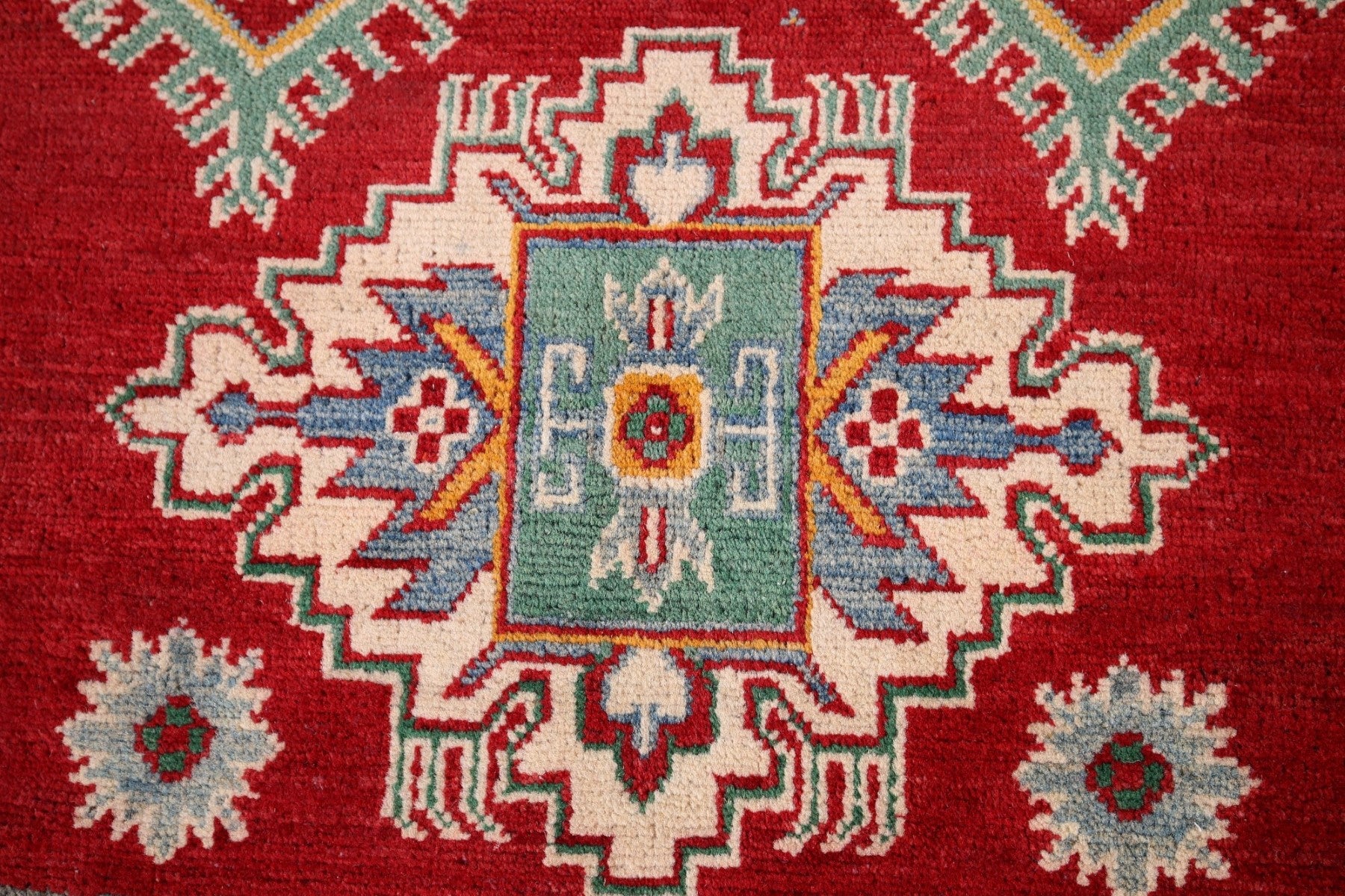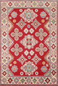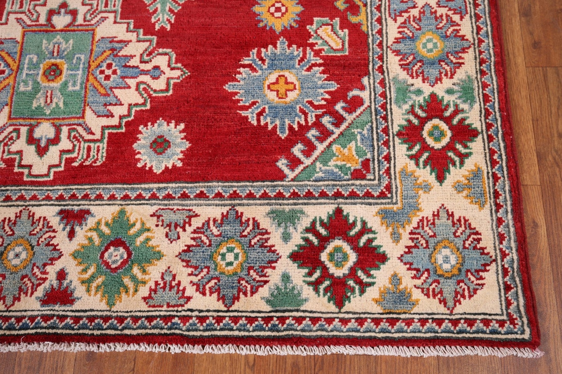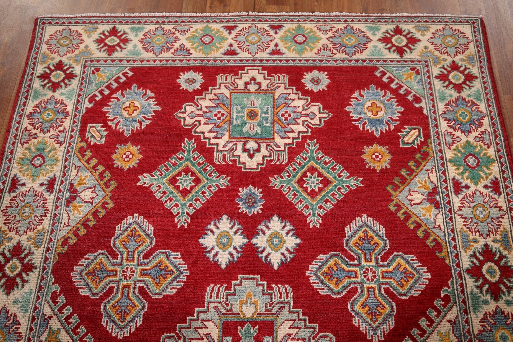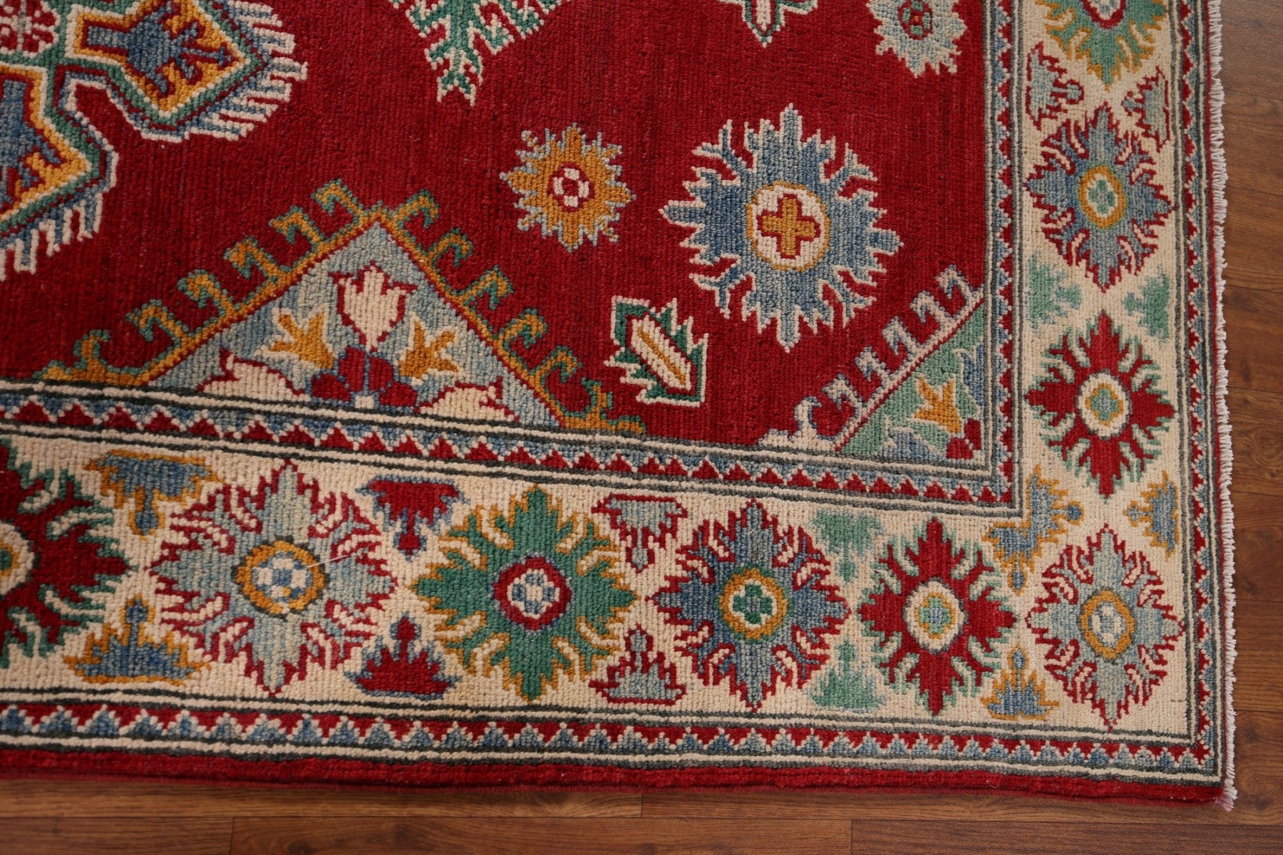 Red Wool Geometric Kazak Oriental Rug 5x7