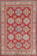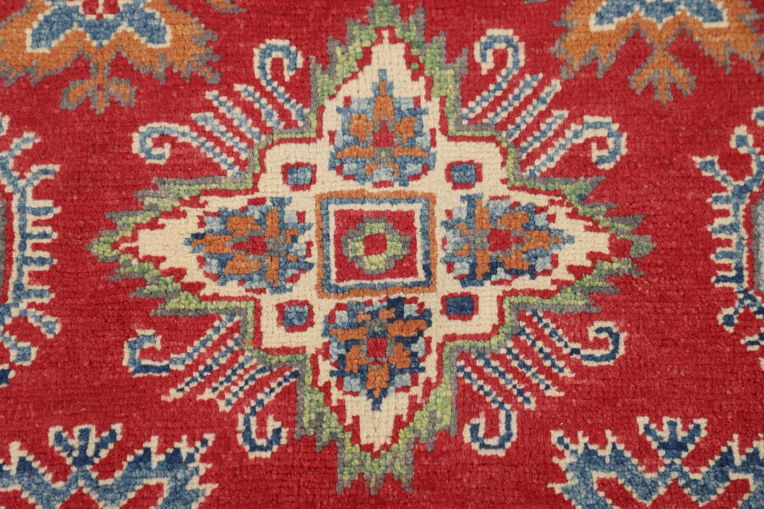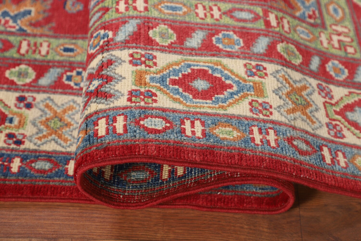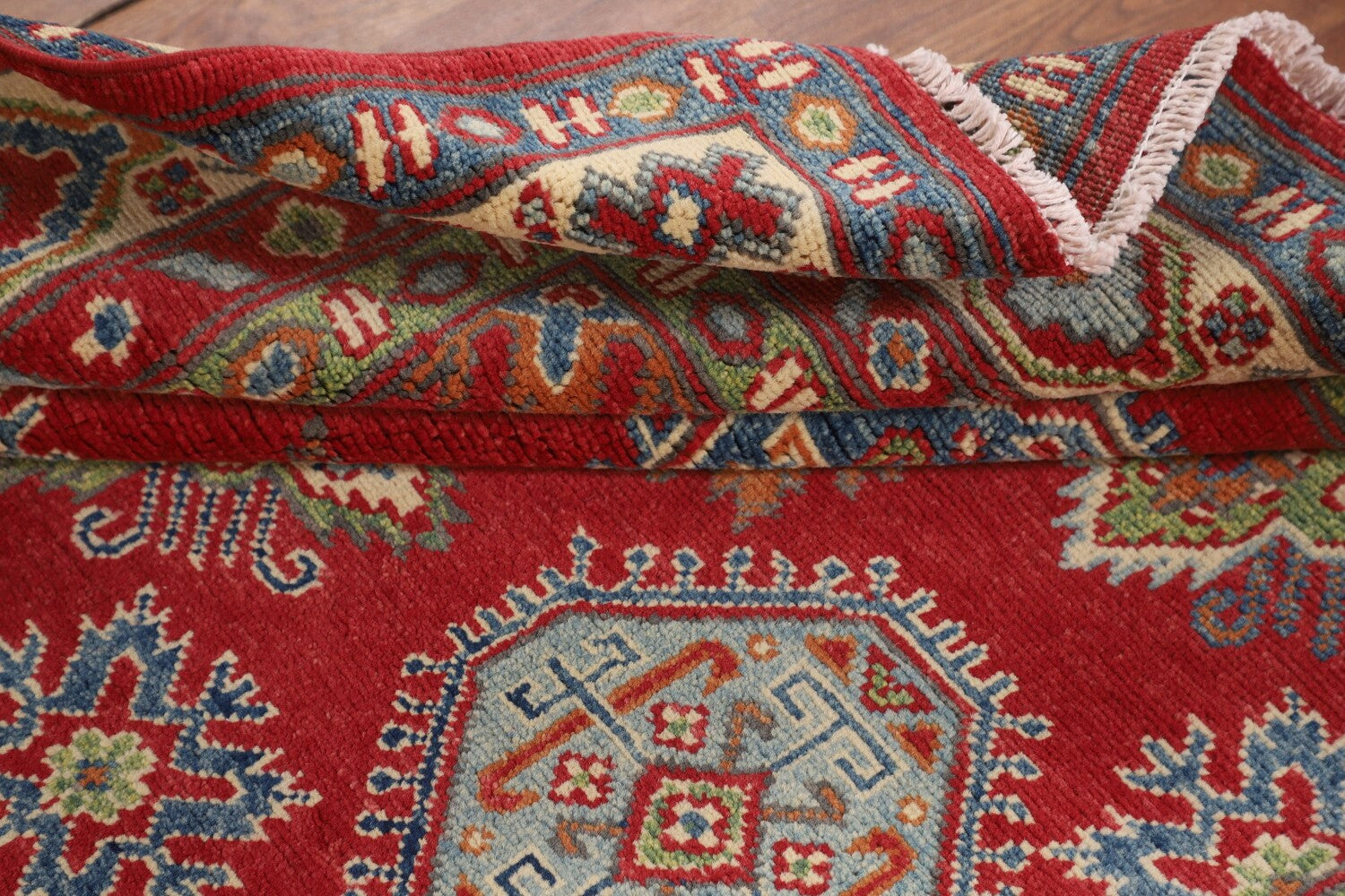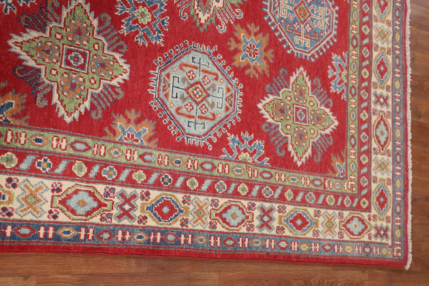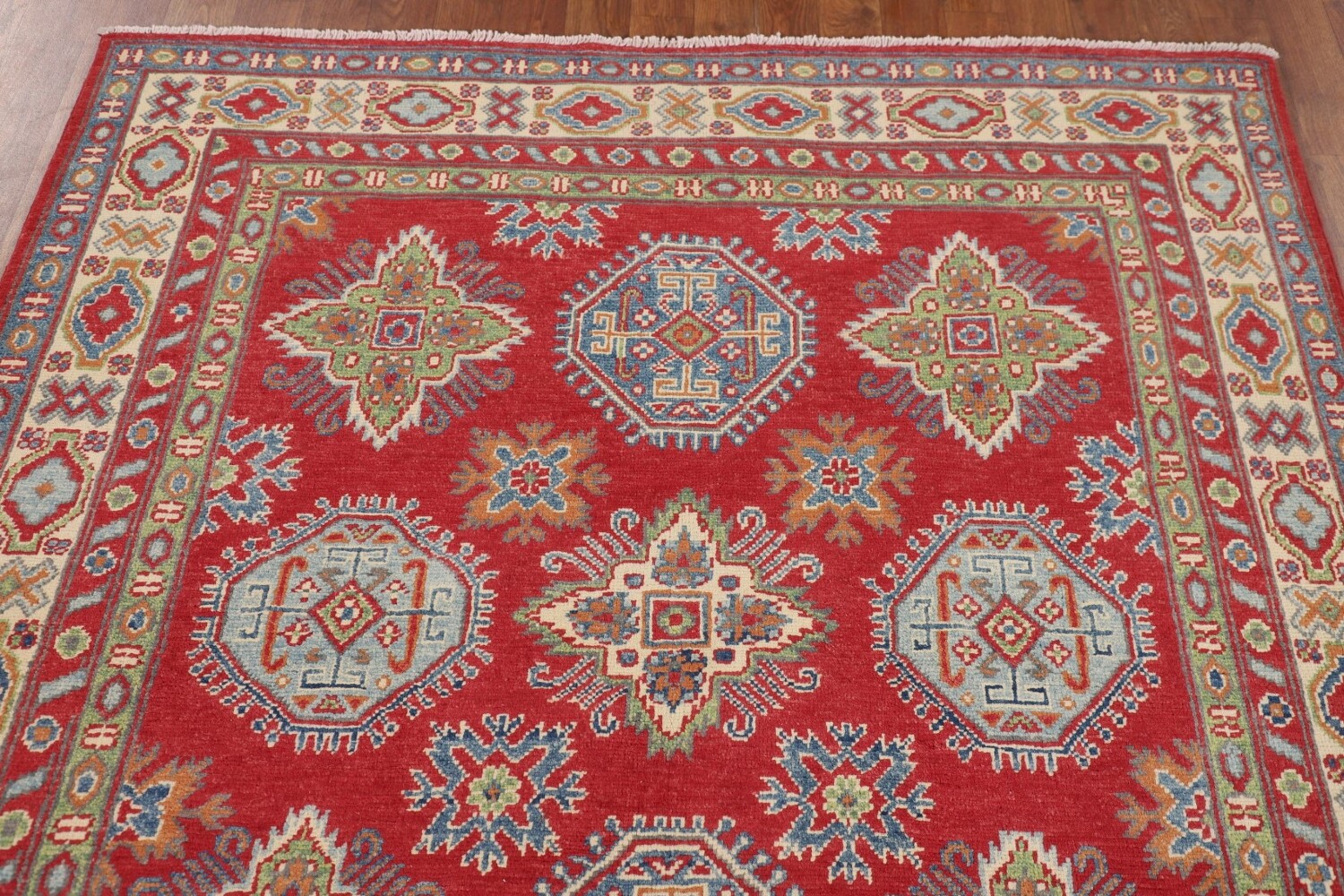 Red Wool Geometric Kazak Oriental Rug 5x7