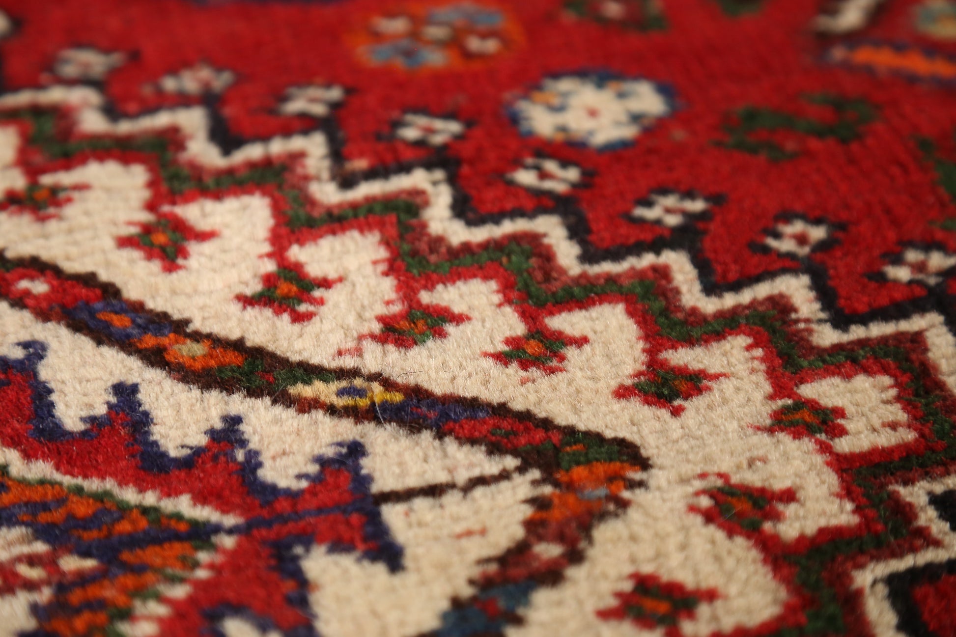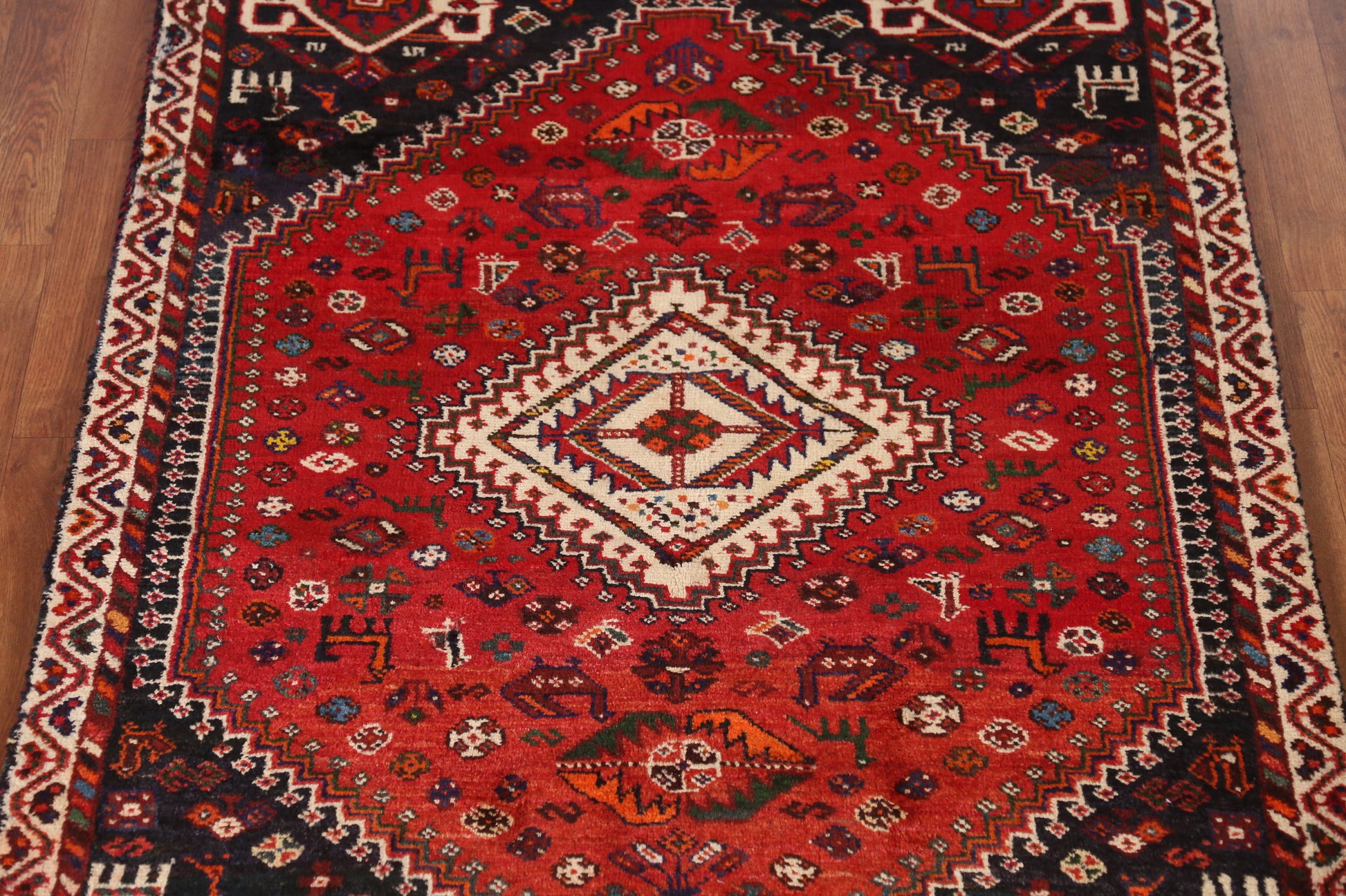 Red Wool Geometric Shiraz Persian Rug 4x5
