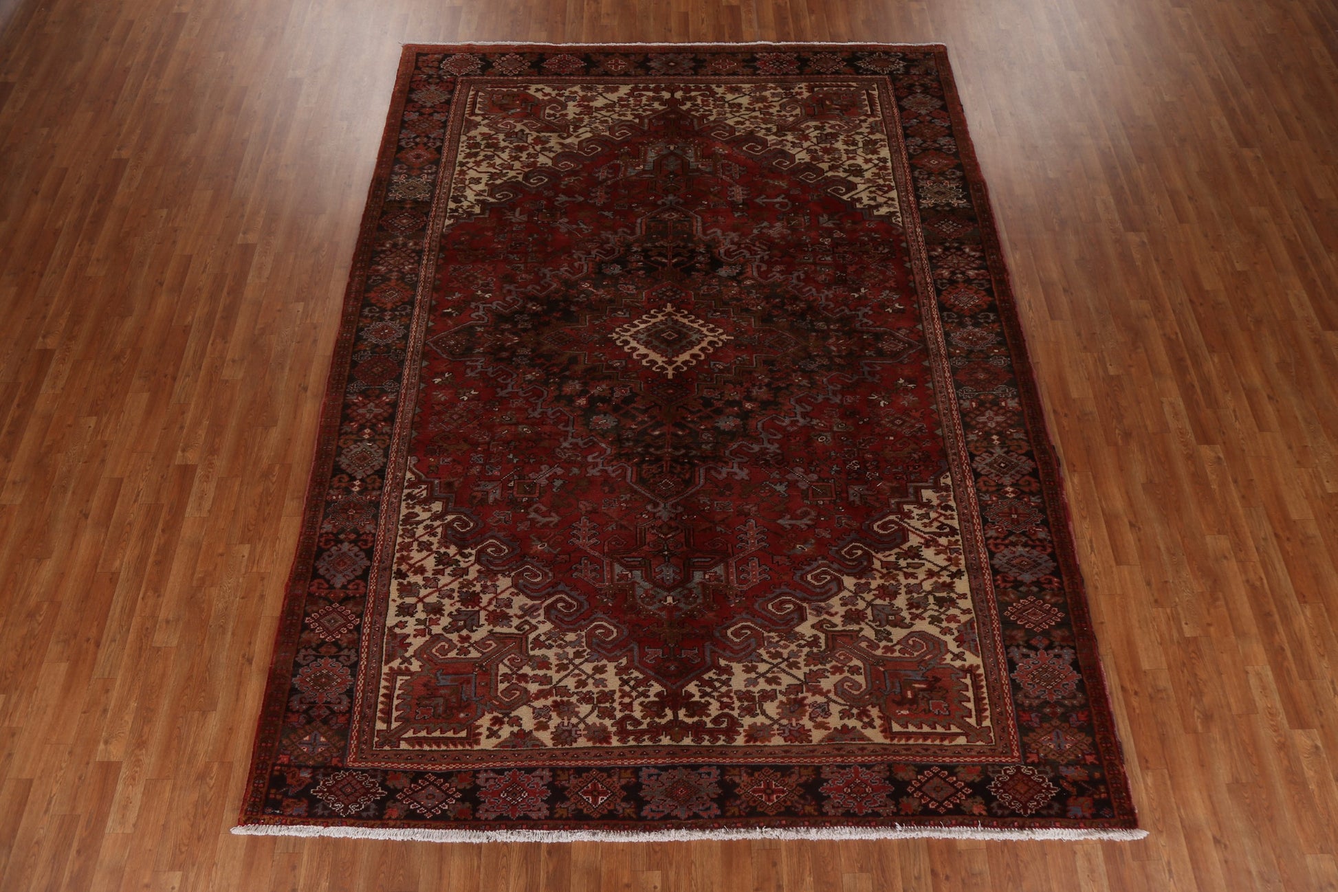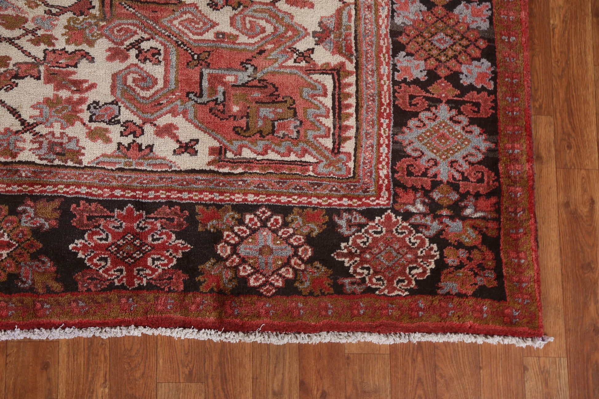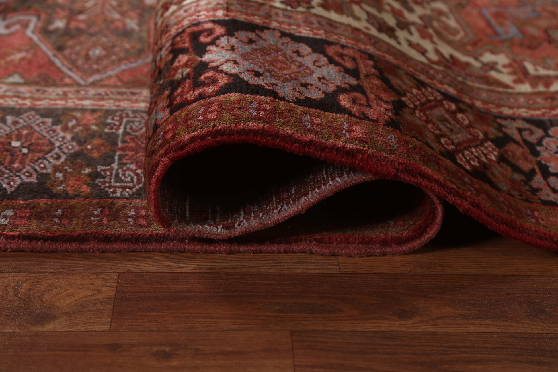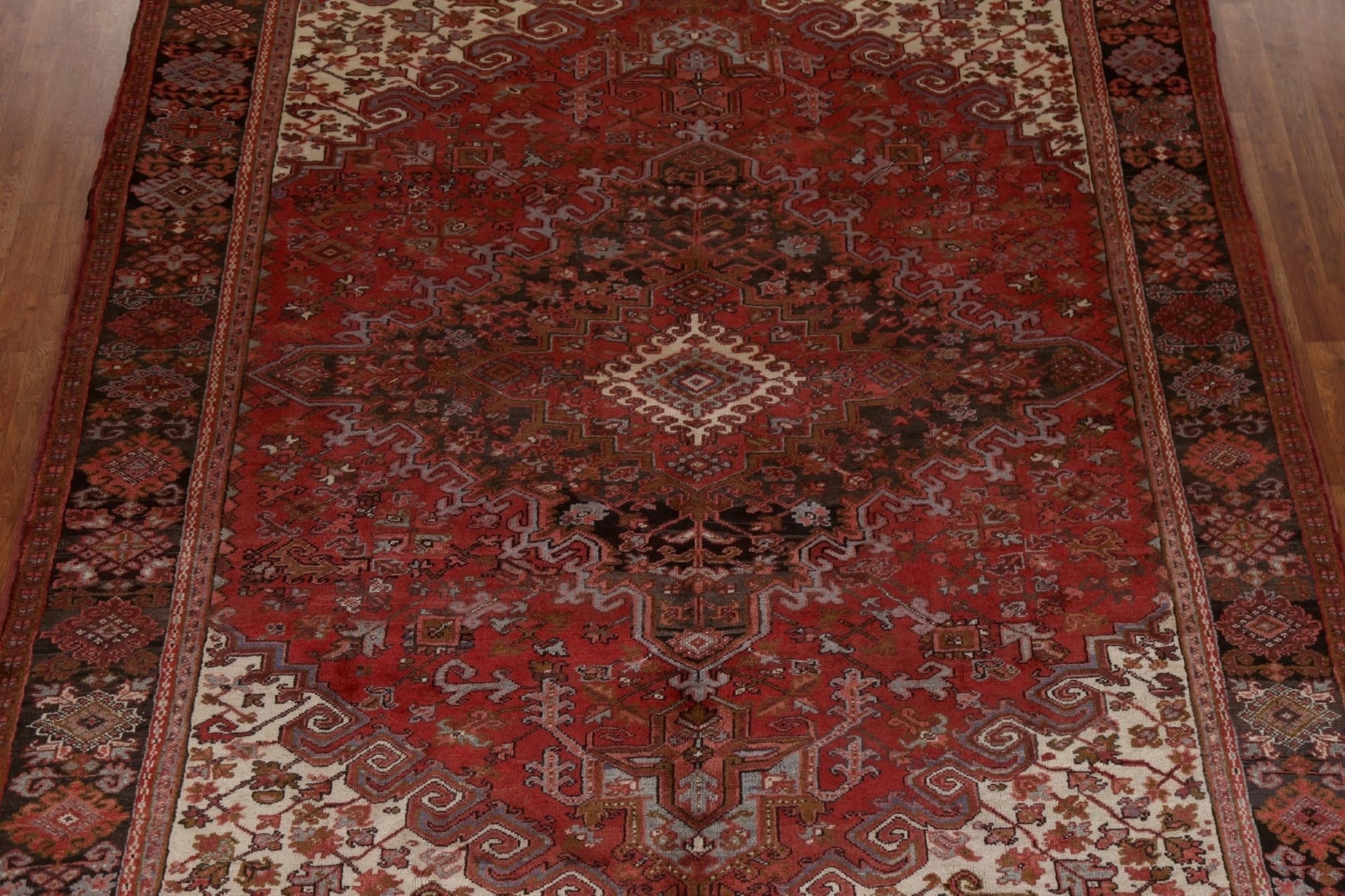 A Beautiful Genuine Persia ( Persia ) Heriz rug is Hand Knotted by skillful weavers in Persia ( Persia ) with 100% Wool Material. This rug is in Very Good (Abrash) condition. dimensions are 11' 1'' X 8' 5'' in foot and 338 X 257 in centimeter. the primary color is Red.