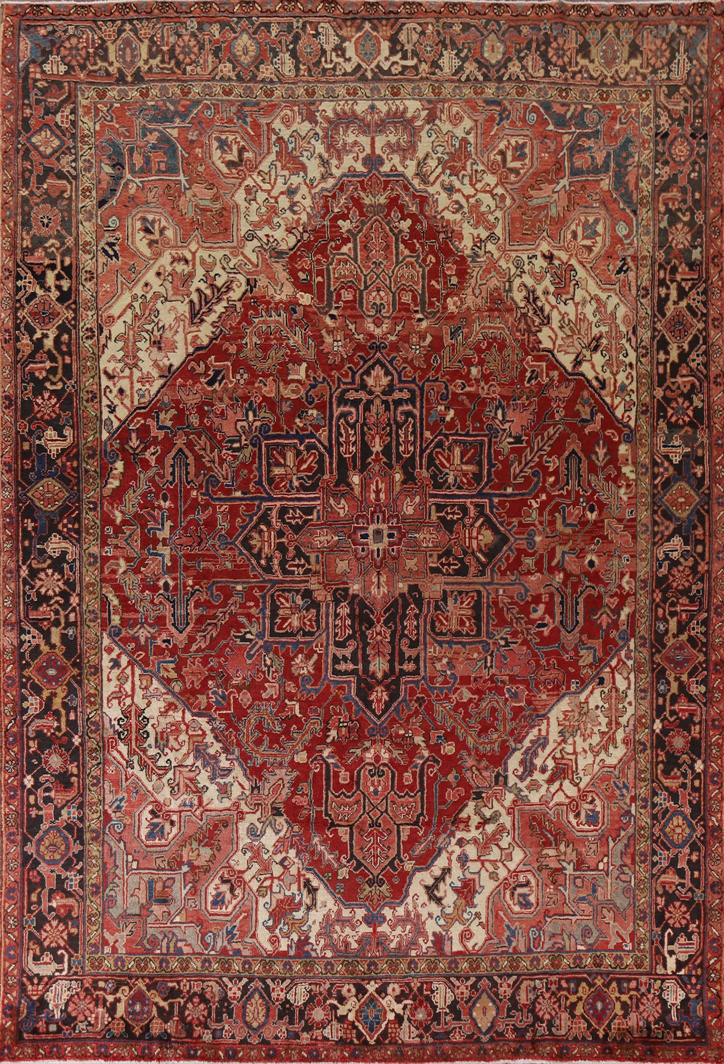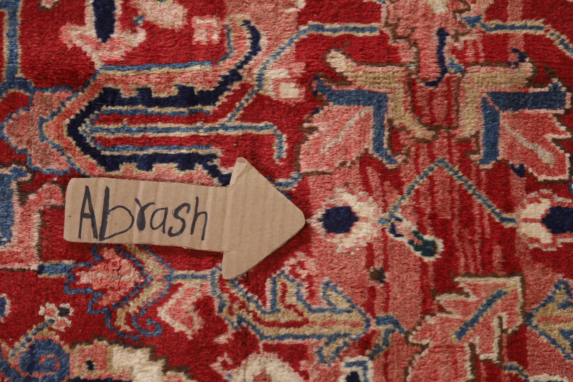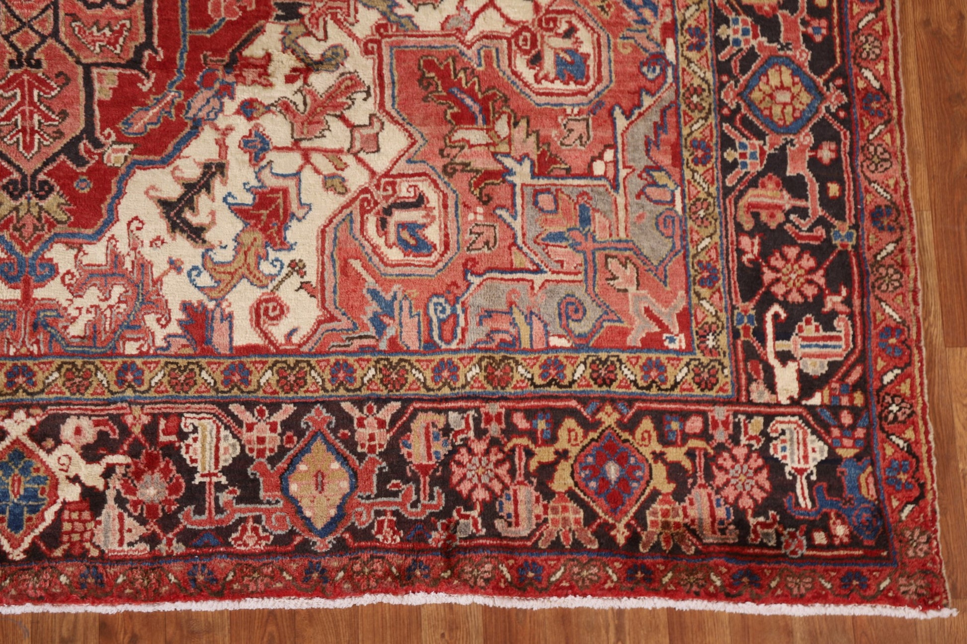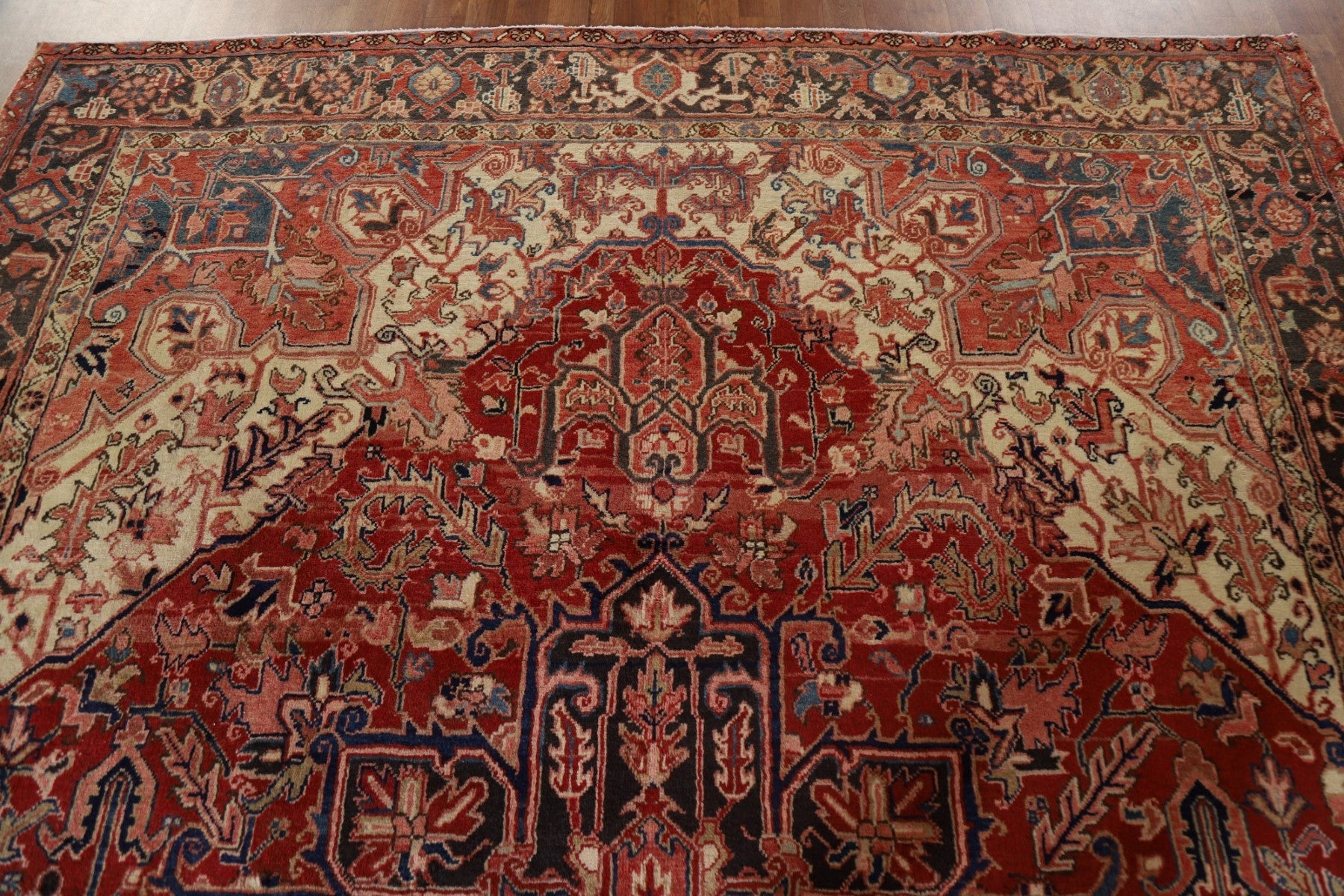 A Beautiful Genuine Persia ( Persia ) Heriz rug is Hand Knotted by skillful weavers in Persia ( Persia ) with 100% Wool Material. This rug is in Very Good (Abrash) condition. dimensions are 10' 11'' X 8' 5'' in foot and 333 X 257 in centimeter. the primary color is Red.