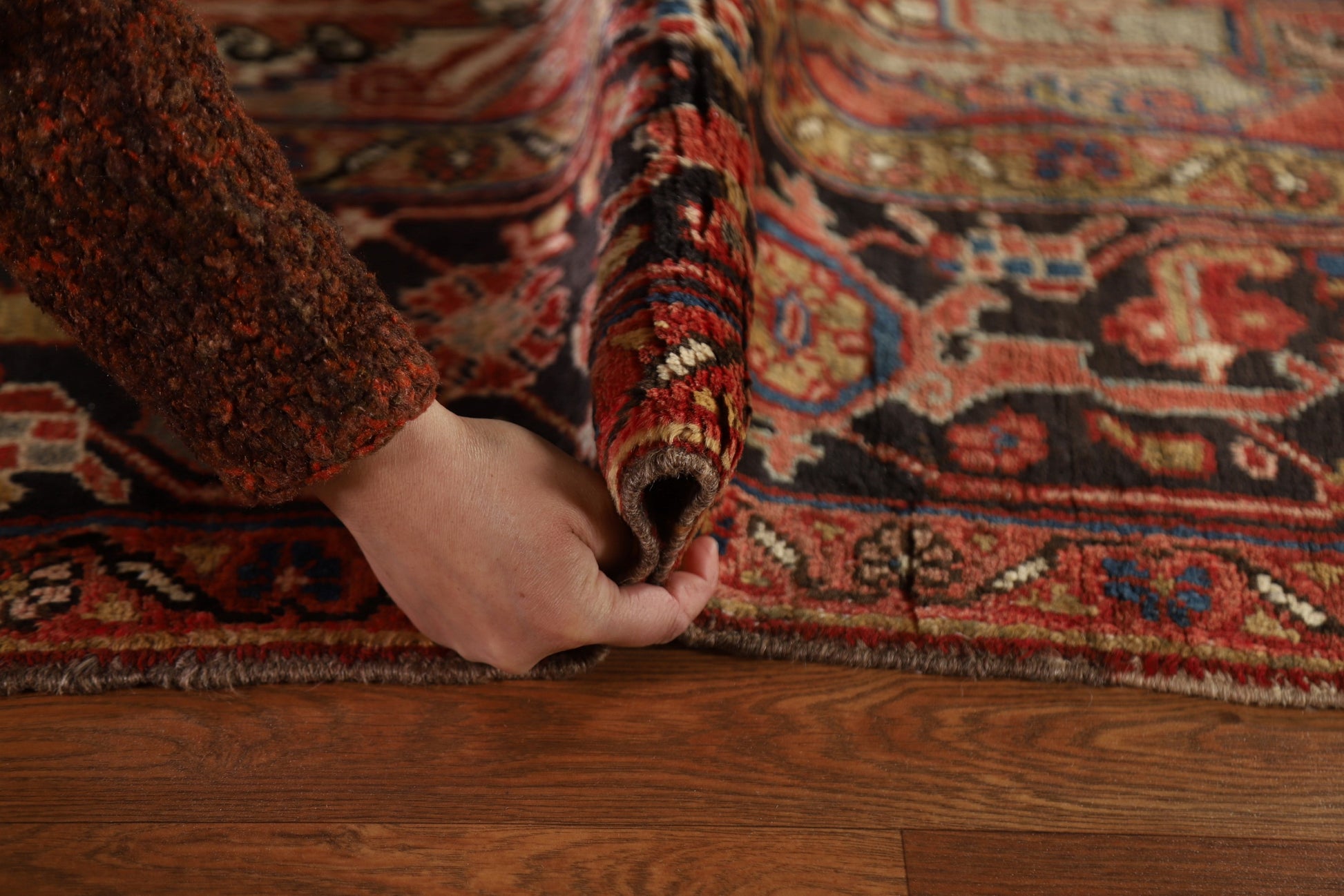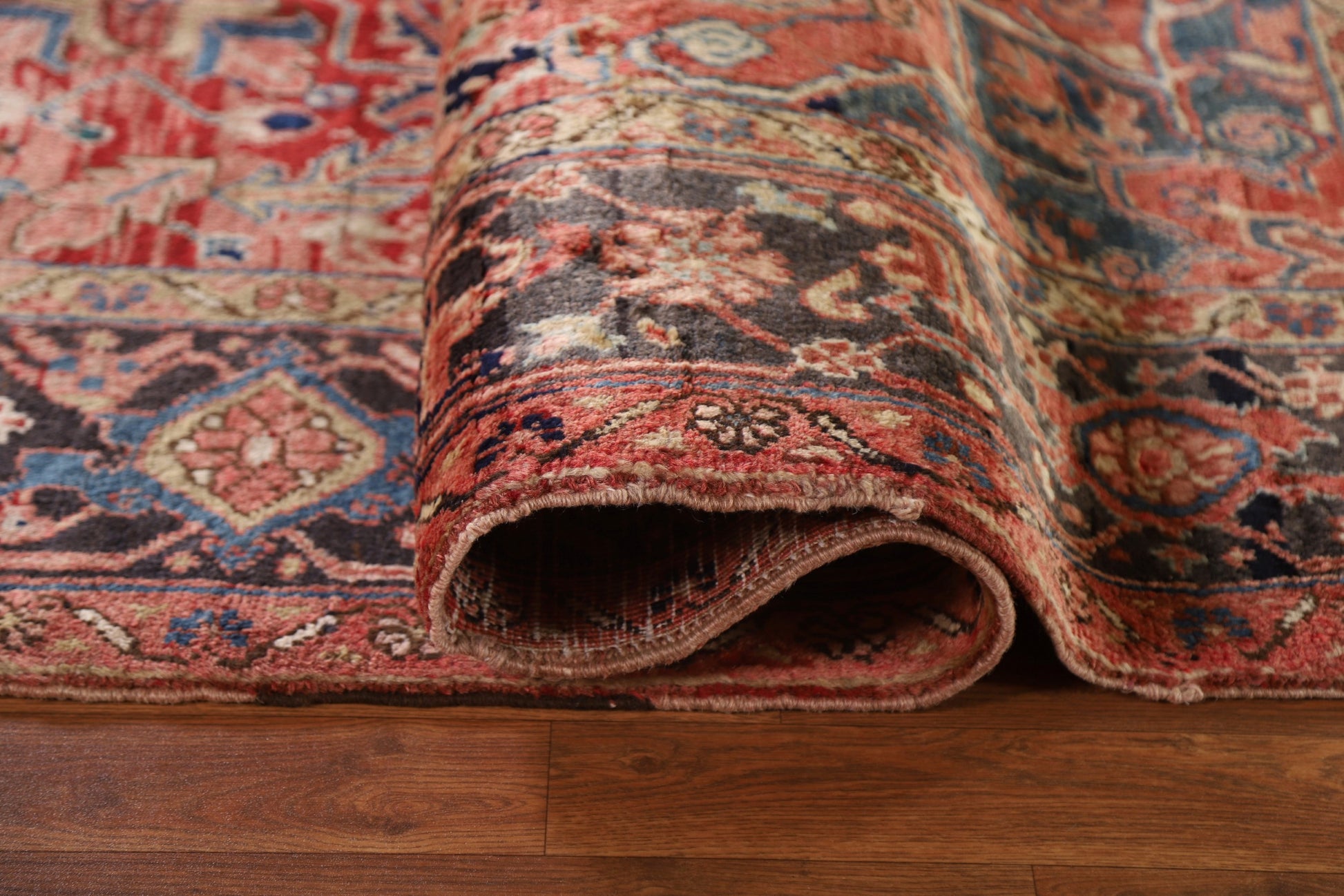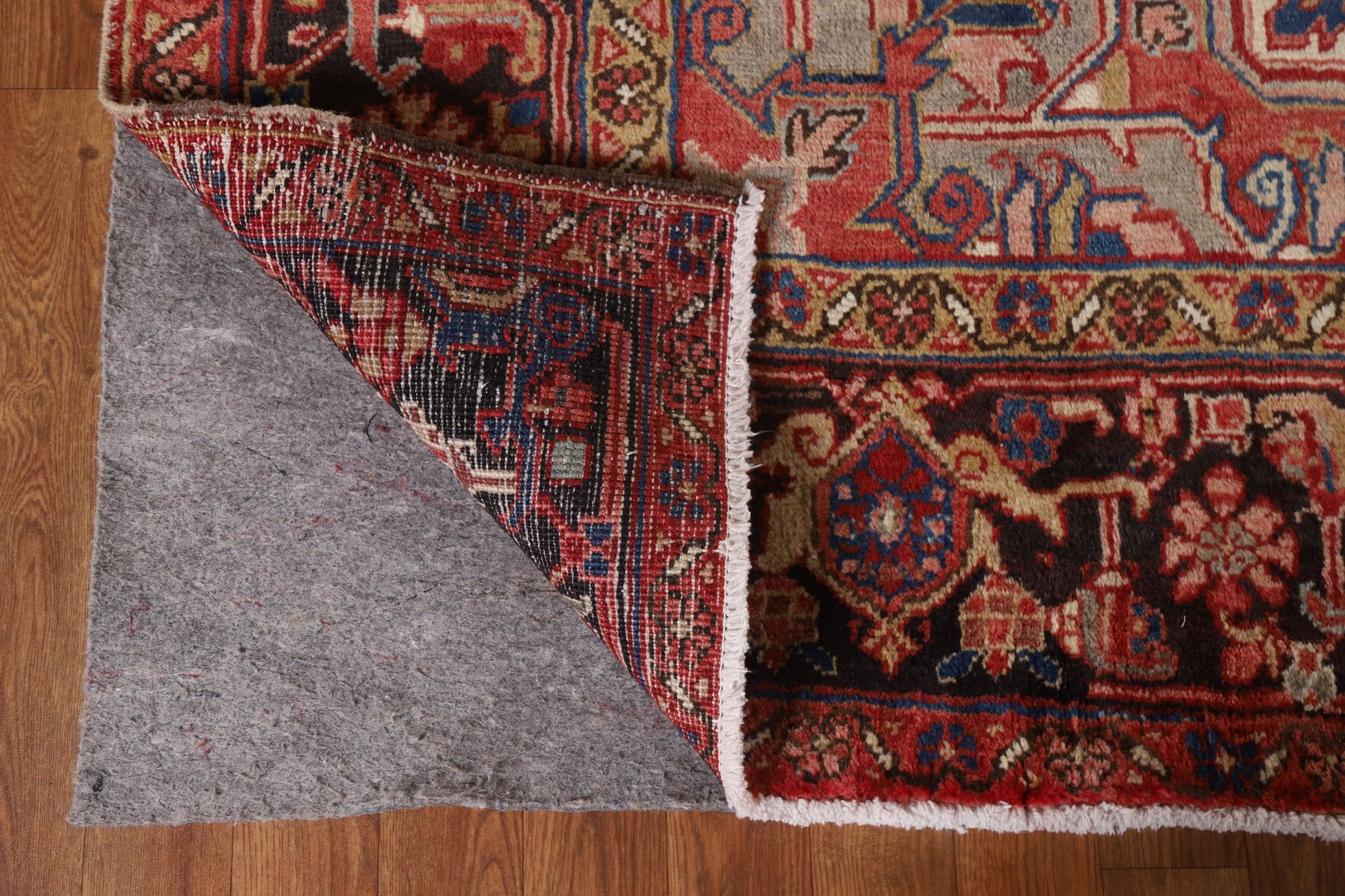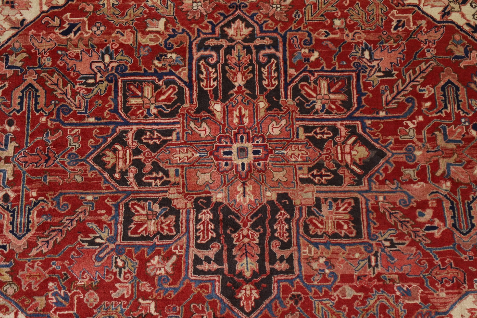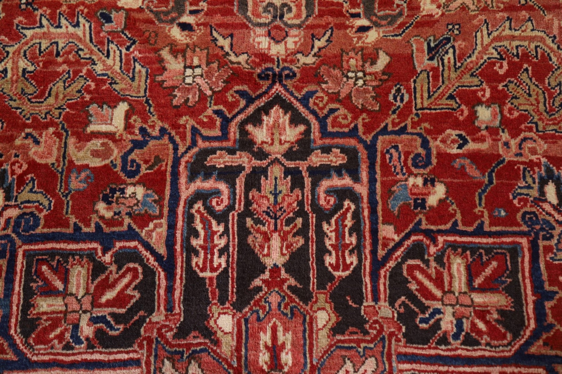 A Beautiful Genuine Persia ( Persia ) Heriz rug is Hand Knotted by skillful weavers in Persia ( Persia ) with 100% Wool Material. This rug is in Very Good (Abrash) condition. dimensions are 10' 11'' X 8' 5'' in foot and 333 X 257 in centimeter. the primary color is Red.