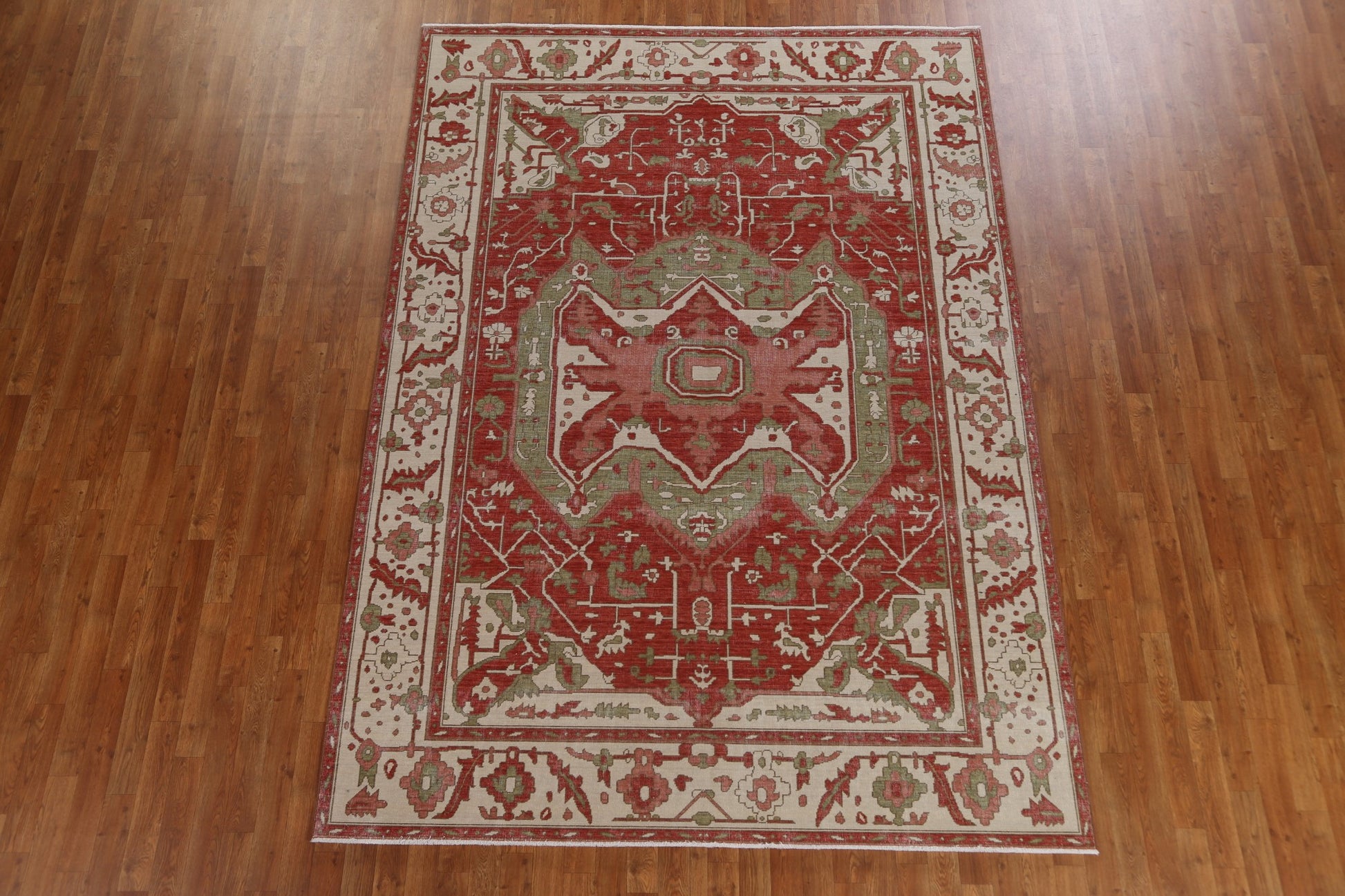 Red Wool Heriz Serapi Oriental Area Rug 7x10