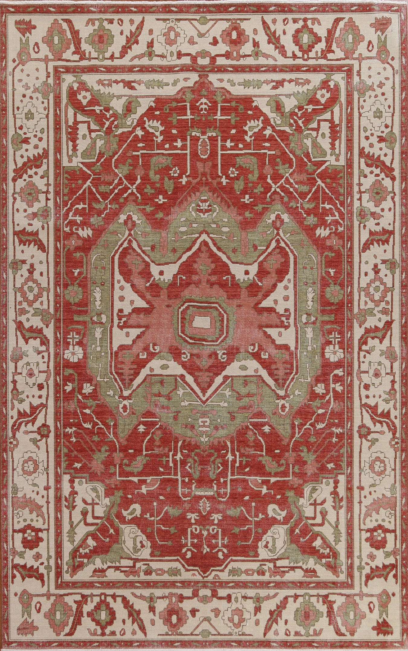 A Beautiful Genuine Turkey Heriz (serapi) rug is Hand Knotted by skillful weavers in Turkey with 100% Wool Material. This rug is in New, First Quality condition. dimensions are 9' 9'' X 7' 0'' in foot and 297 X 213 in centimeter. the primary color is Red.