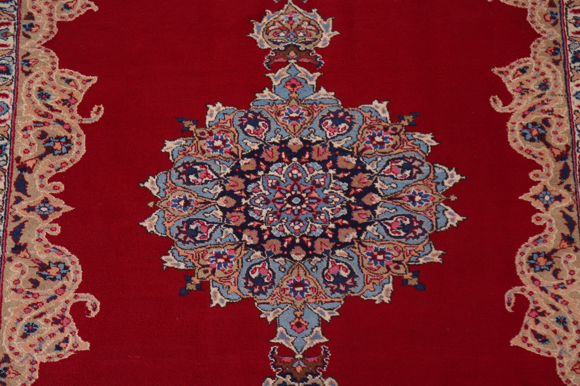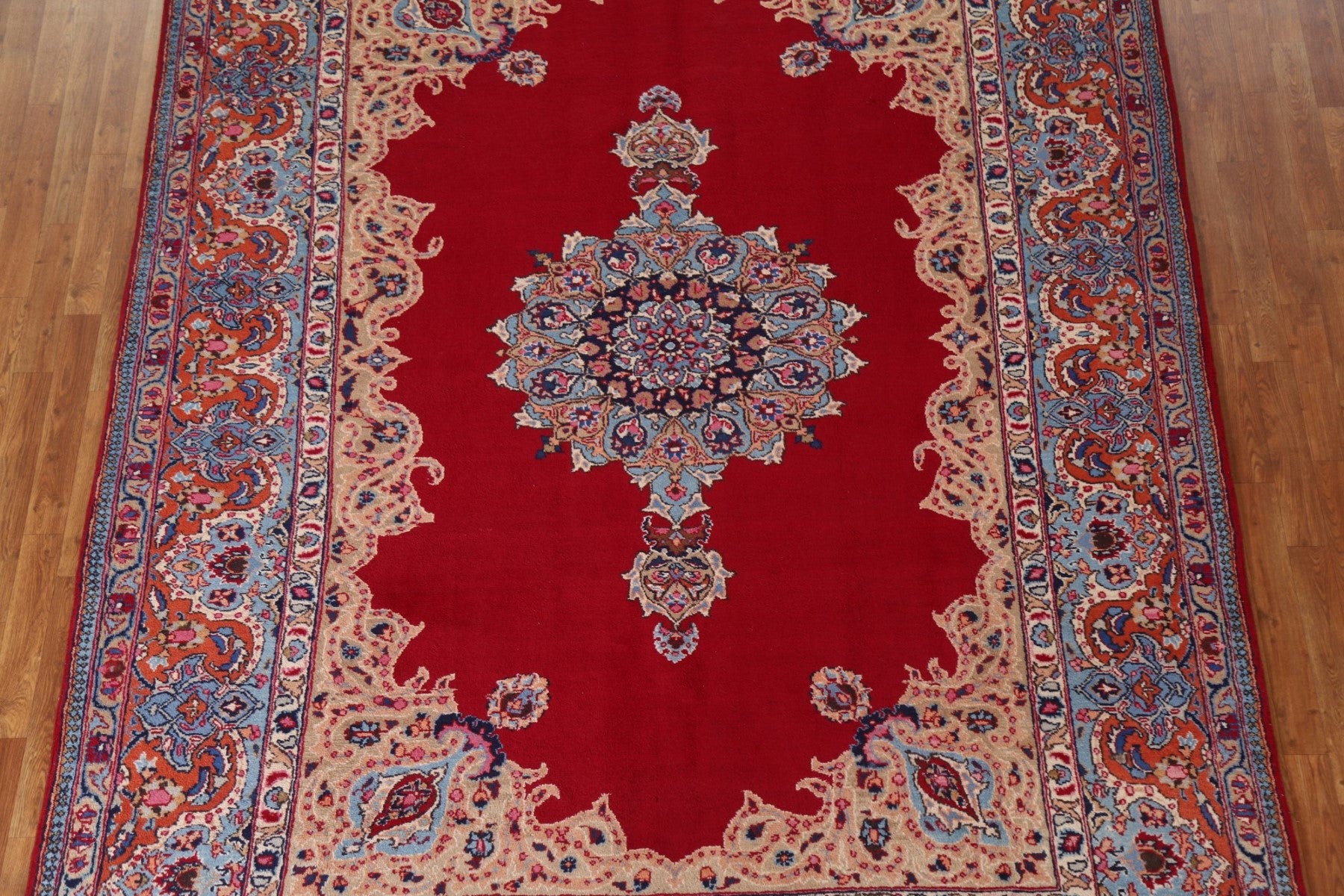 A Beautiful Genuine Persia ( Persia ) Kashmar rug is Hand Knotted by skillful weavers in Persia ( Persia ) with 100% Wool Material. This rug is in Very Good condition. dimensions are 11' 2'' X 7' 11'' in foot and 340 X 241 in centimeter. the primary color is Red.