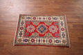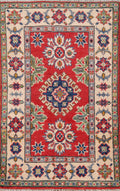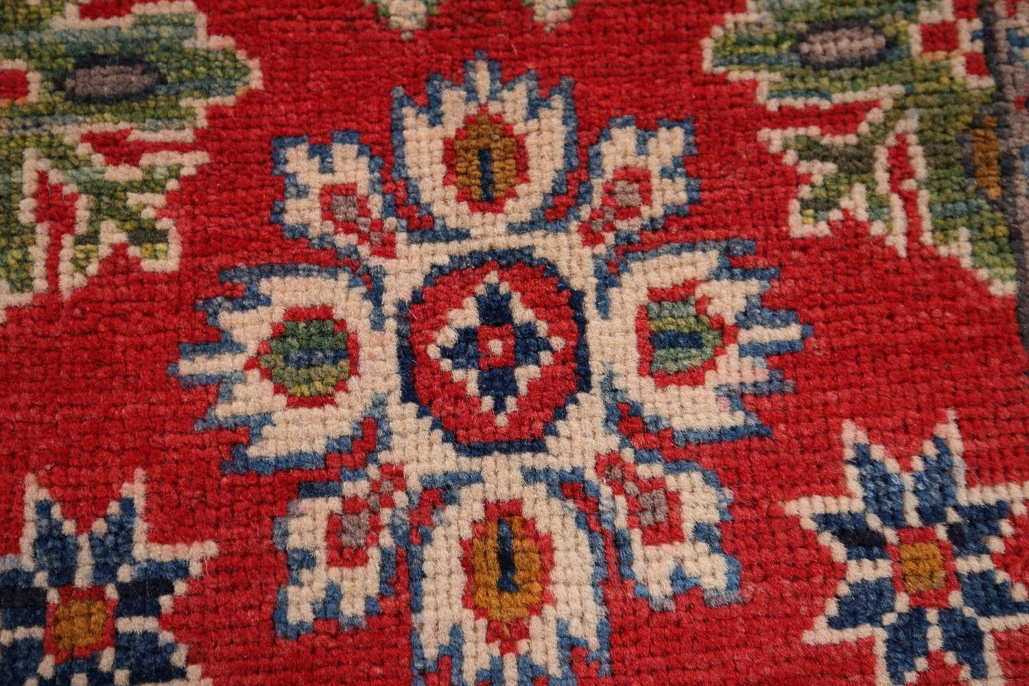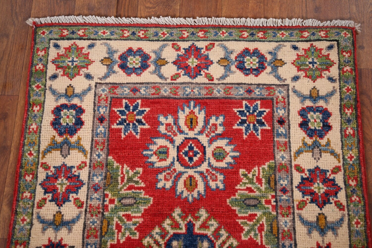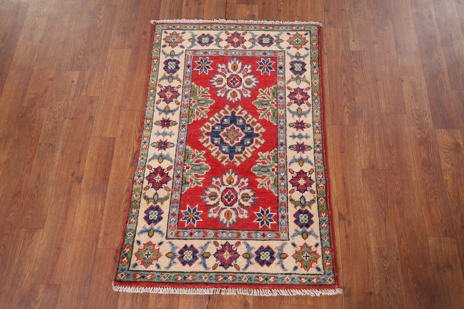 A Beautiful Genuine Pakistan Kazak rug is Hand Knotted by skillful weavers in Pakistan with 100% Wool Material. This rug is in New, First Quality condition. dimensions are 3' 0'' X 2' 0'' in foot and 91 X 61 in centimeter. the primary color is Red.