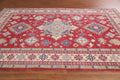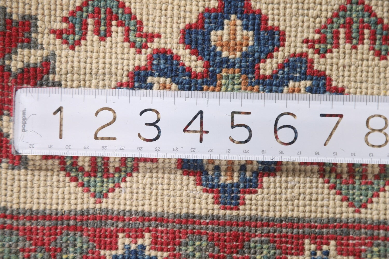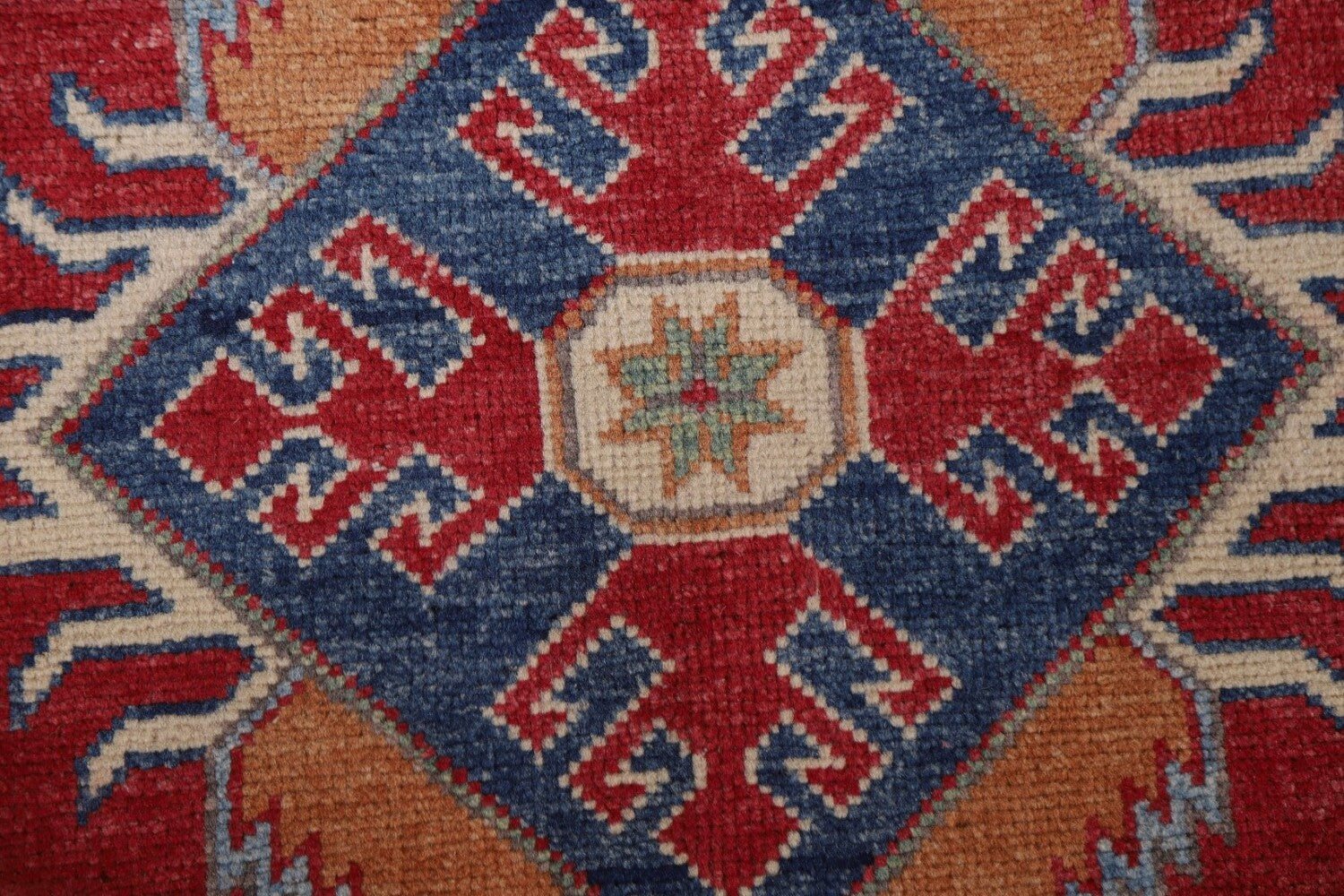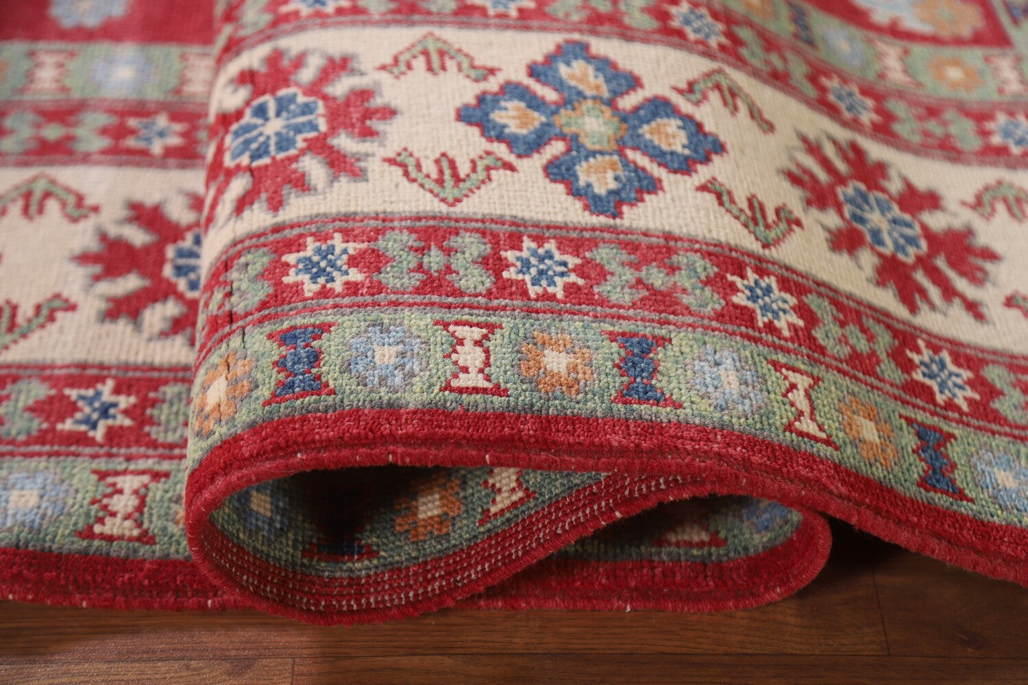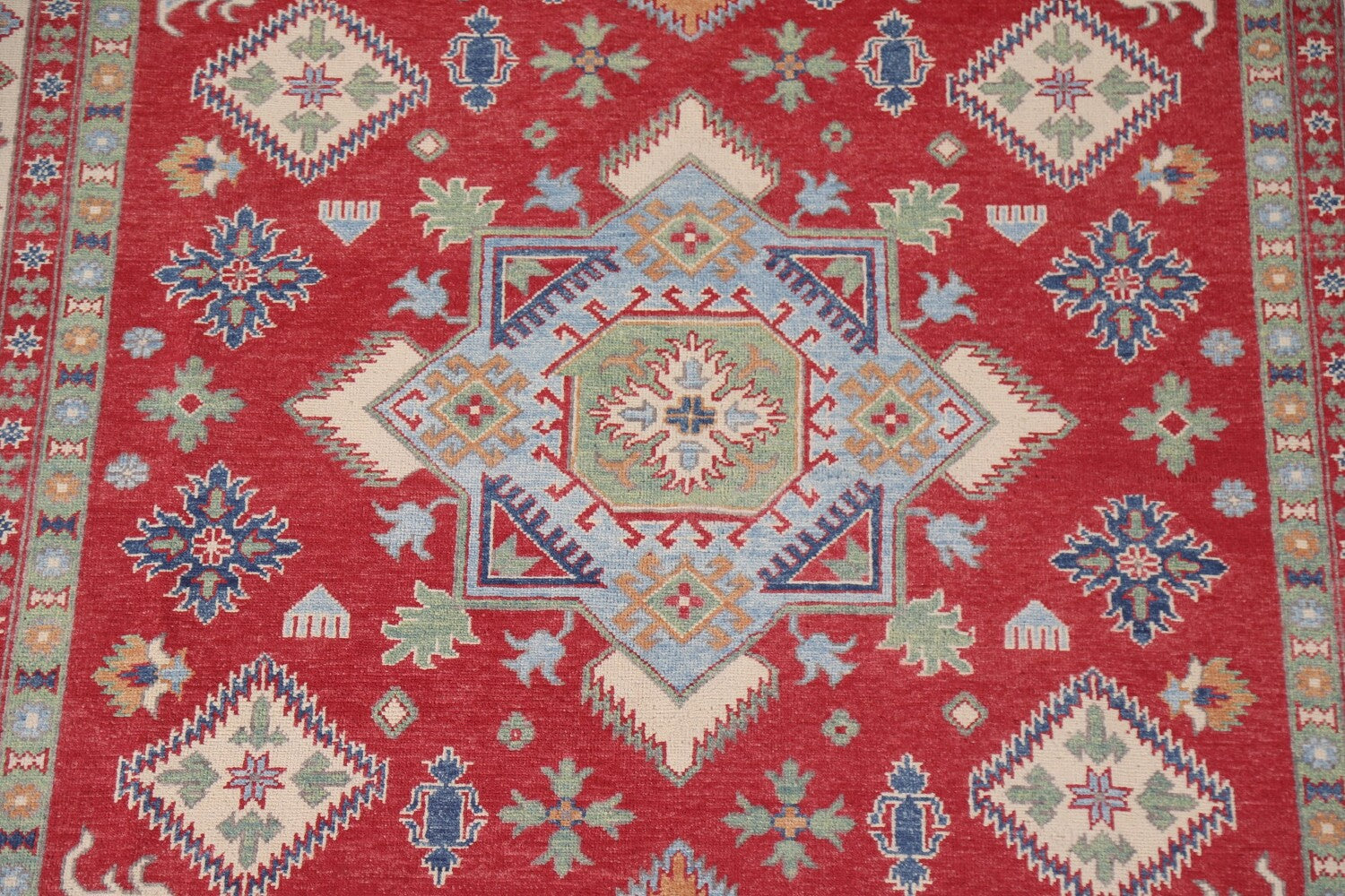 A Beautiful Genuine Pakistan Kazak rug is Hand Knotted by skillful weavers in Pakistan with 100% Wool Material. This rug is in New, First Quality condition. dimensions are 9' 9'' X 6' 8'' in foot and 297 X 203 in centimeter. the primary color is Red.