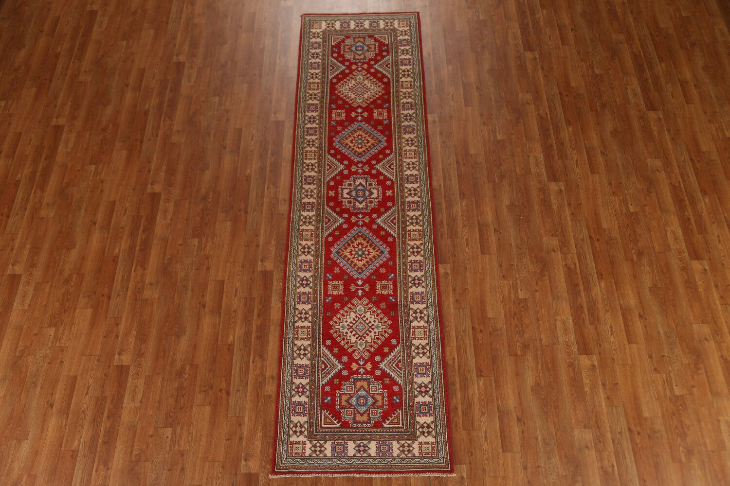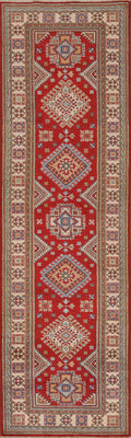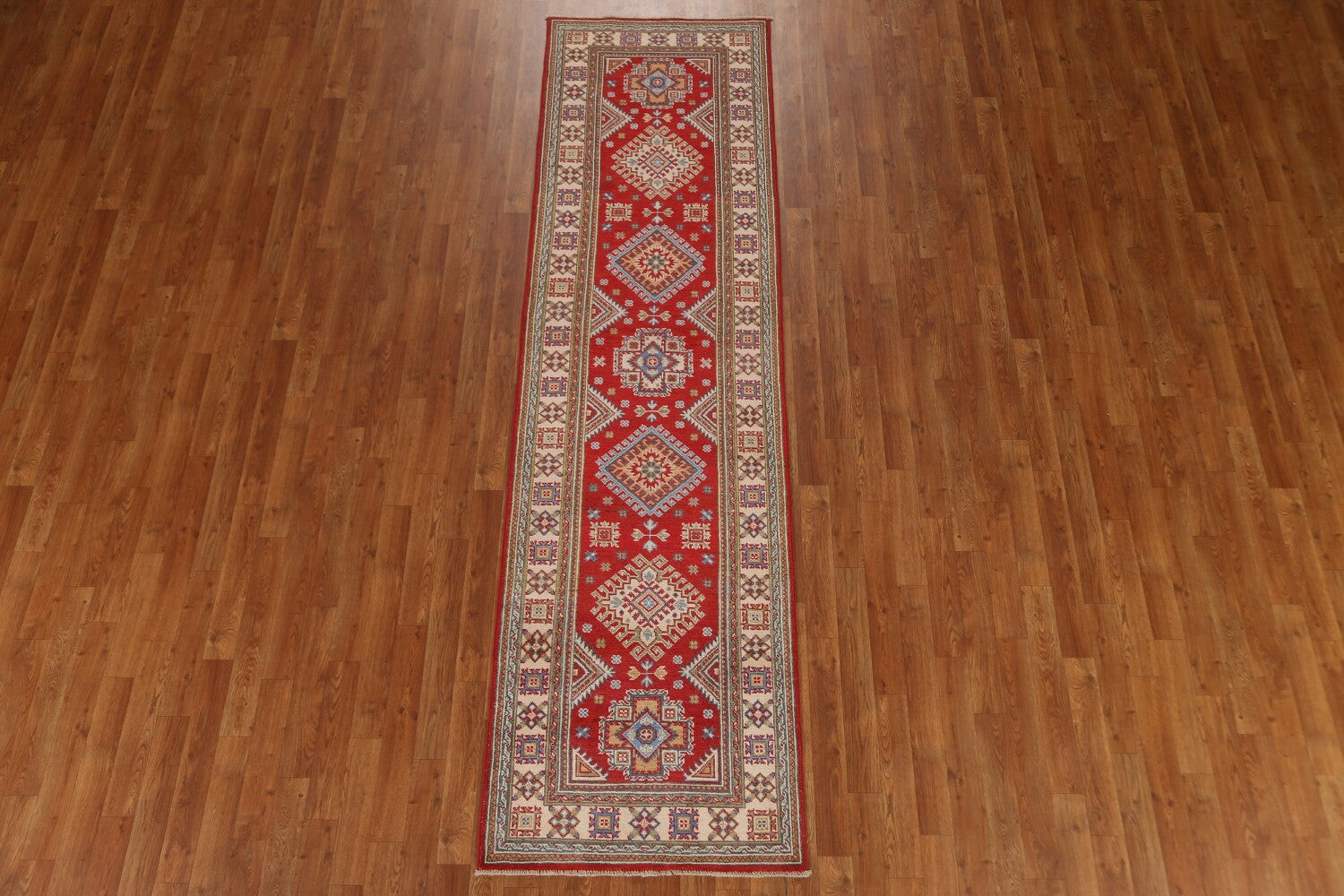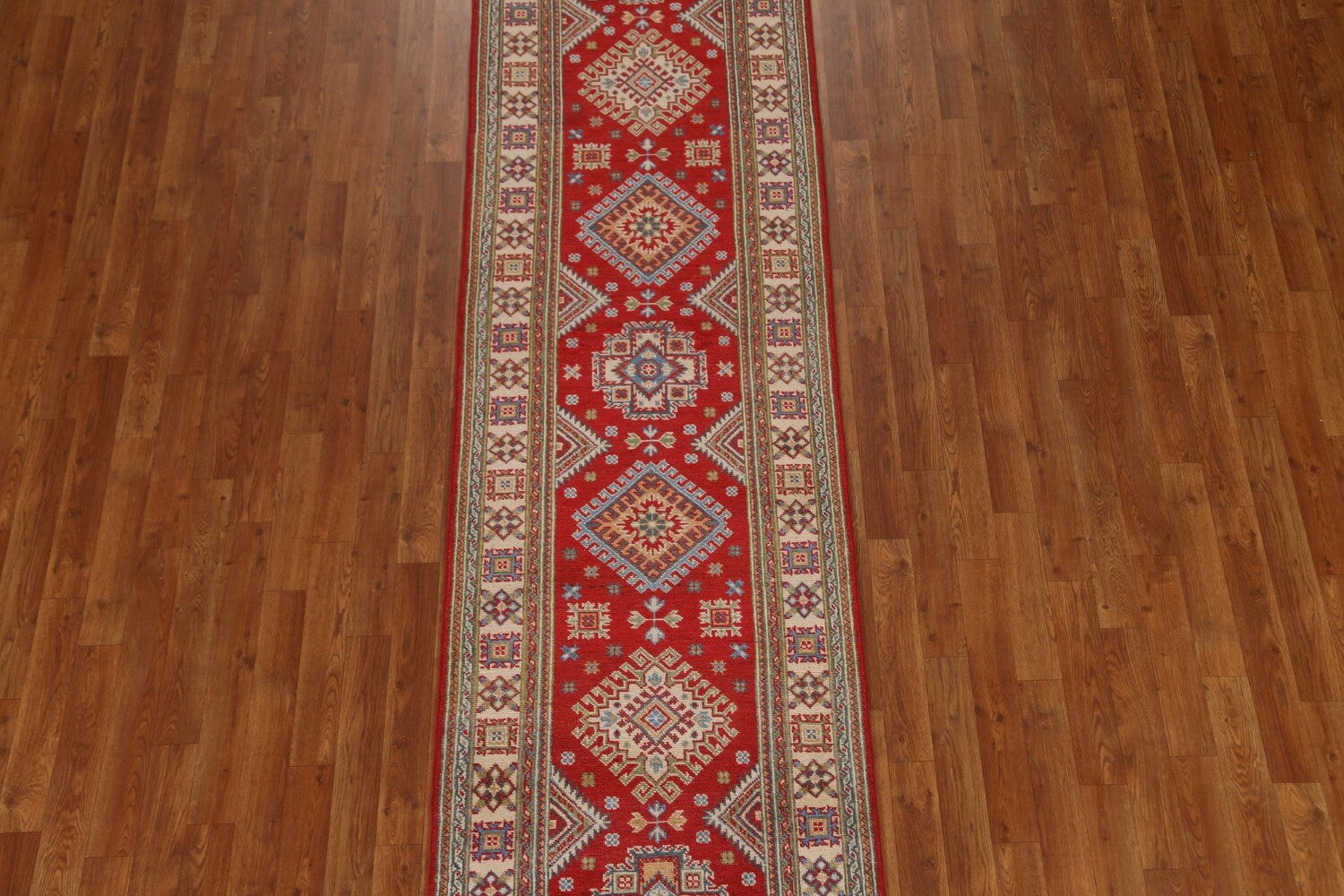 Red Wool Kazak Pakistani Runner Rug 3x10