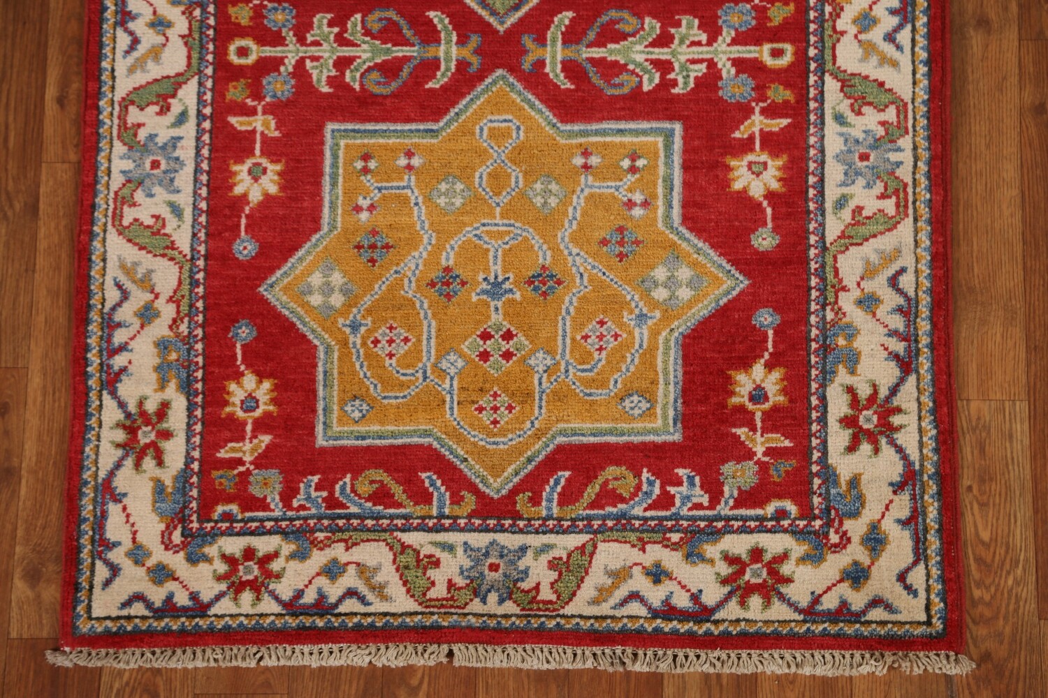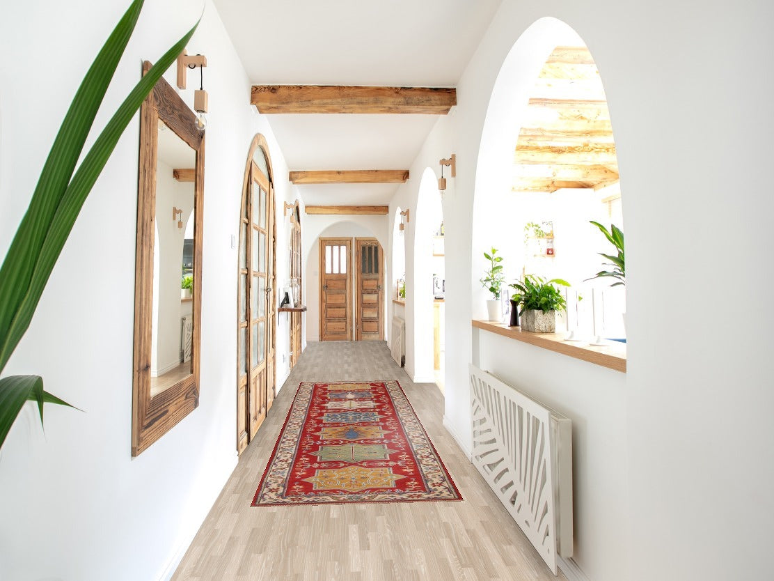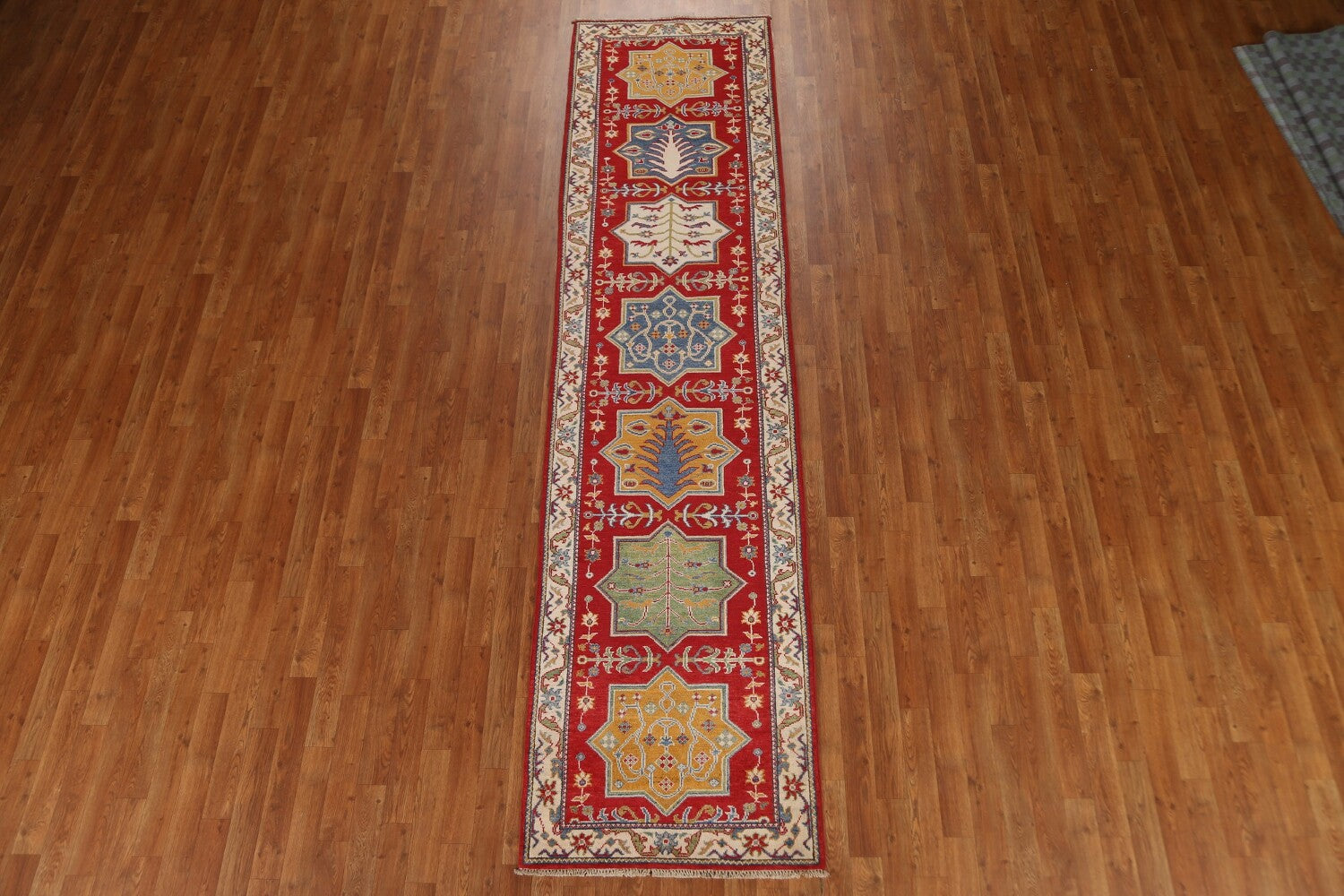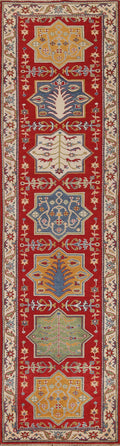 Red Wool Kazak Pakistani Runner Rug 3x11