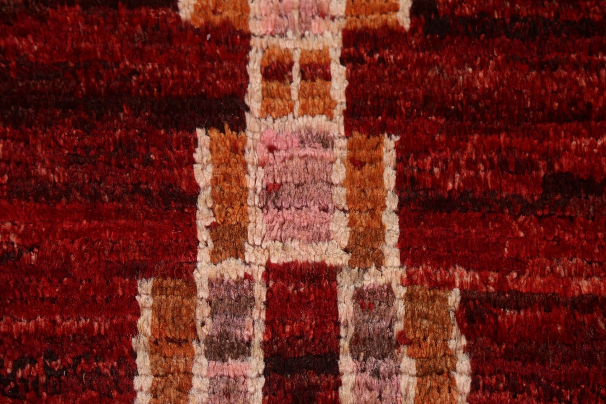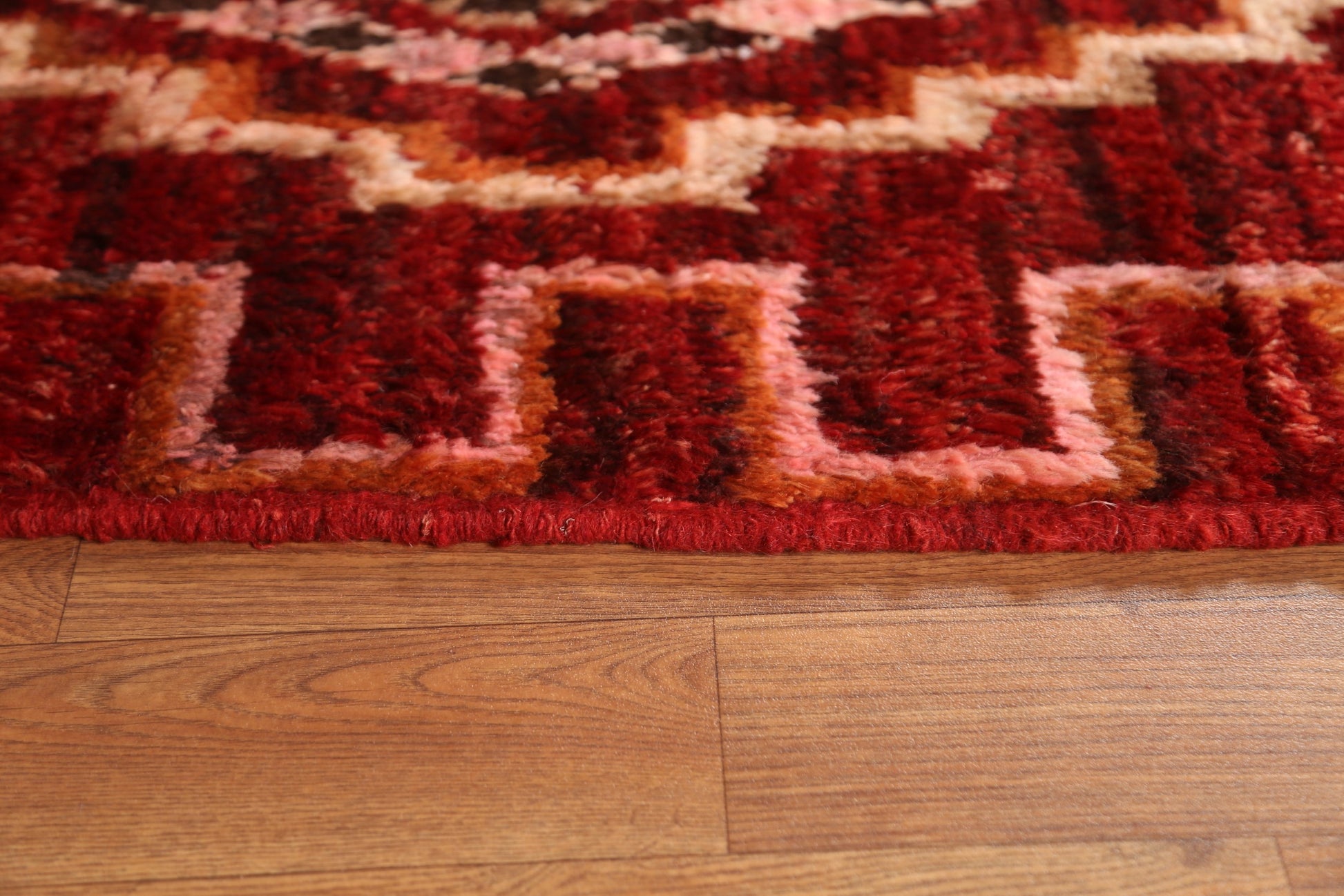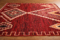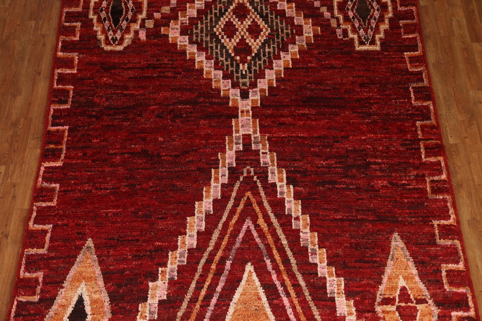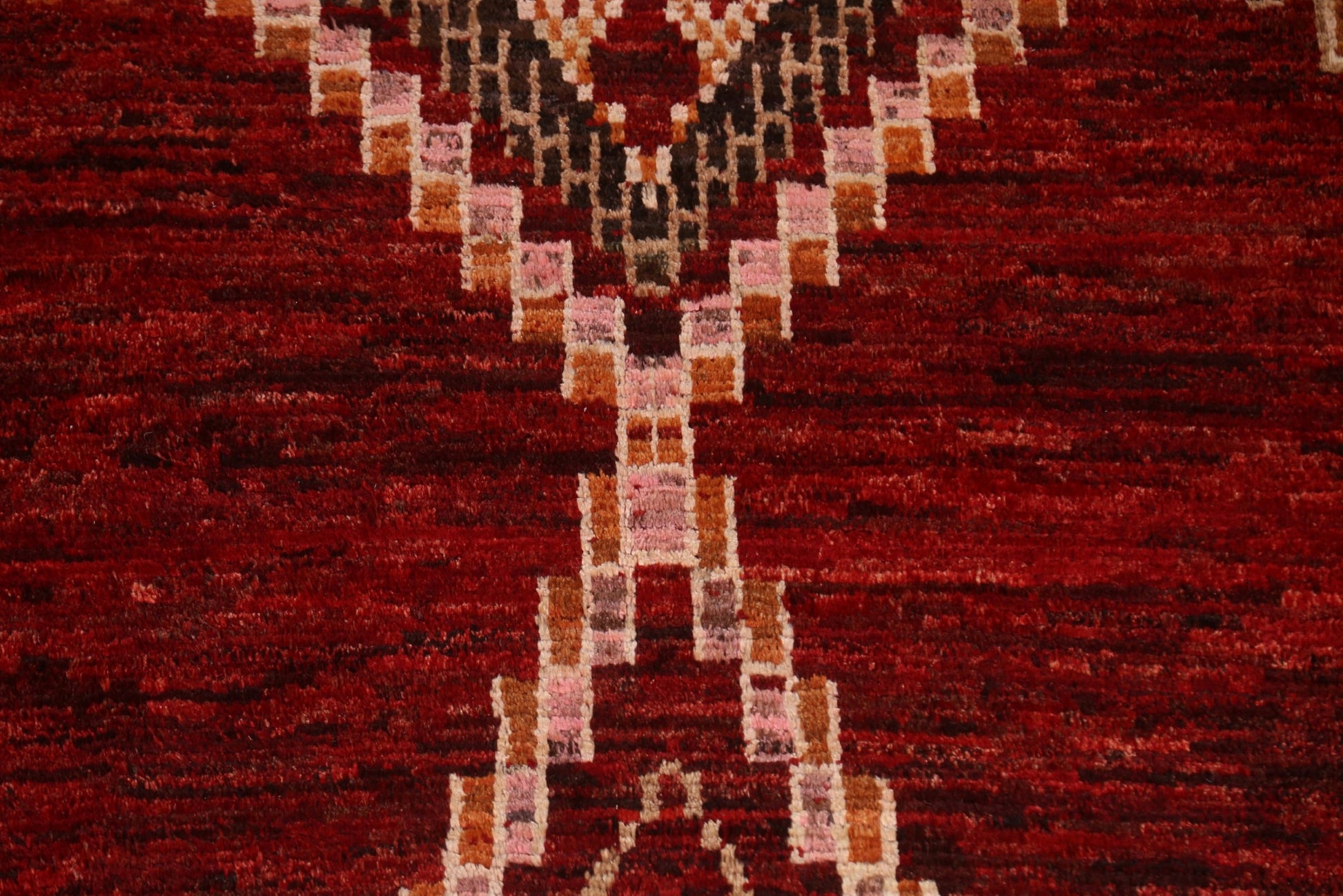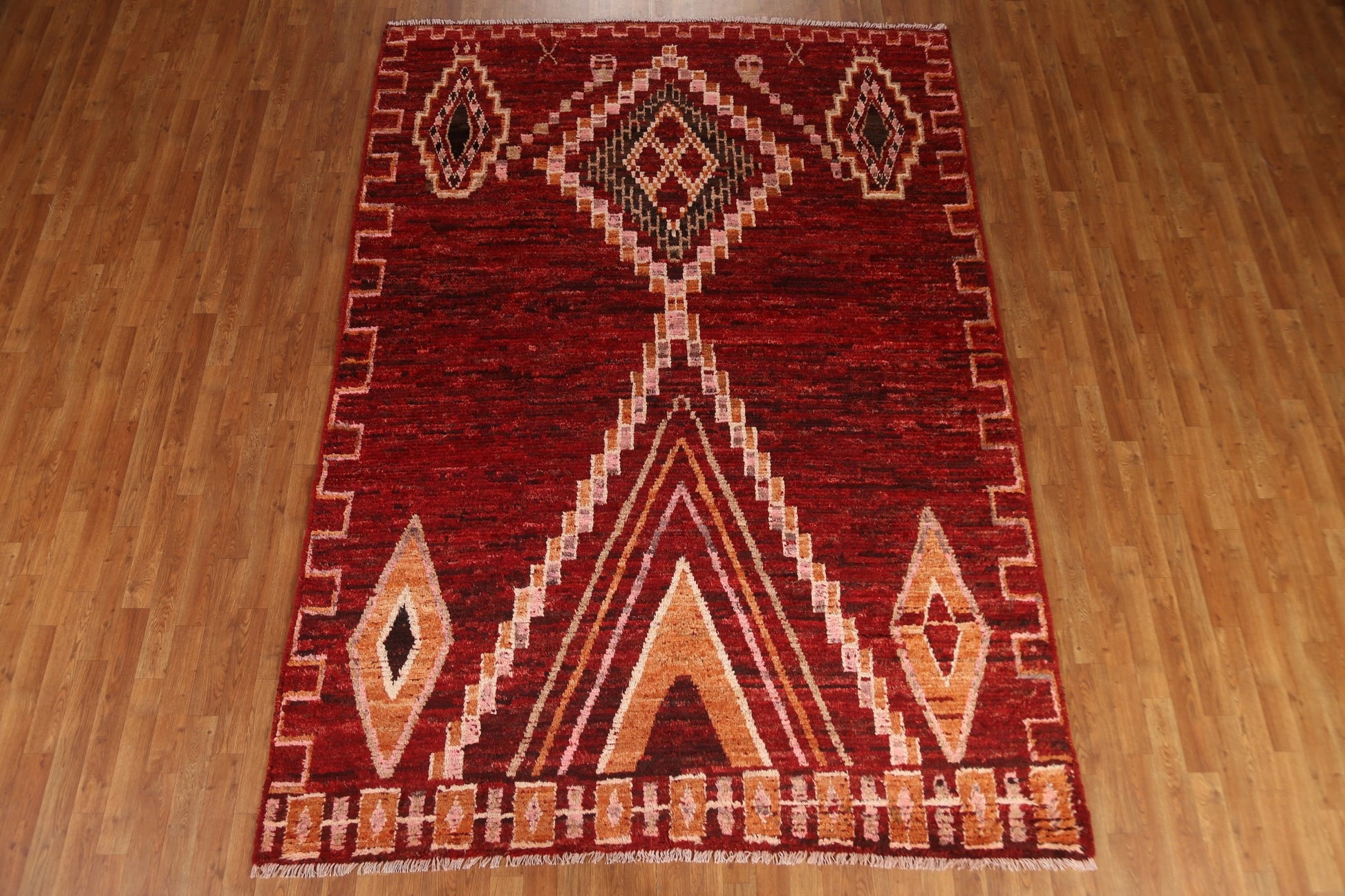 A Beautiful Genuine Pakistan Moroccan rug is Hand Knotted by skillful weavers in Pakistan with 100% Wool Material. This rug is in condition. dimensions are 9' 11'' X 7' 0'' in foot and 302 X 213 in centimeter. the primary color is Red.
