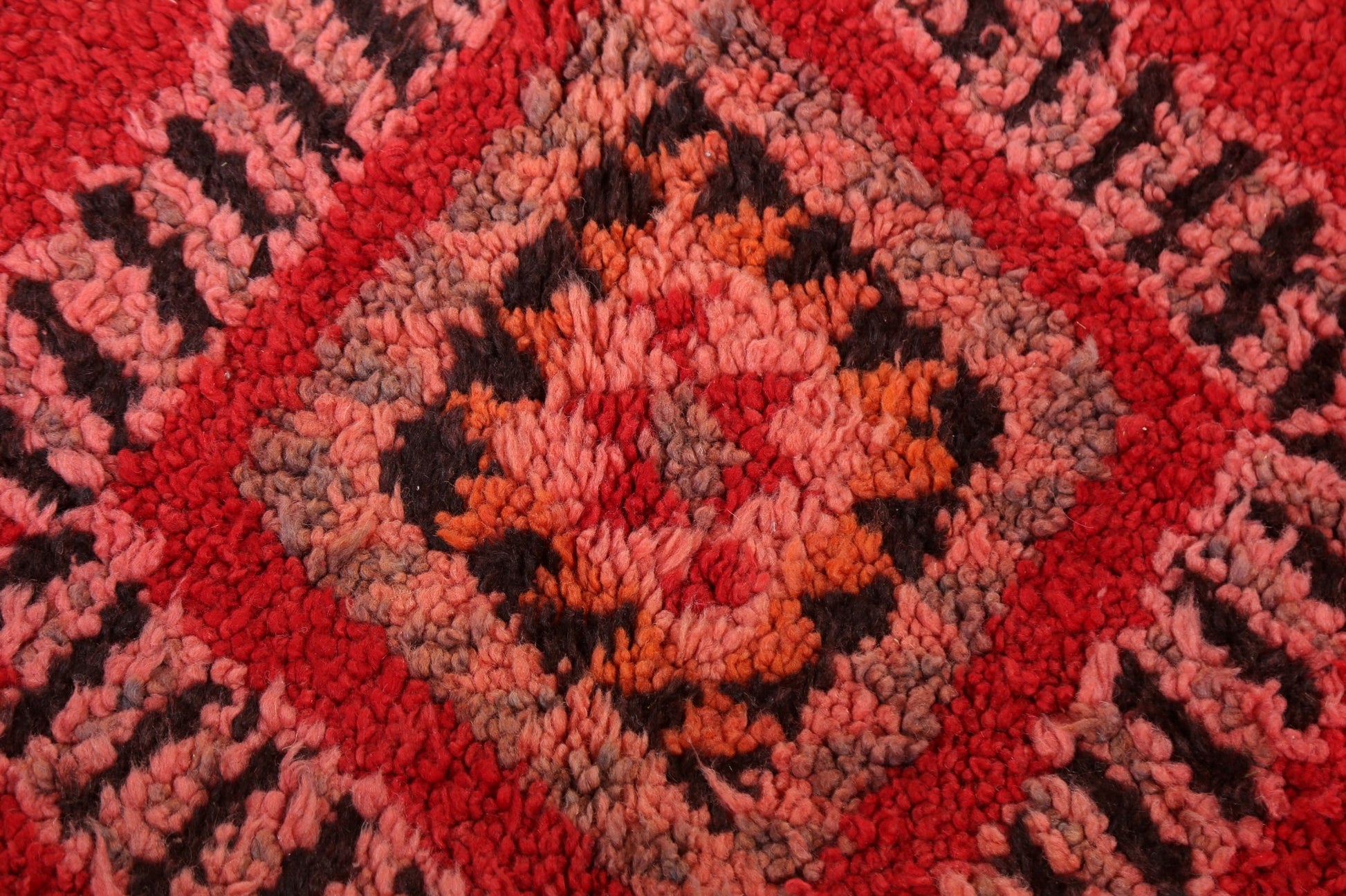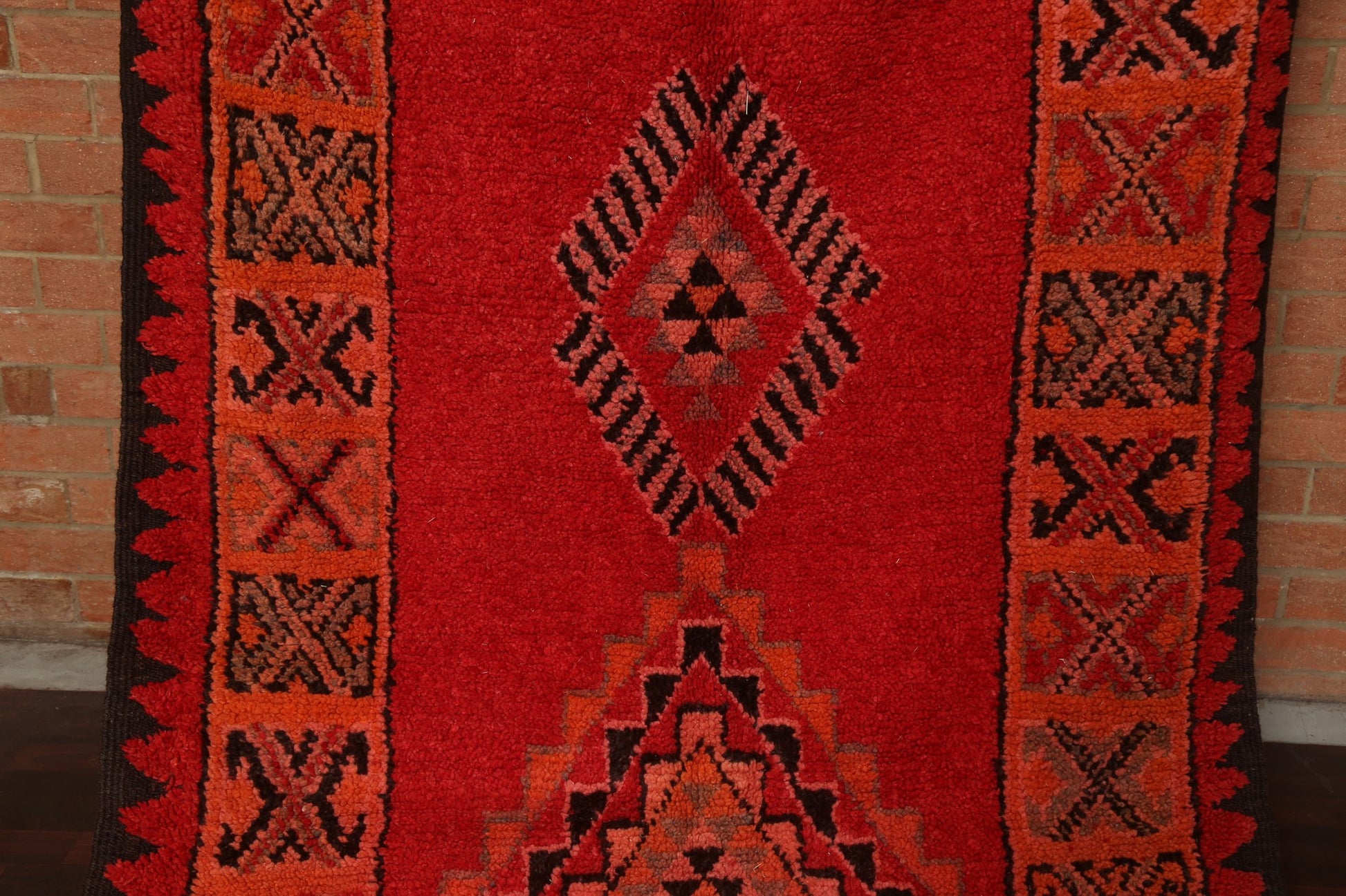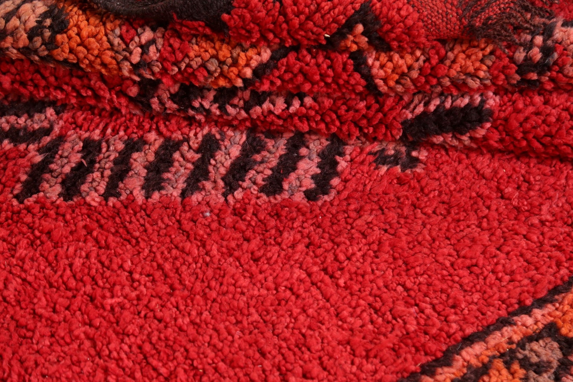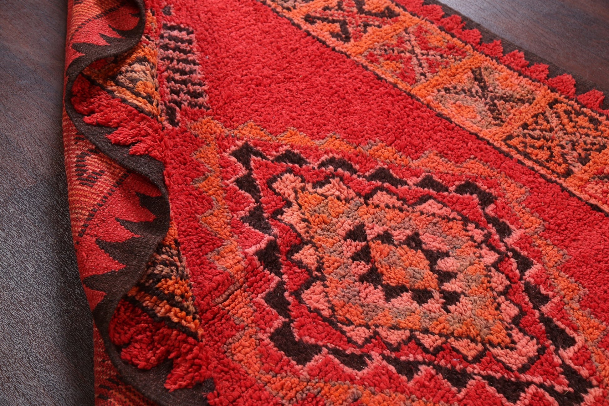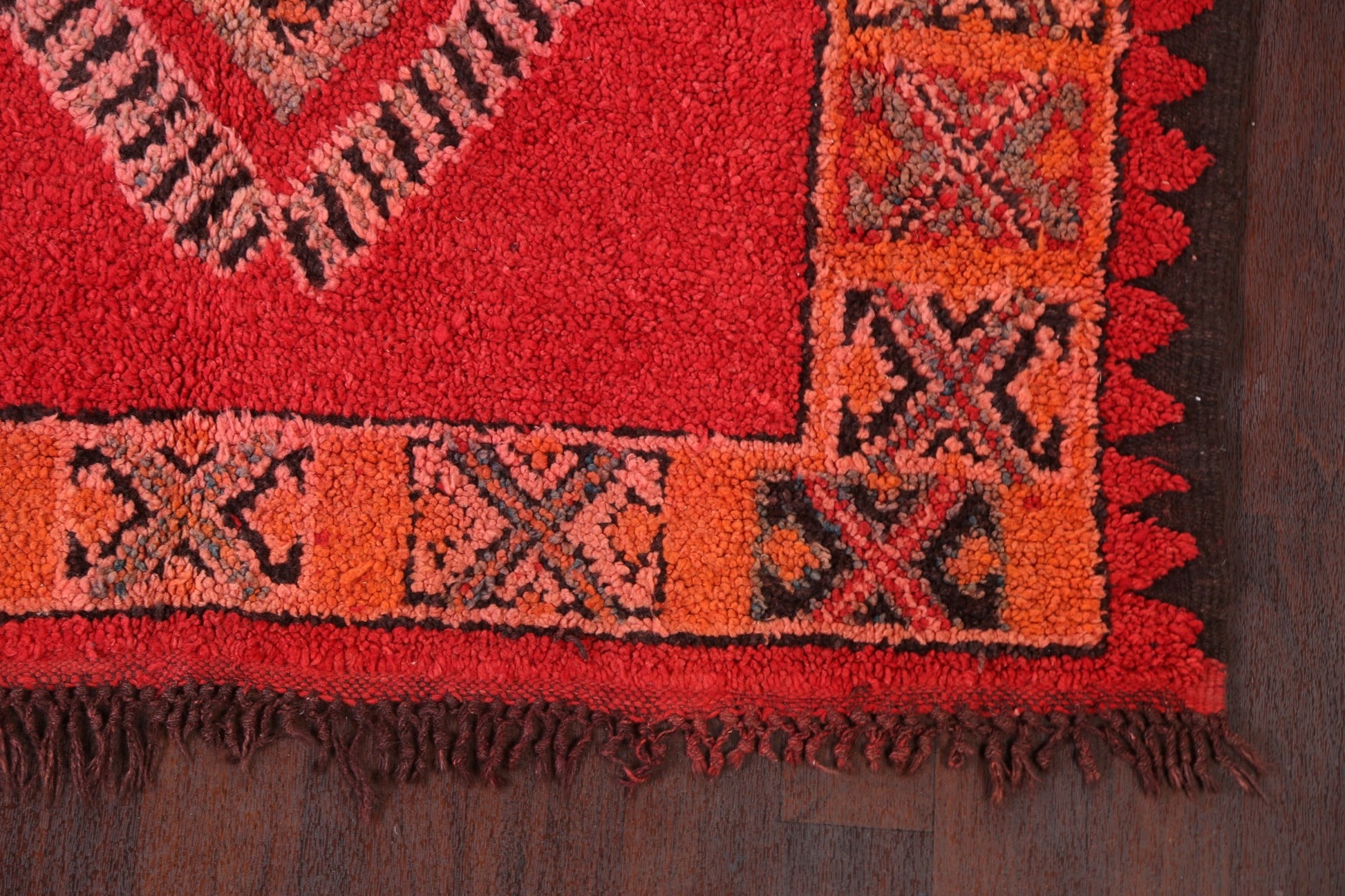 A Beautiful Genuine Morocco Moroccan rug is Hand Knotted by skillful weavers in Morocco with 100% Wool Material. This rug is in Very Good condition. dimensions are 10' 5'' X 5' 5'' in foot and 318 X 165 in centimeter. the primary color is Red.
