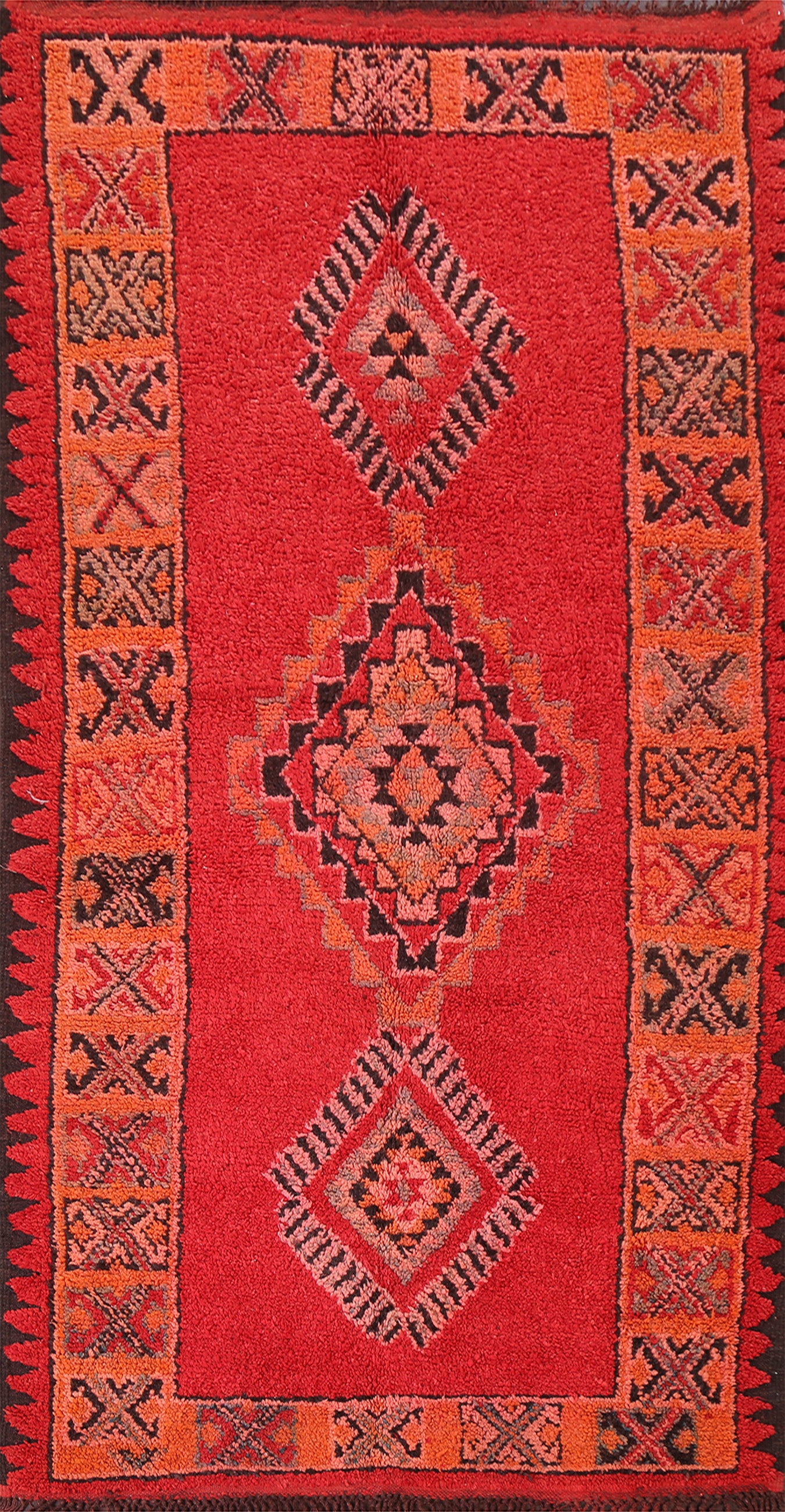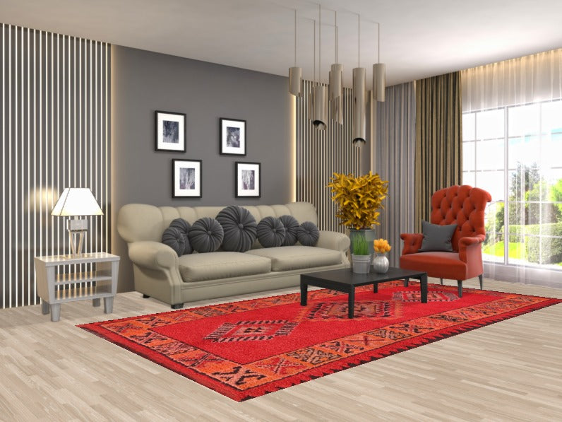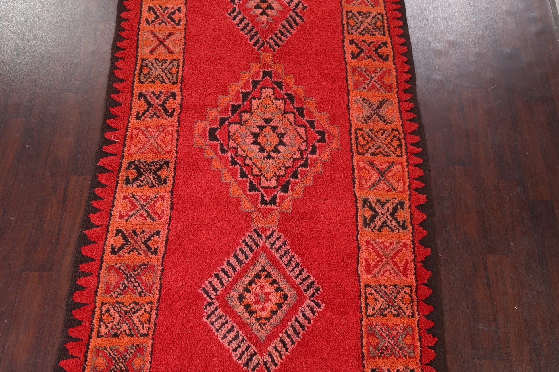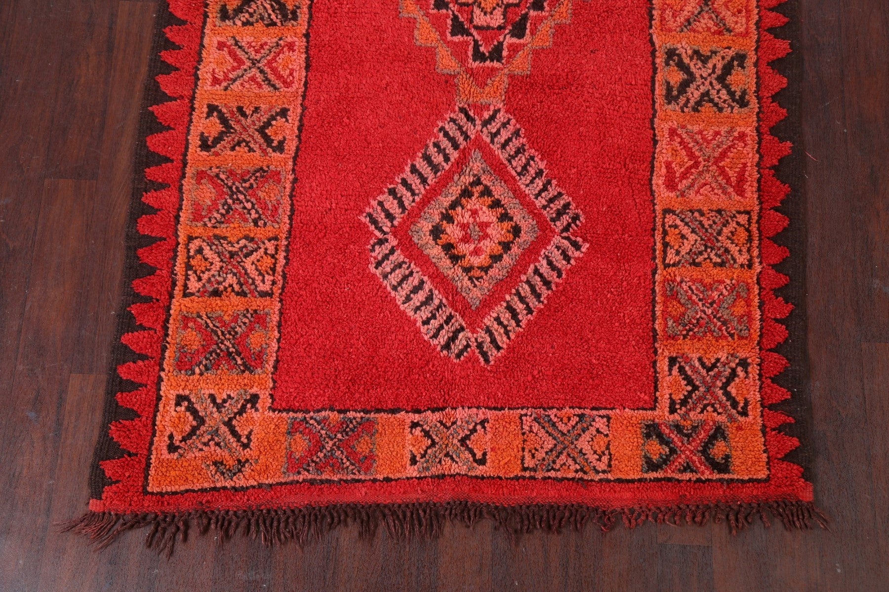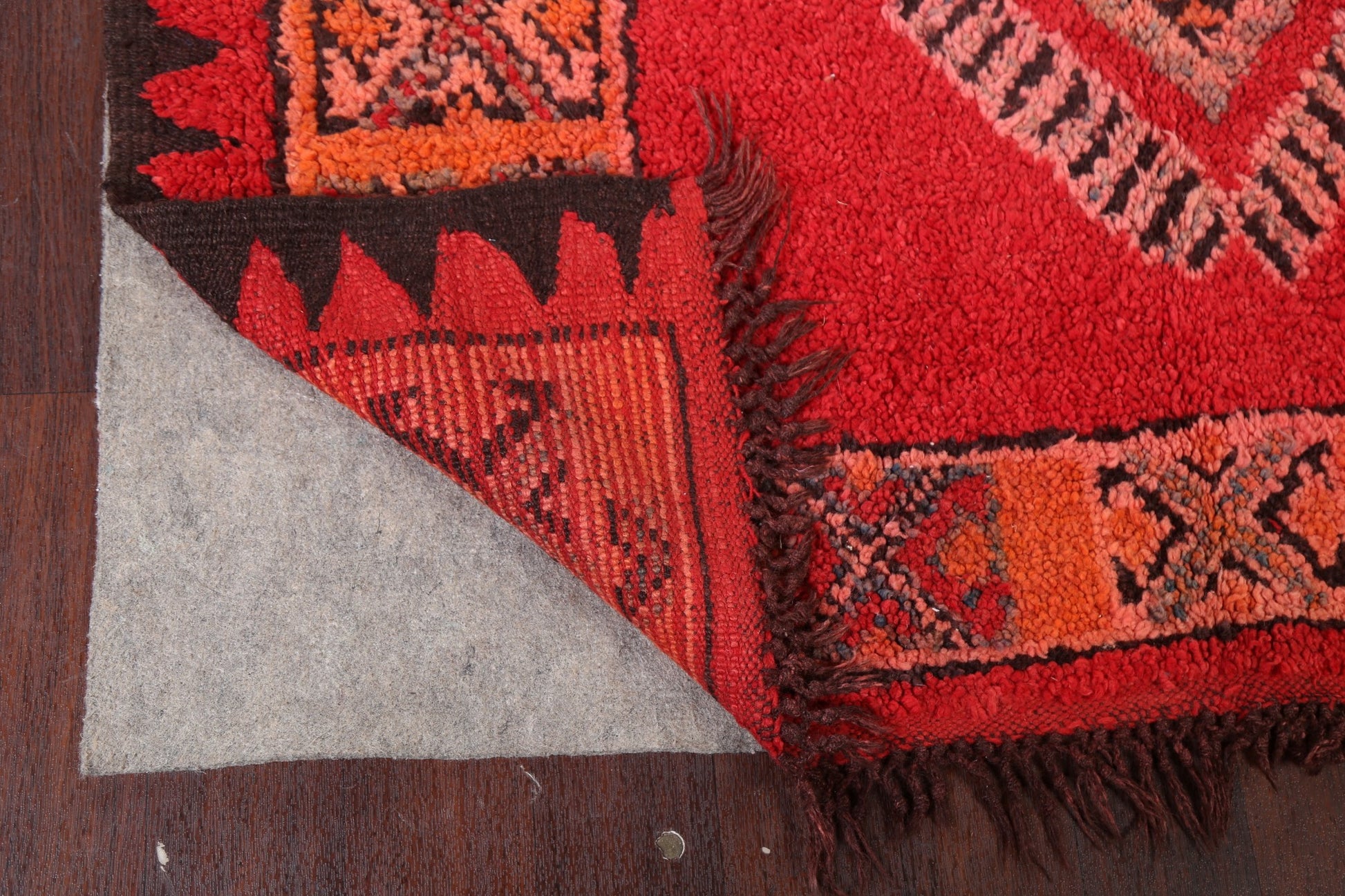 A Beautiful Genuine Morocco Moroccan rug is Hand Knotted by skillful weavers in Morocco with 100% Wool Material. This rug is in Very Good condition. dimensions are 10' 5'' X 5' 5'' in foot and 318 X 165 in centimeter. the primary color is Red.
