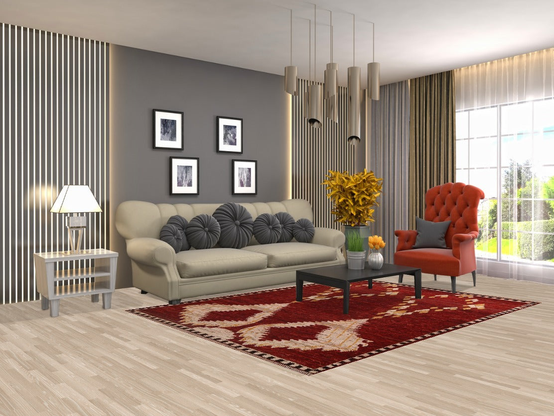 Red Wool Moroccan Oriental Area Rug 6x8