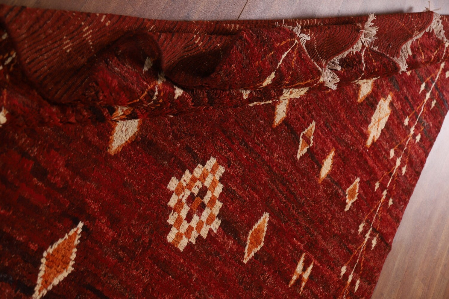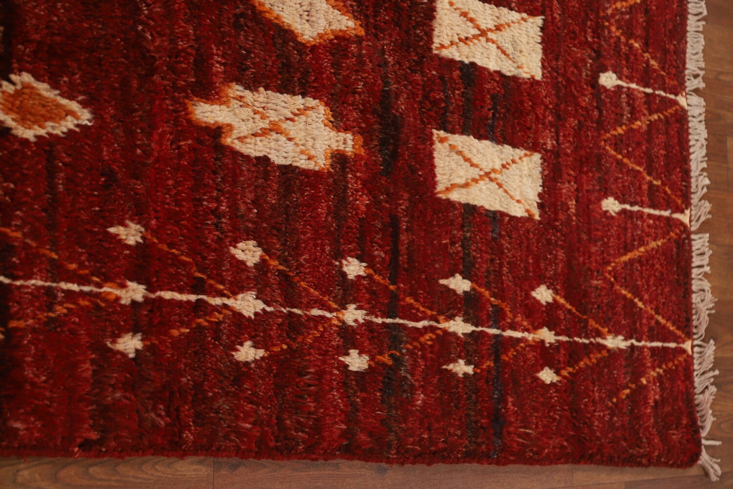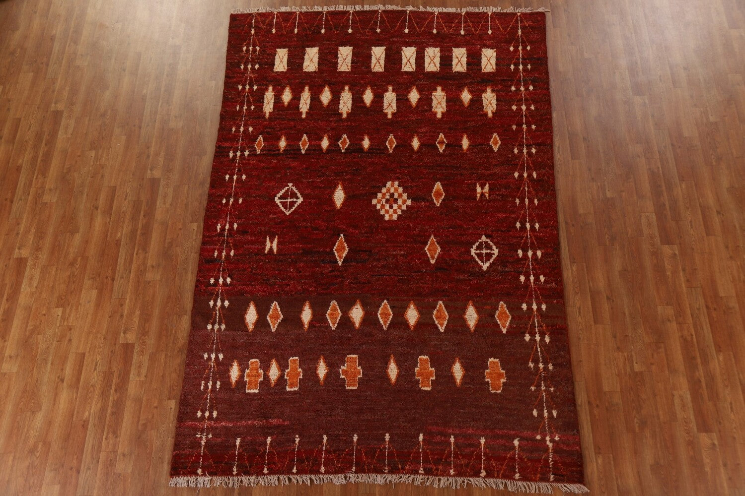 A Beautiful Genuine Pakistan Moroccan rug is Hand Knotted by skillful weavers in Pakistan with 100% Wool Material. This rug is in condition. dimensions are 9' 7'' X 6' 4'' in foot and 292 X 193 in centimeter. the primary color is Red.