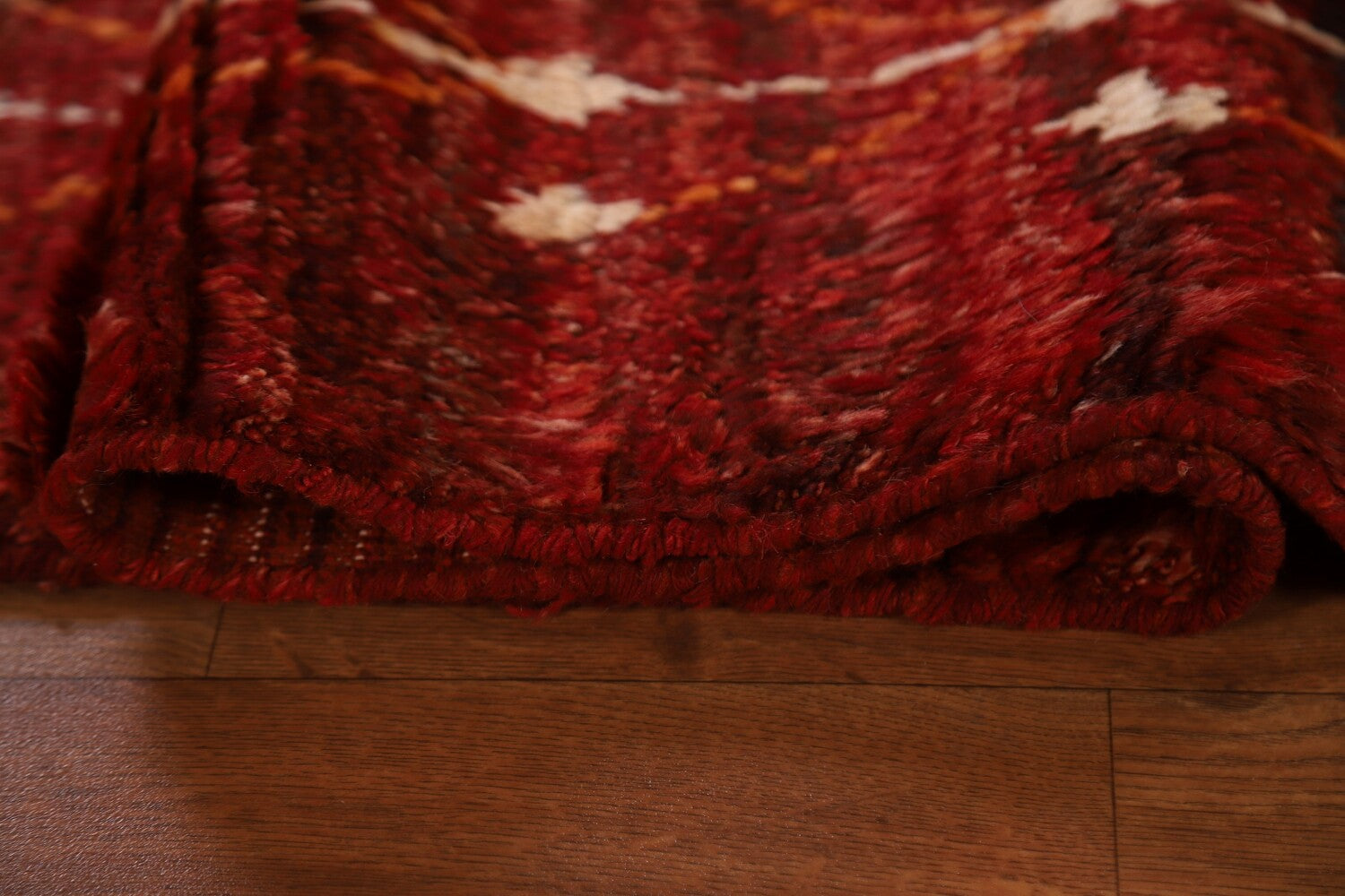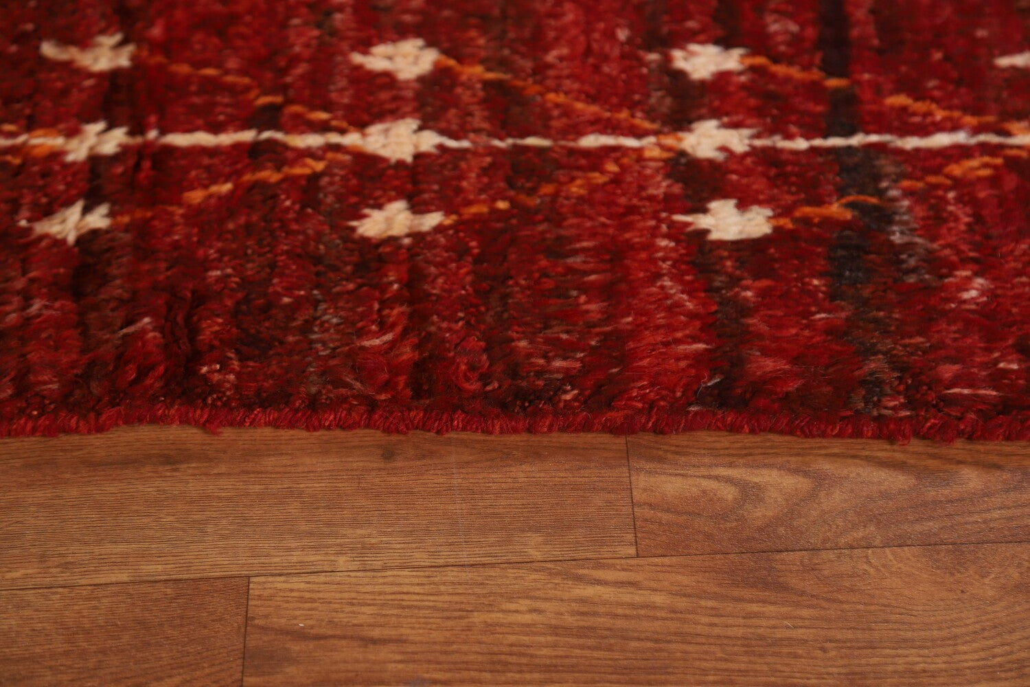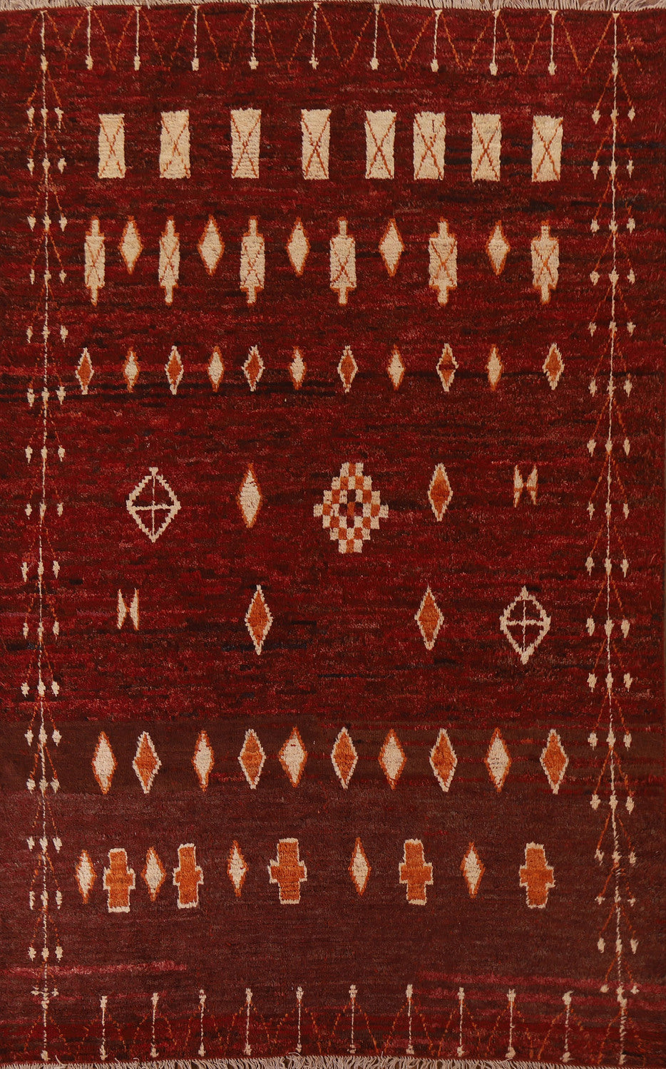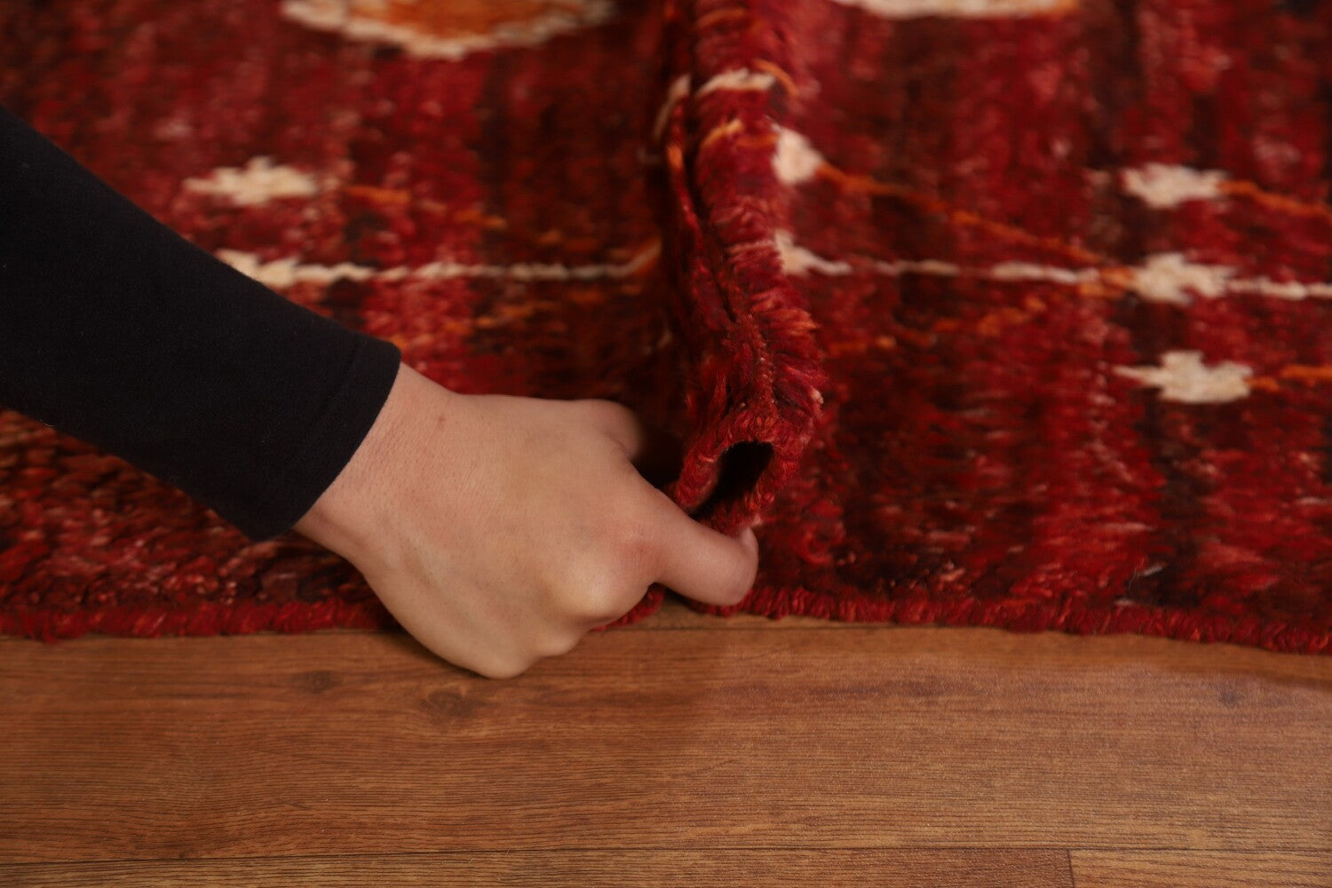 A Beautiful Genuine Pakistan Moroccan rug is Hand Knotted by skillful weavers in Pakistan with 100% Wool Material. This rug is in condition. dimensions are 9' 7'' X 6' 4'' in foot and 292 X 193 in centimeter. the primary color is Red.