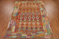 A Beautiful Genuine Pakistan Kilim rug is Hand Woven by skillful weavers in Pakistan with 100% Wool Material. This rug is in New, First Quality condition. dimensions are 12' 6'' X 9' 9'' in foot and 381 X 297 in centimeter. the primary color is Oranges & Rust.