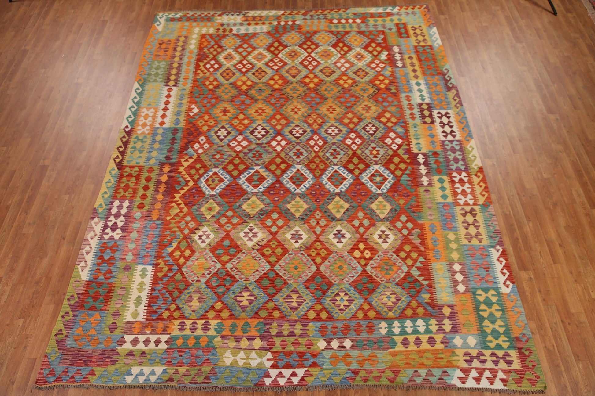 Reversible Wool Kilim All-Over Area Rug 10x13