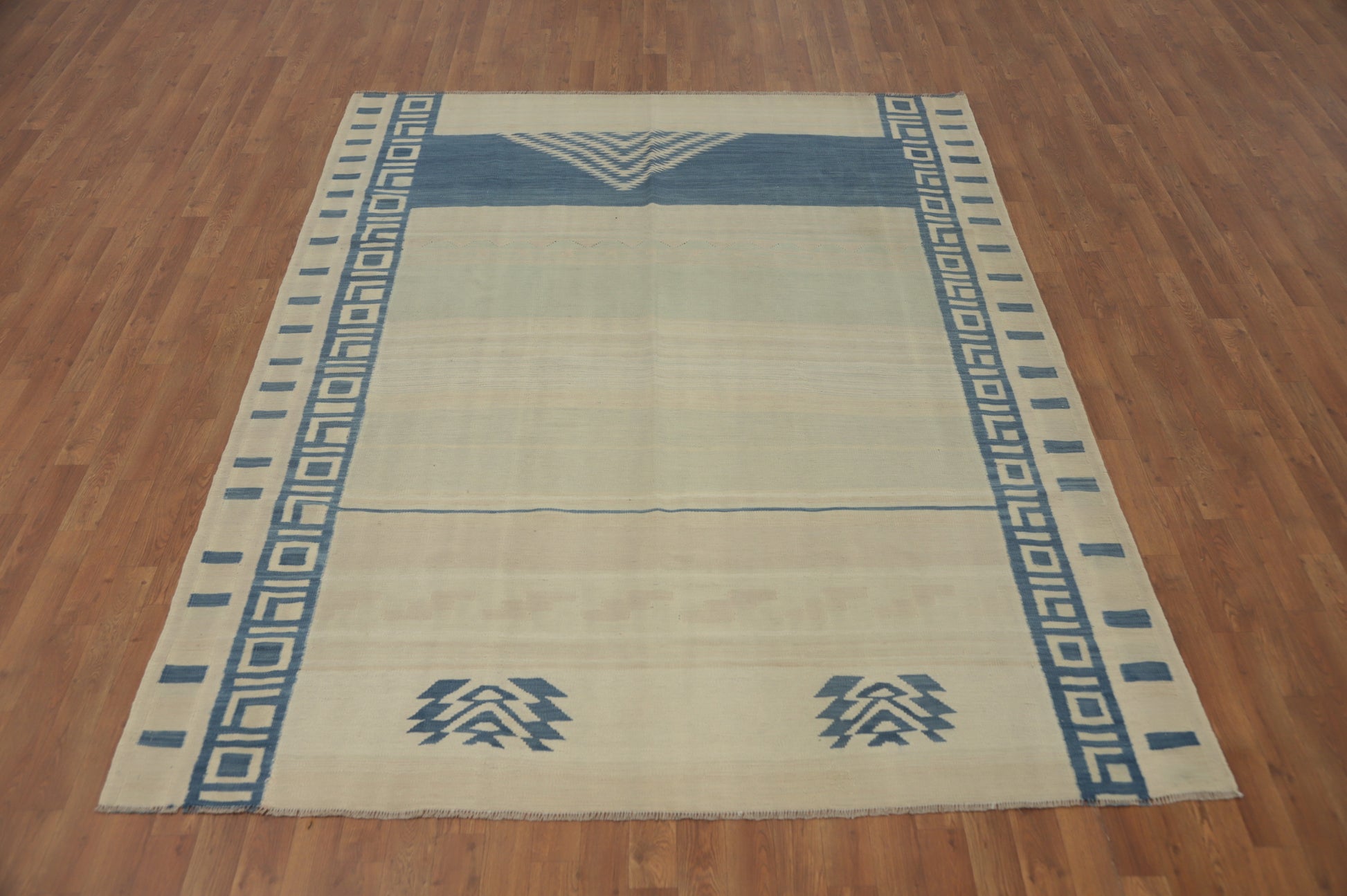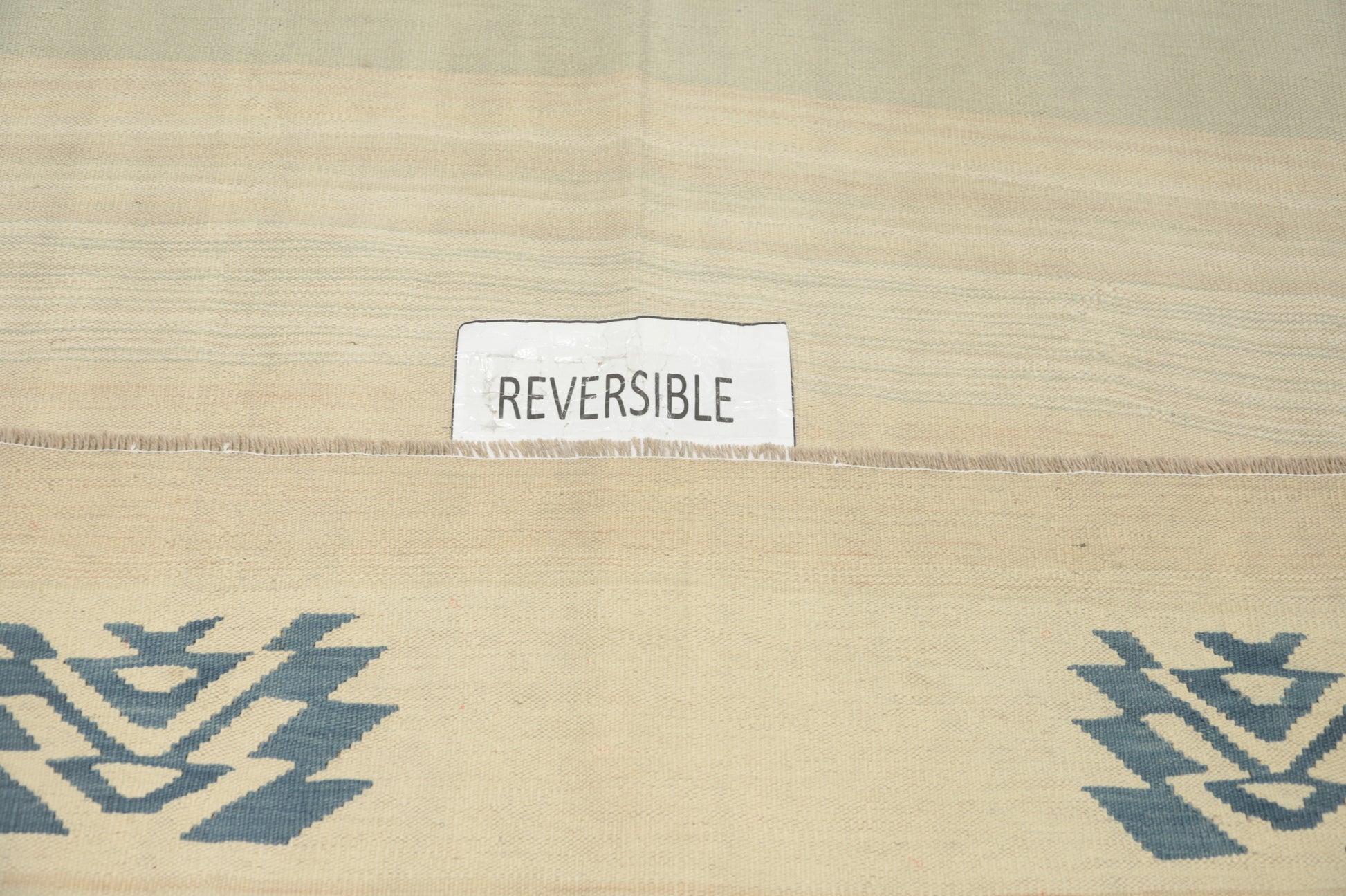 A Beautiful Genuine Pakistan Kilim rug is Hand Woven by skillful weavers in Pakistan with 100% Wool Material. This rug is in New, First Quality condition. dimensions are 8' 5'' X 6' 8'' in foot and 257 X 203 in centimeter. the primary color is Beige & Ivories.
