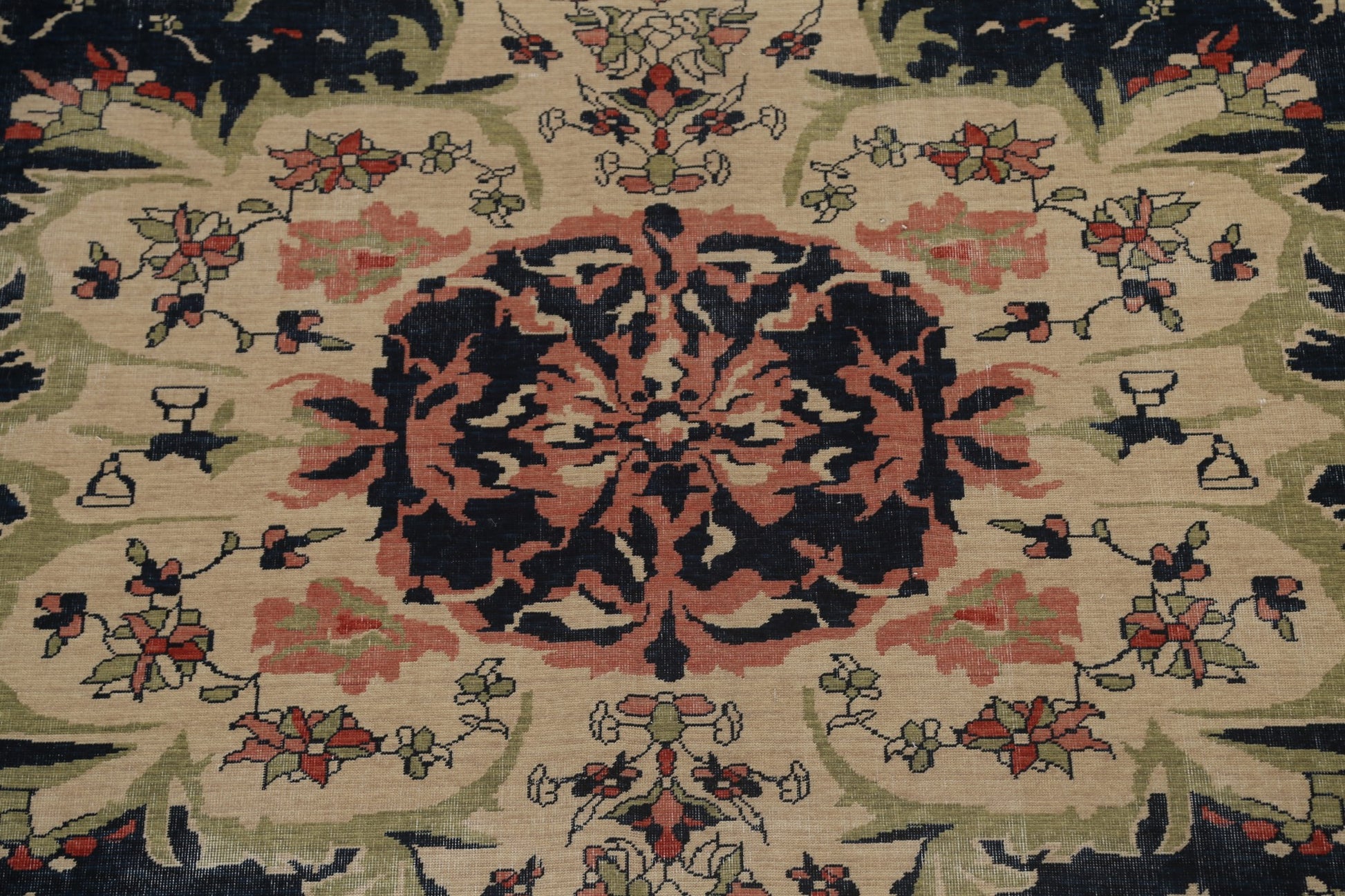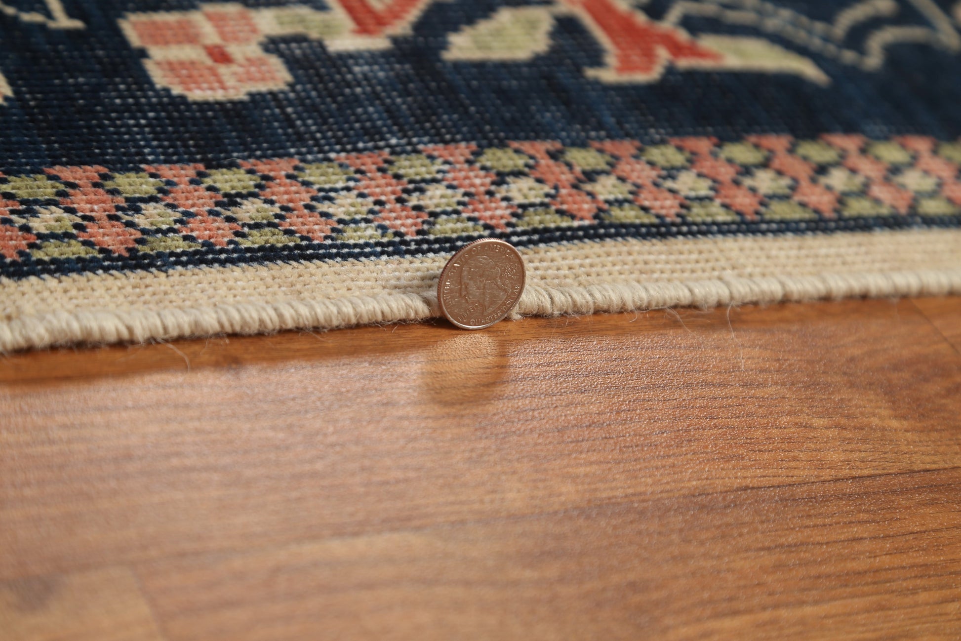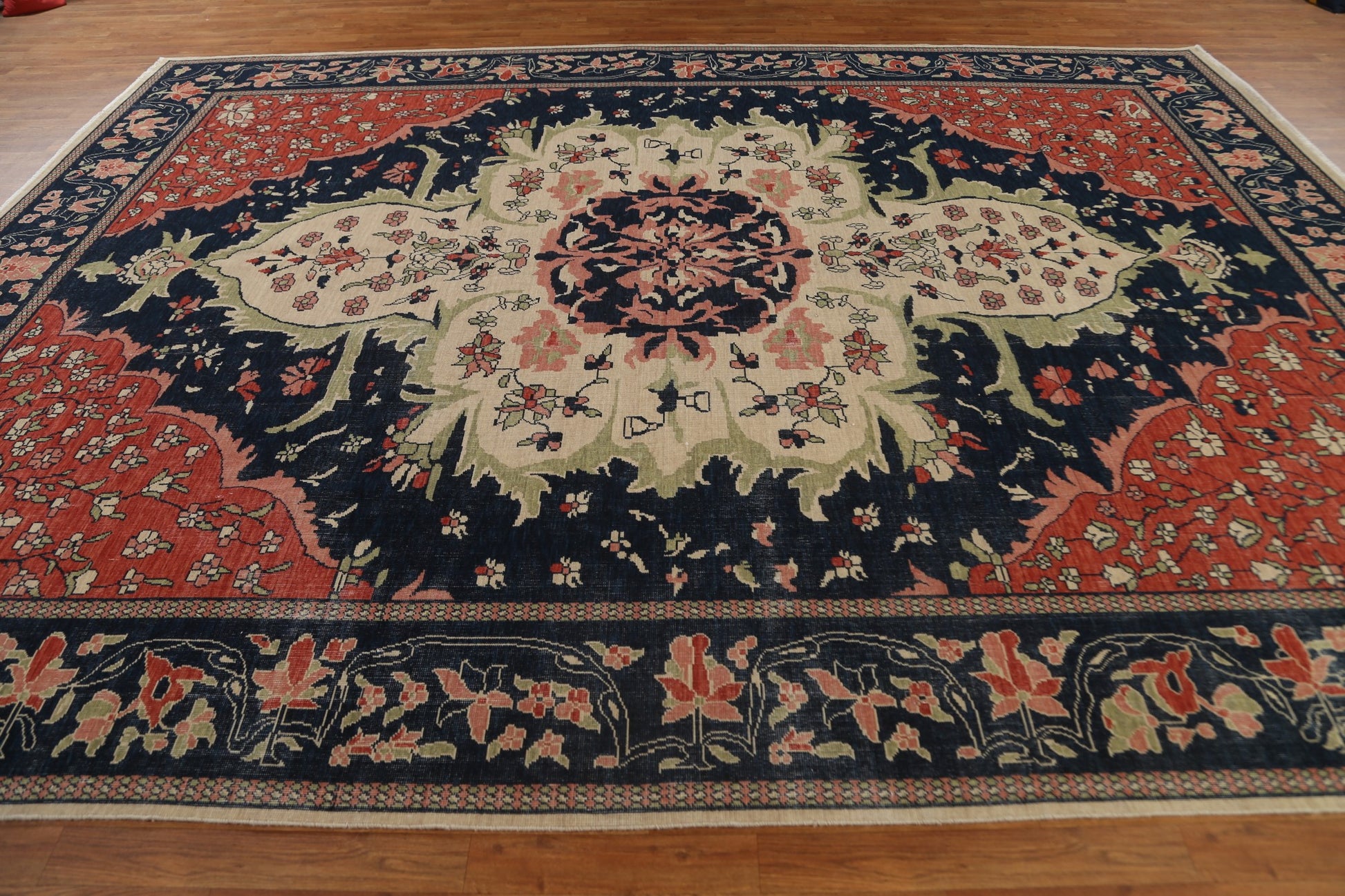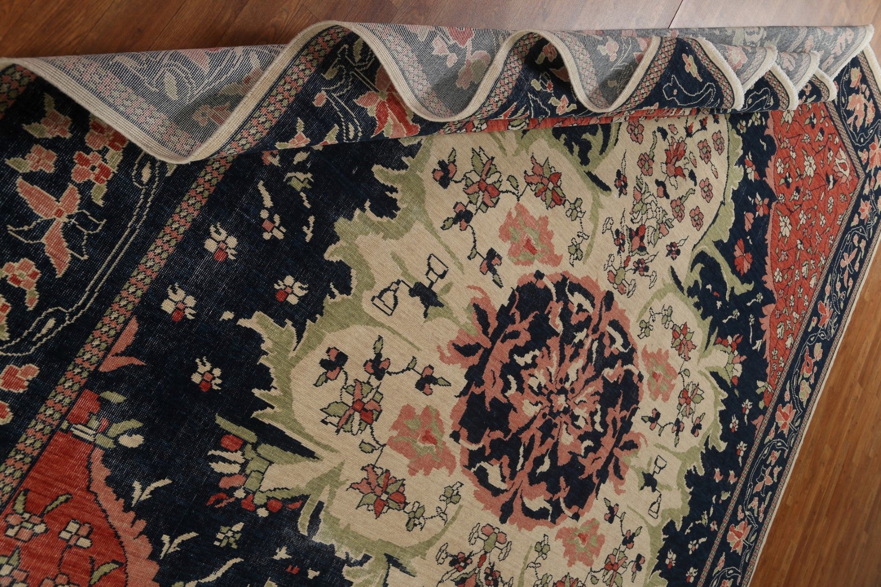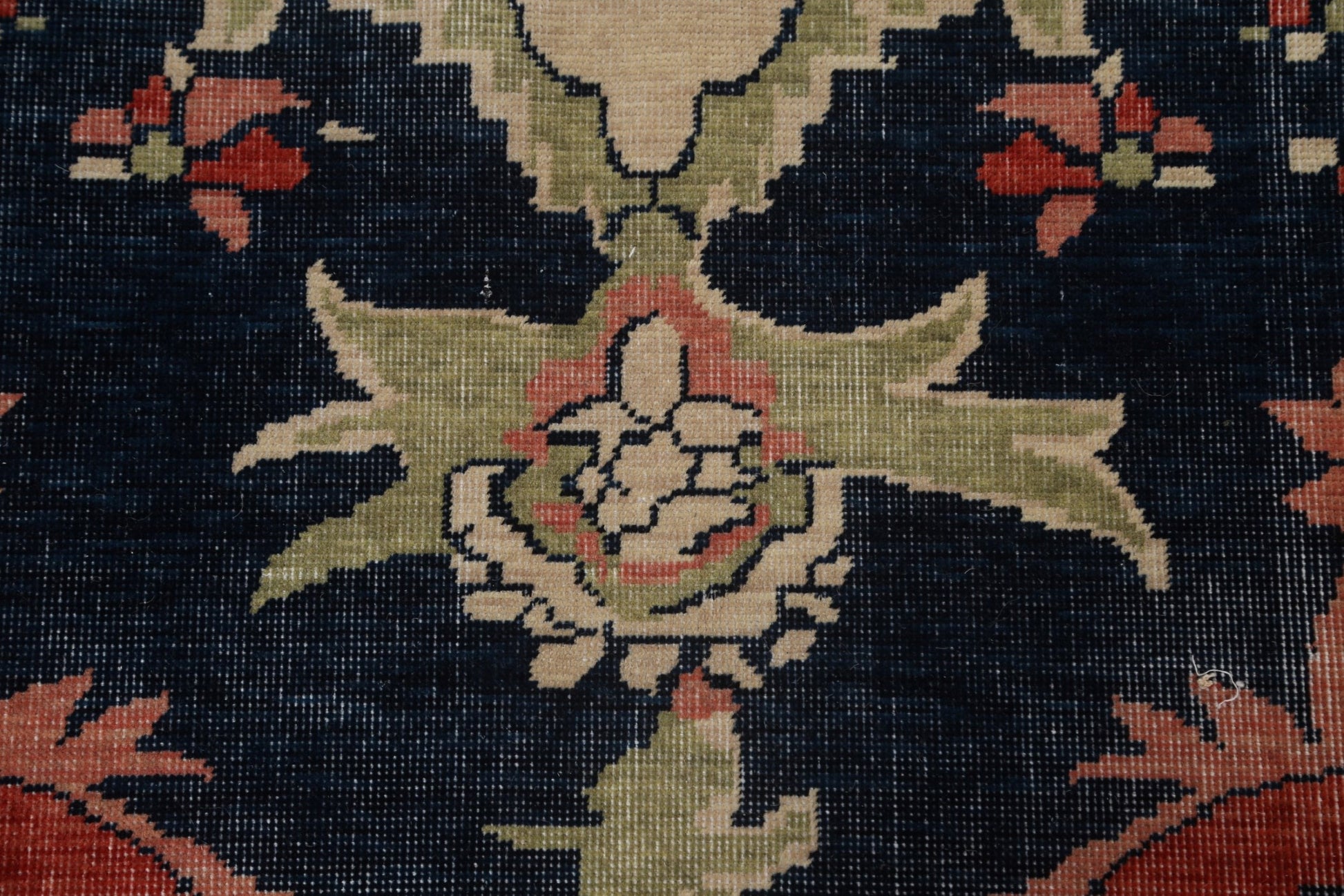 A Beautiful Genuine Turkey Sarouk (Farahan) rug is Hand Knotted by skillful weavers in Turkey with 100% Wool Material. This rug is in New, First Quality condition. dimensions are 12' 11'' X 9' 10'' in foot and 394 X 300 in centimeter. the primary color is Navy Blue & Blues.