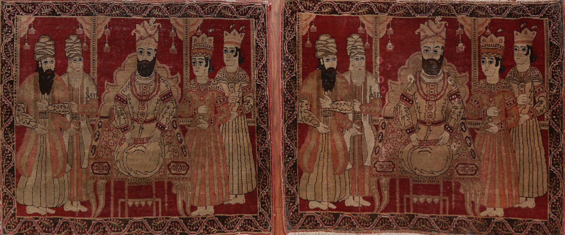 Set of 2 Pre-1900 Vegetable Dye Kerman Ravar Persian Rug 2x3