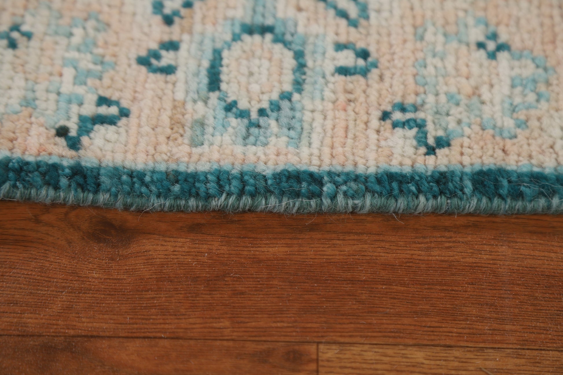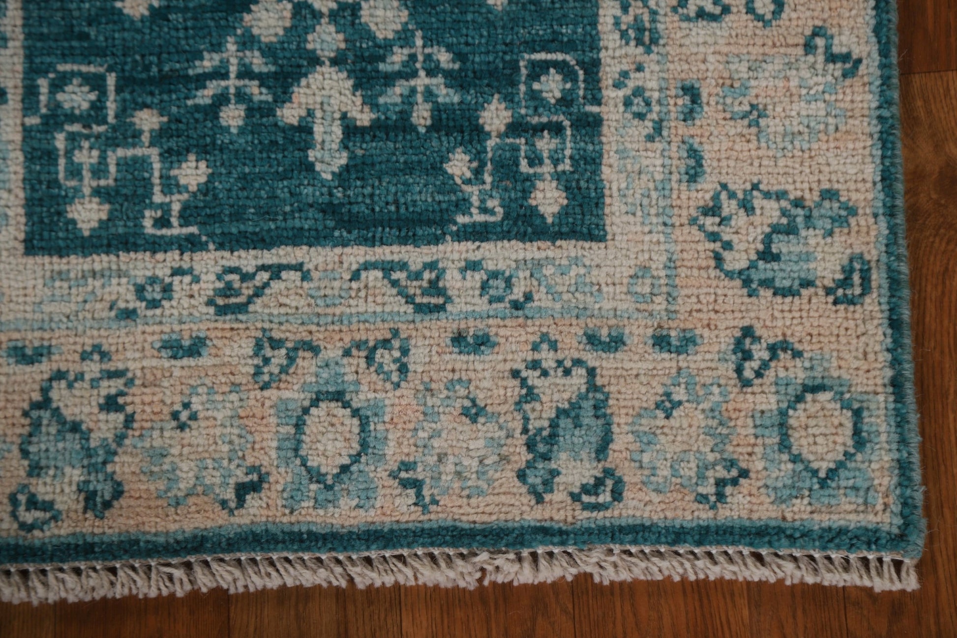 A Beautiful Genuine Turkey Oushak rug is Hand Knotted by skillful weavers in Turkey with 100% Wool Material. This rug is in New, First Quality condition. dimensions are 3' 10'' X 2' 0'' in foot and 117 X 61 in centimeter. the primary color is Green.