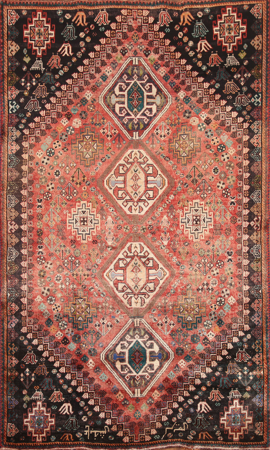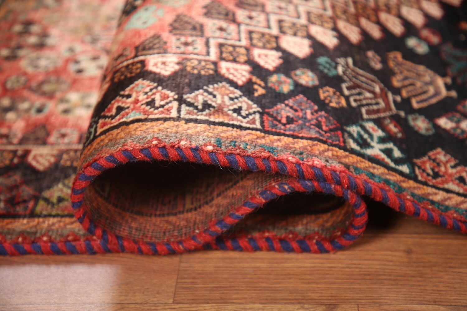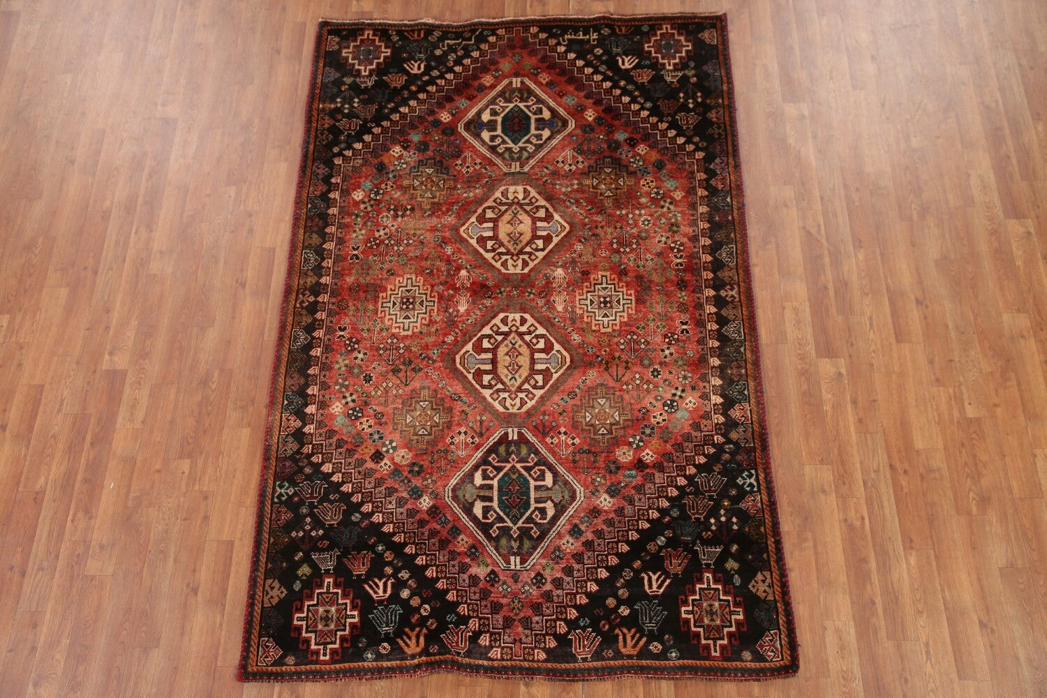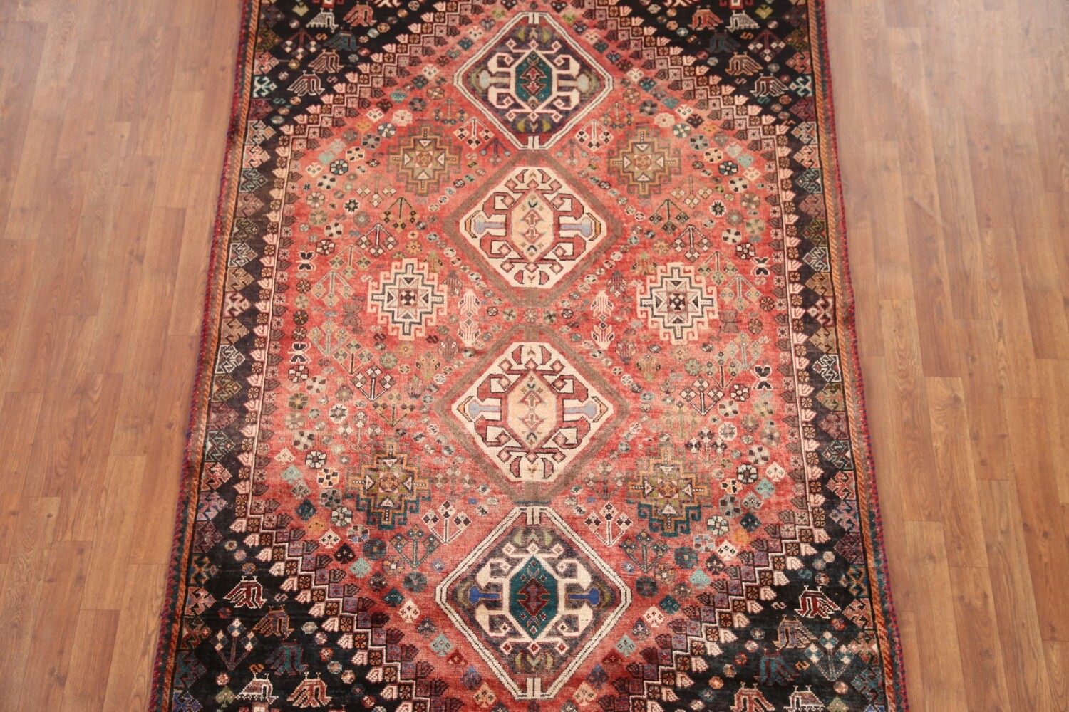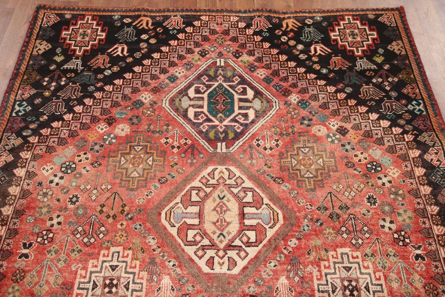 A Beautiful Genuine Persia ( Persia ) Shiraz rug is Hand Knotted by skillful weavers in Persia ( Persia ) with 100% Wool Material. This rug is in Very Good (Faded Color) condition. dimensions are 7' 9'' X 5' 0'' in foot and 236 X 152 in centimeter. the primary color is Red.