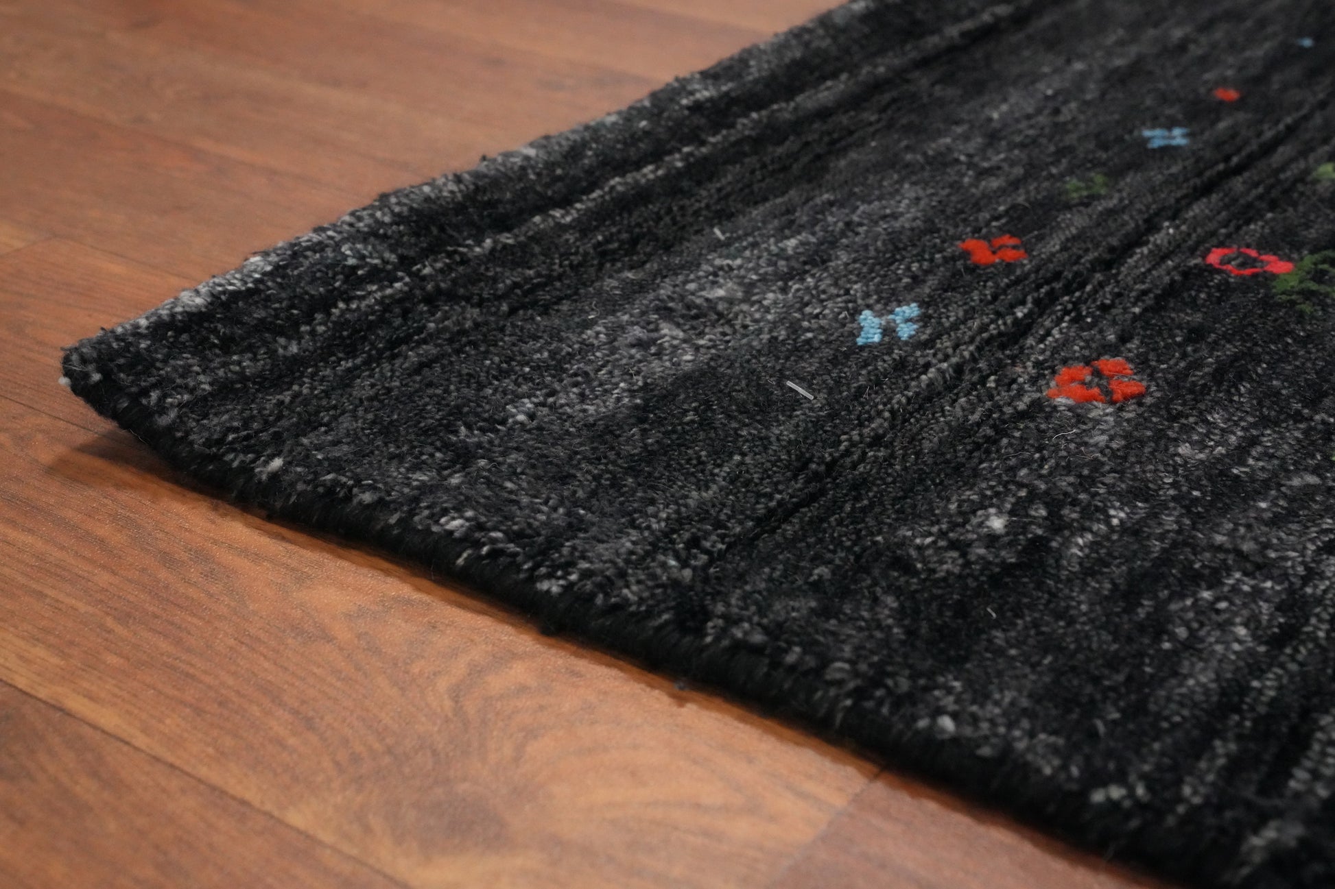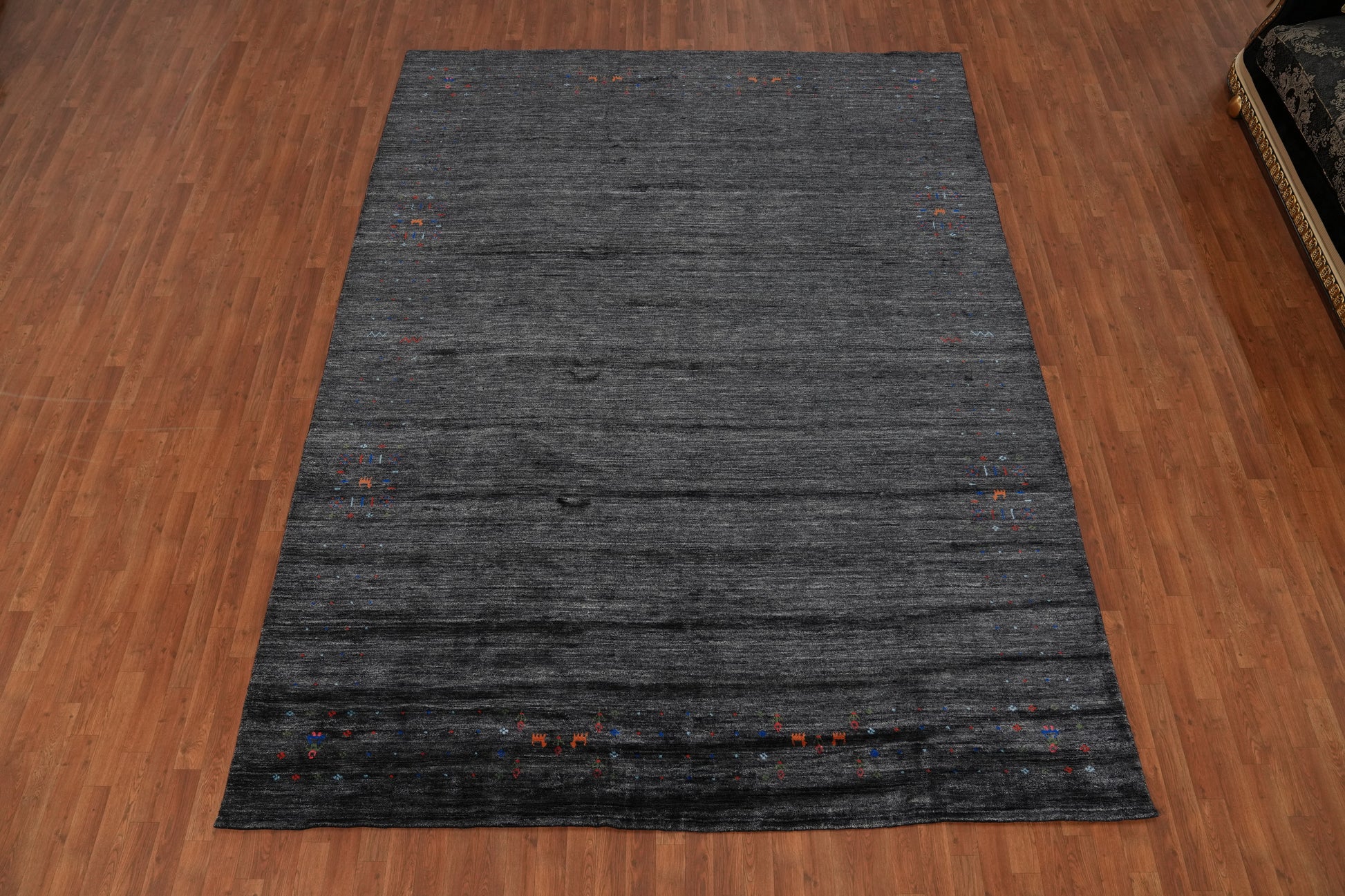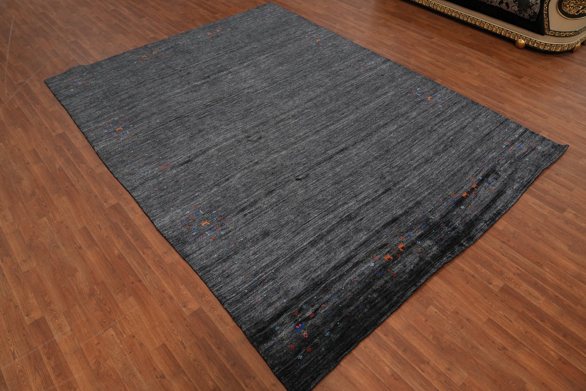 Silk Charcoal Gabbeh Indian Area Rug 9x12
