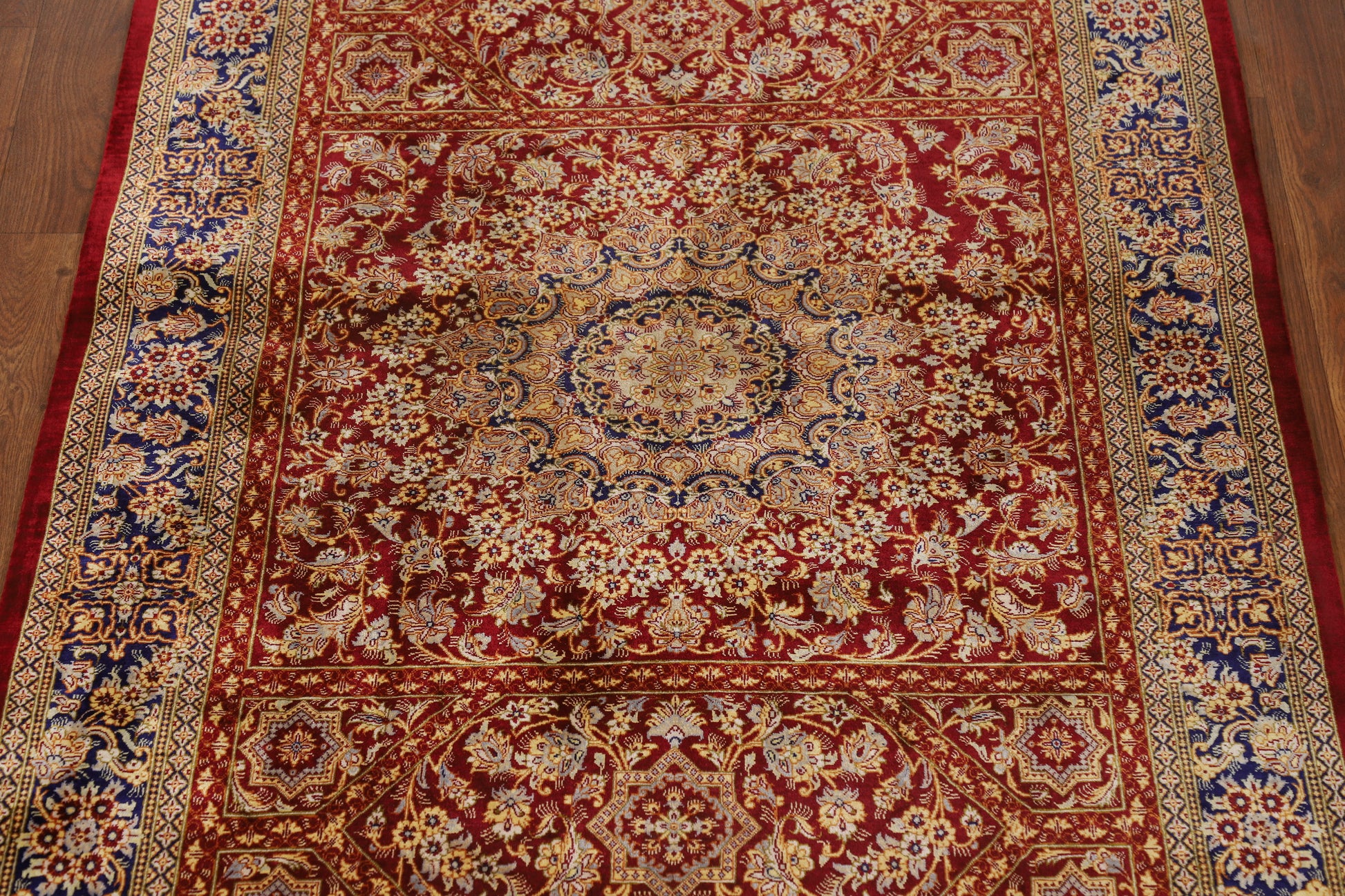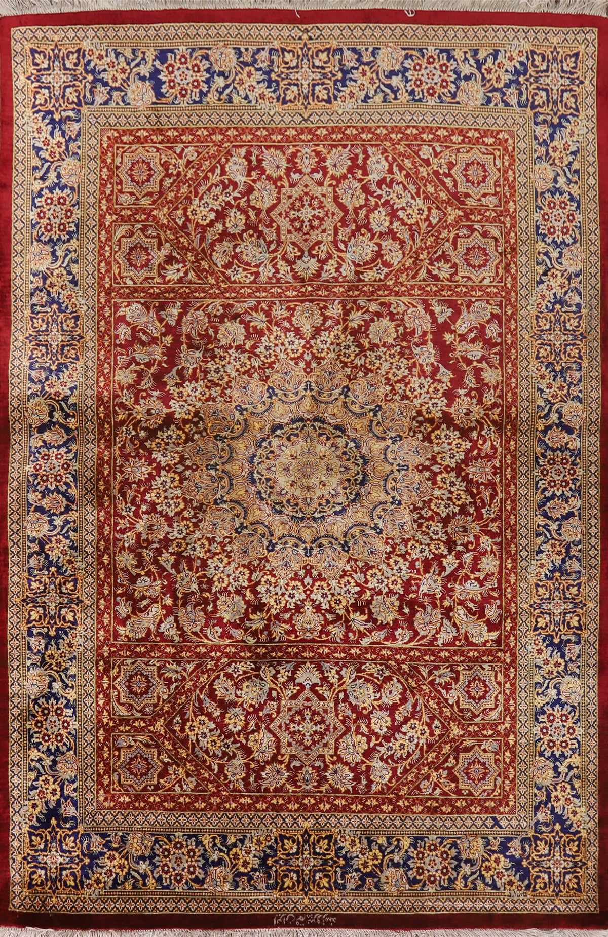 A Beautiful Genuine Persia ( Persia ) Qum rug is Hand Knotted by skillful weavers in Persia ( Persia ) with Silk Material. This rug is in Excellent condition. dimensions are 4' 10'' X 3' 3'' in foot and 147 X 99 in centimeter. the primary color is Red.