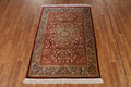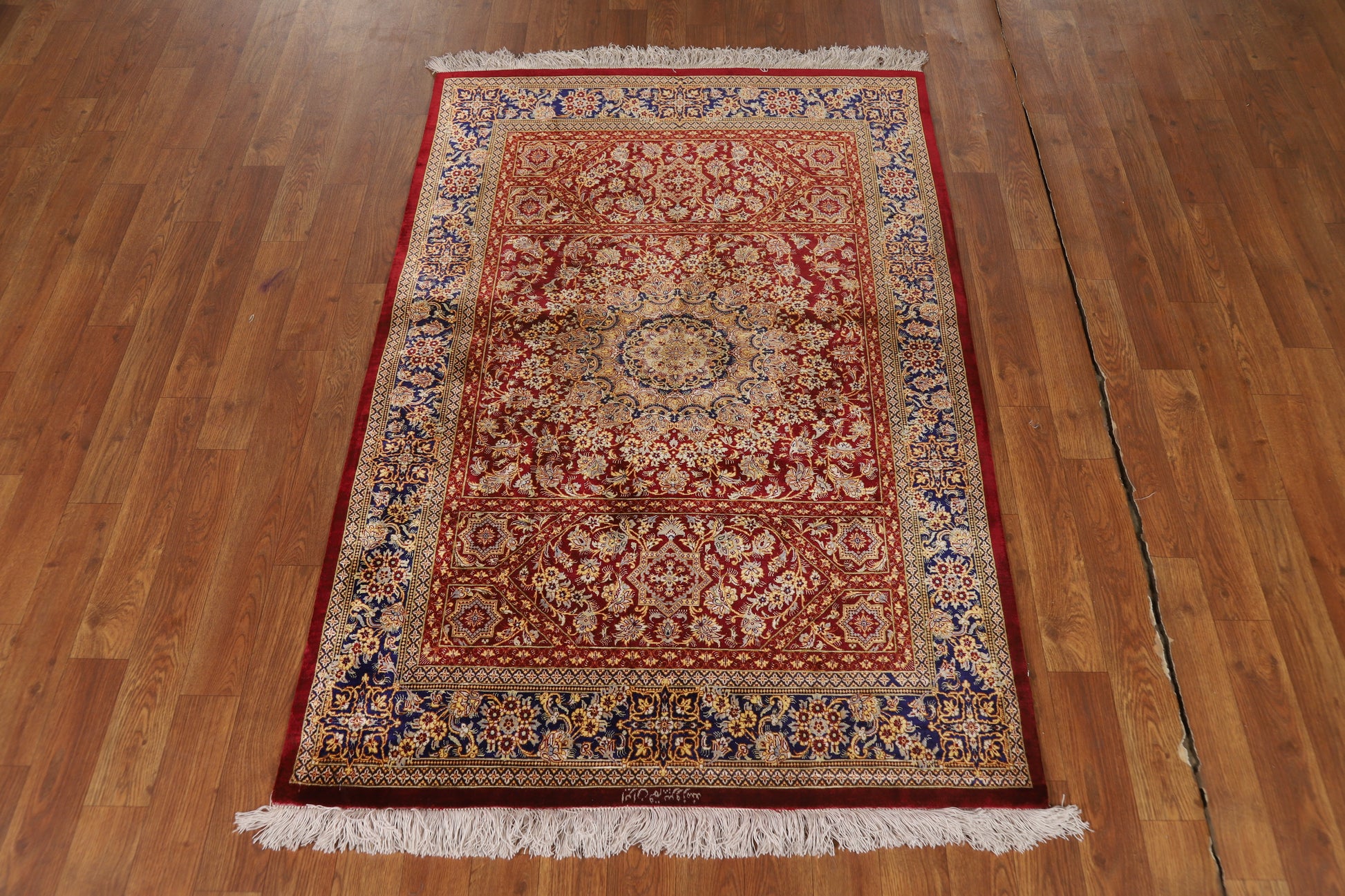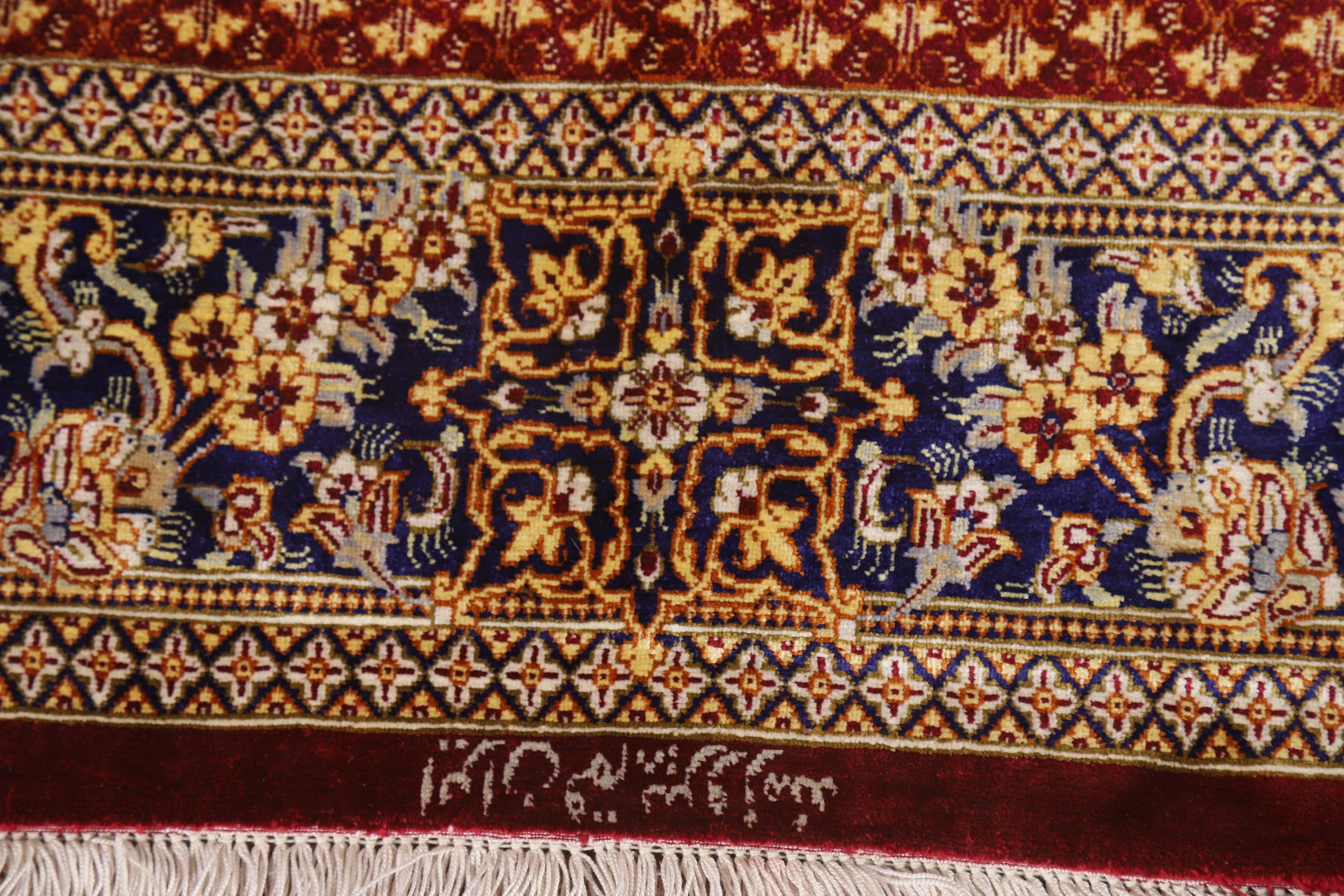 Silk Red Floral Vegetable Dye Signed Qum Persian Rug 3x5