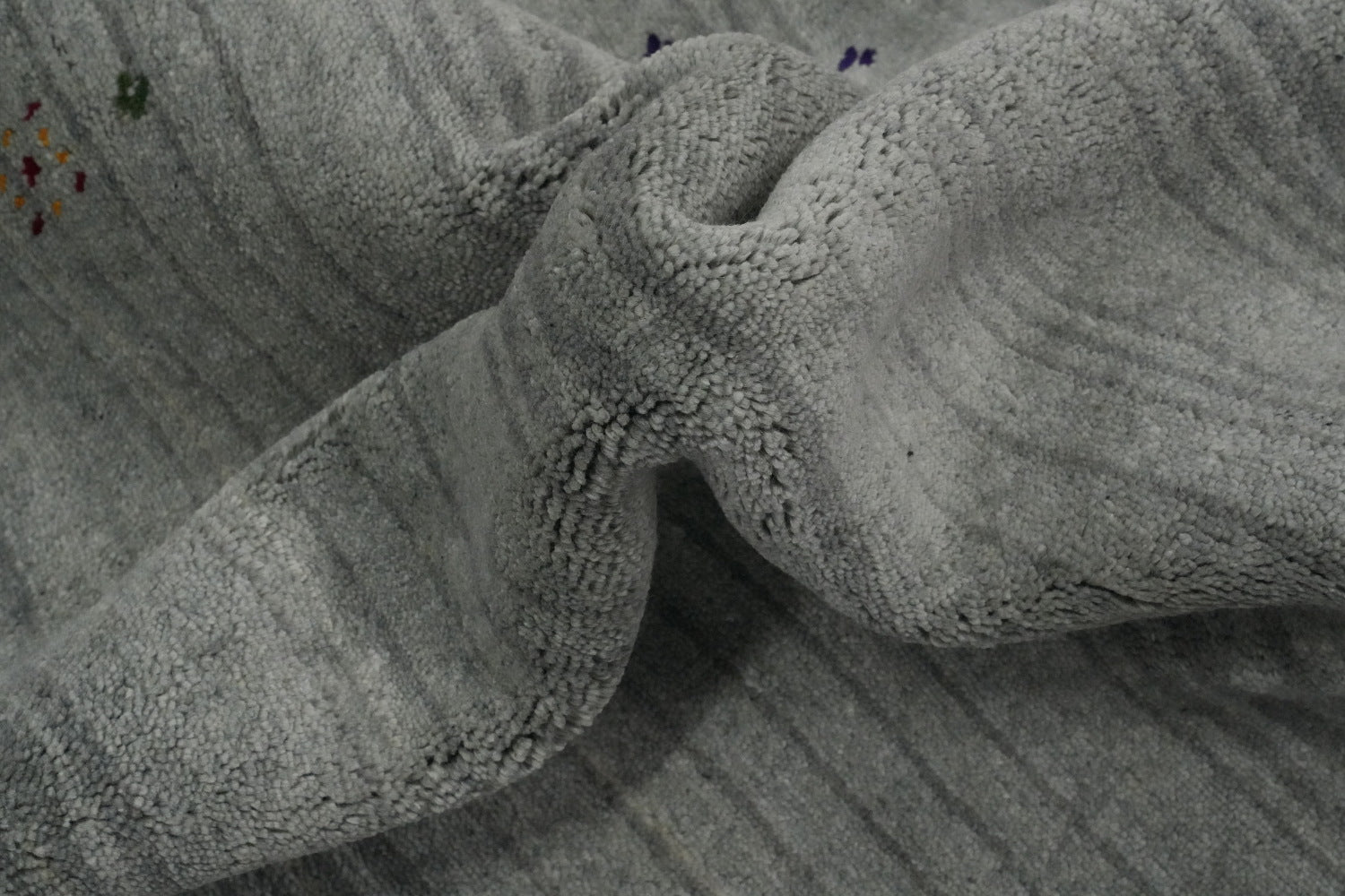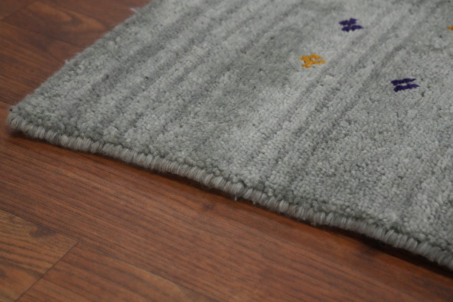 A Beautiful Genuine India Gabbeh rug is Hand Knotted by skillful weavers in India with Silk Material. This rug is in New, First Quality condition. dimensions are 8' 2'' X 7' 9'' in foot and 249 X 236 in centimeter. the primary color is Greys & Charcoal.