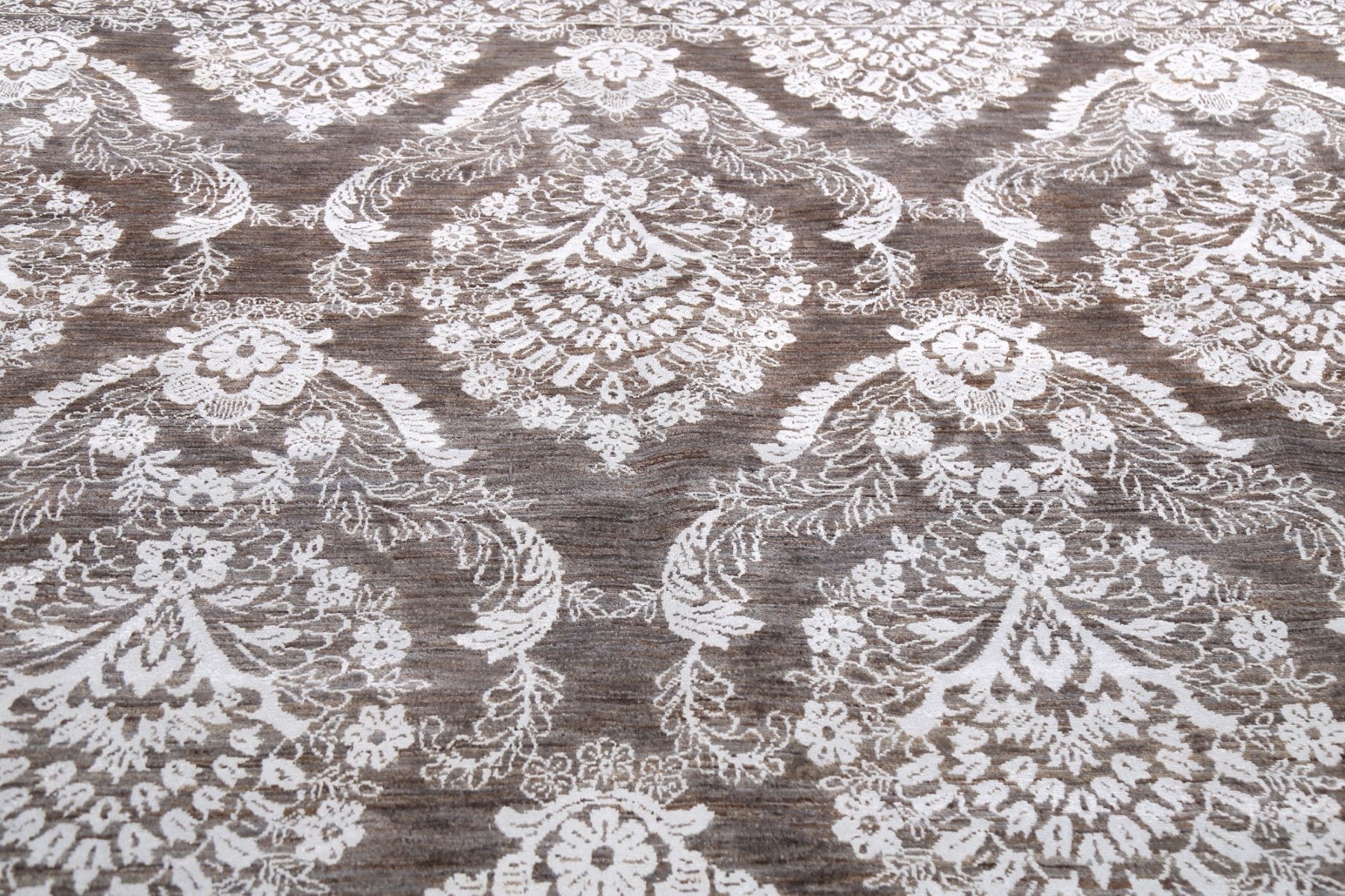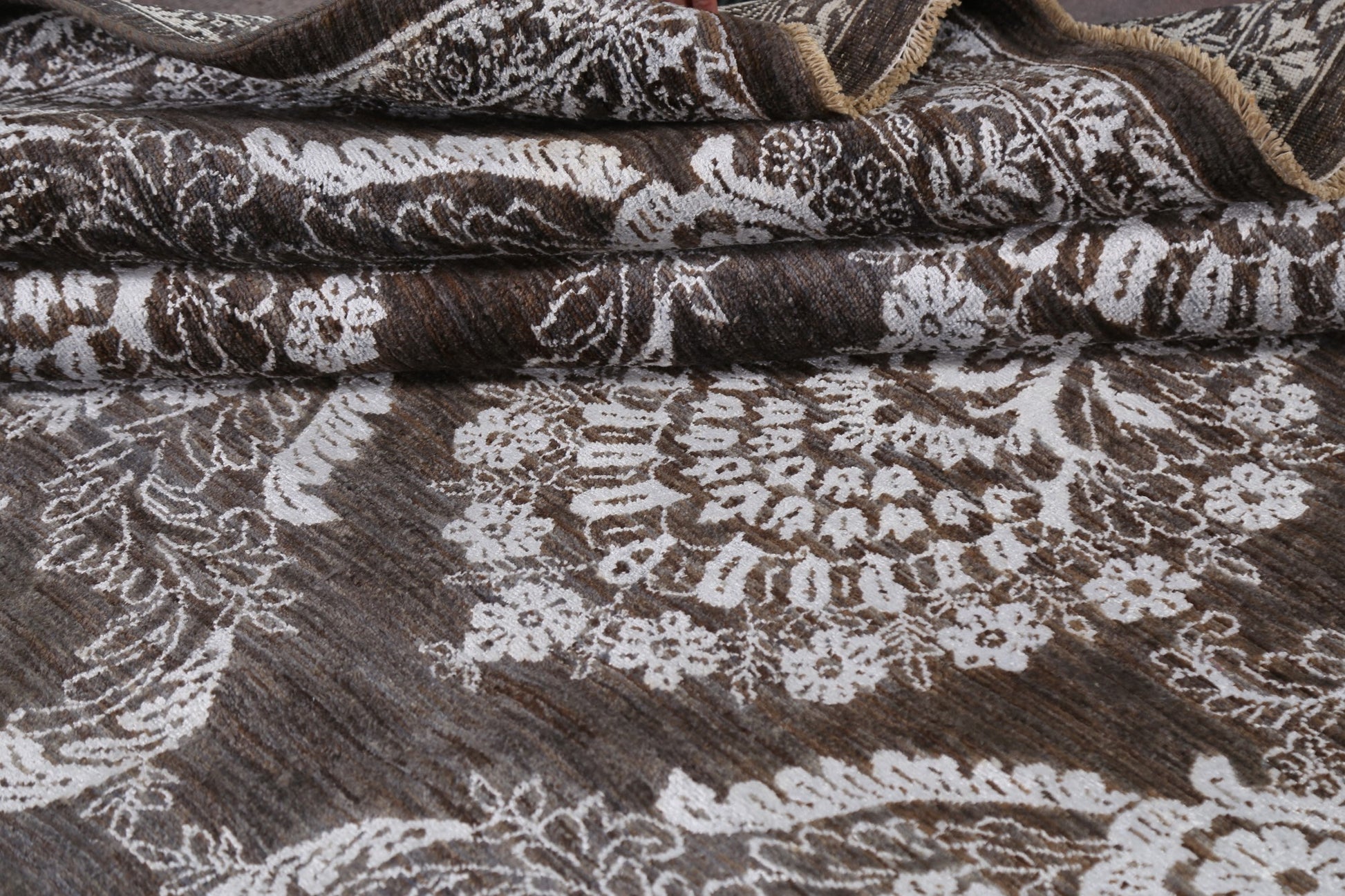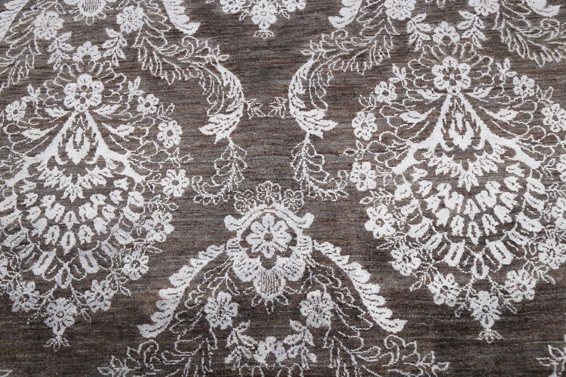 A Beautiful Genuine Pakistan Versace rug is Hand Knotted by skillful weavers in Pakistan with Wool & Silk Material. This rug is in New, First Quality condition. dimensions are 12' 3'' X 8' 11'' in foot and 373 X 272 in centimeter. the primary color is Greys & Charcoal.
