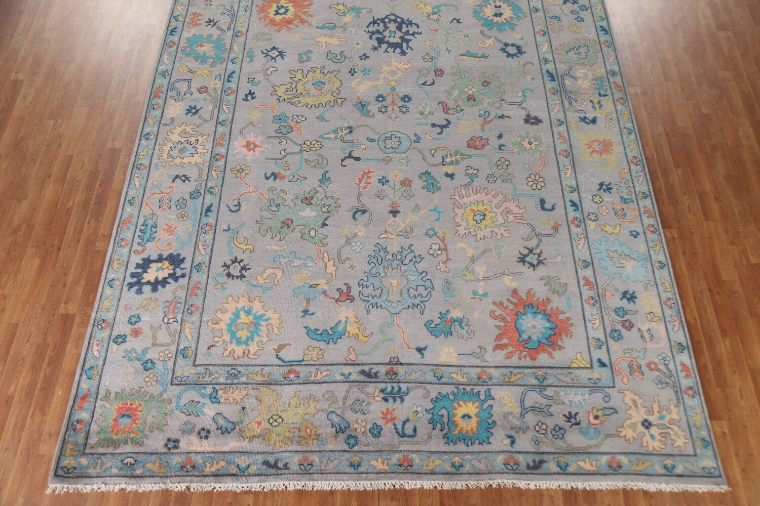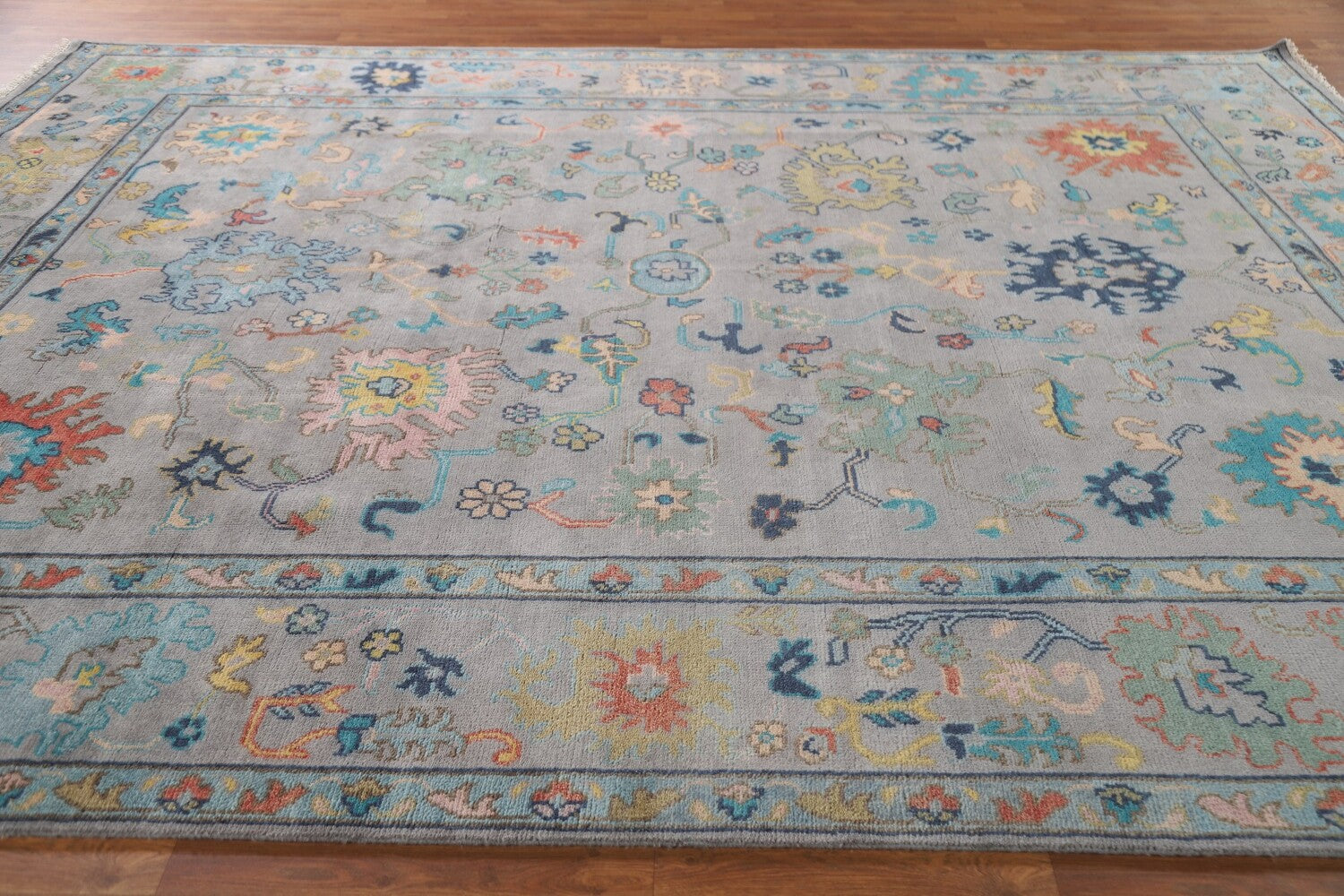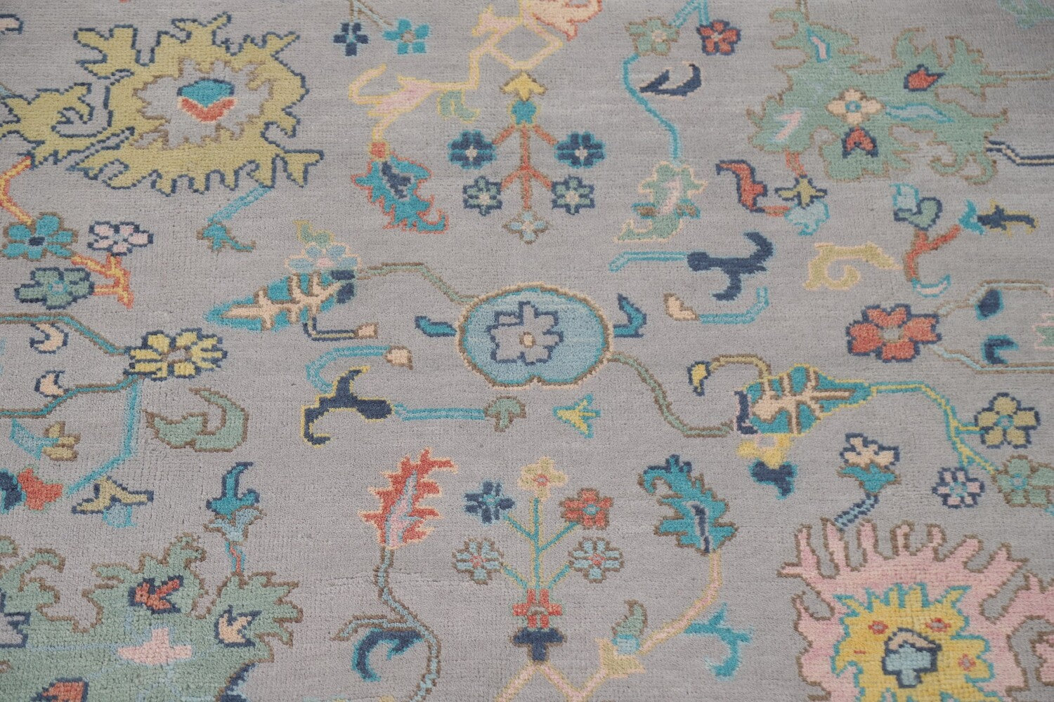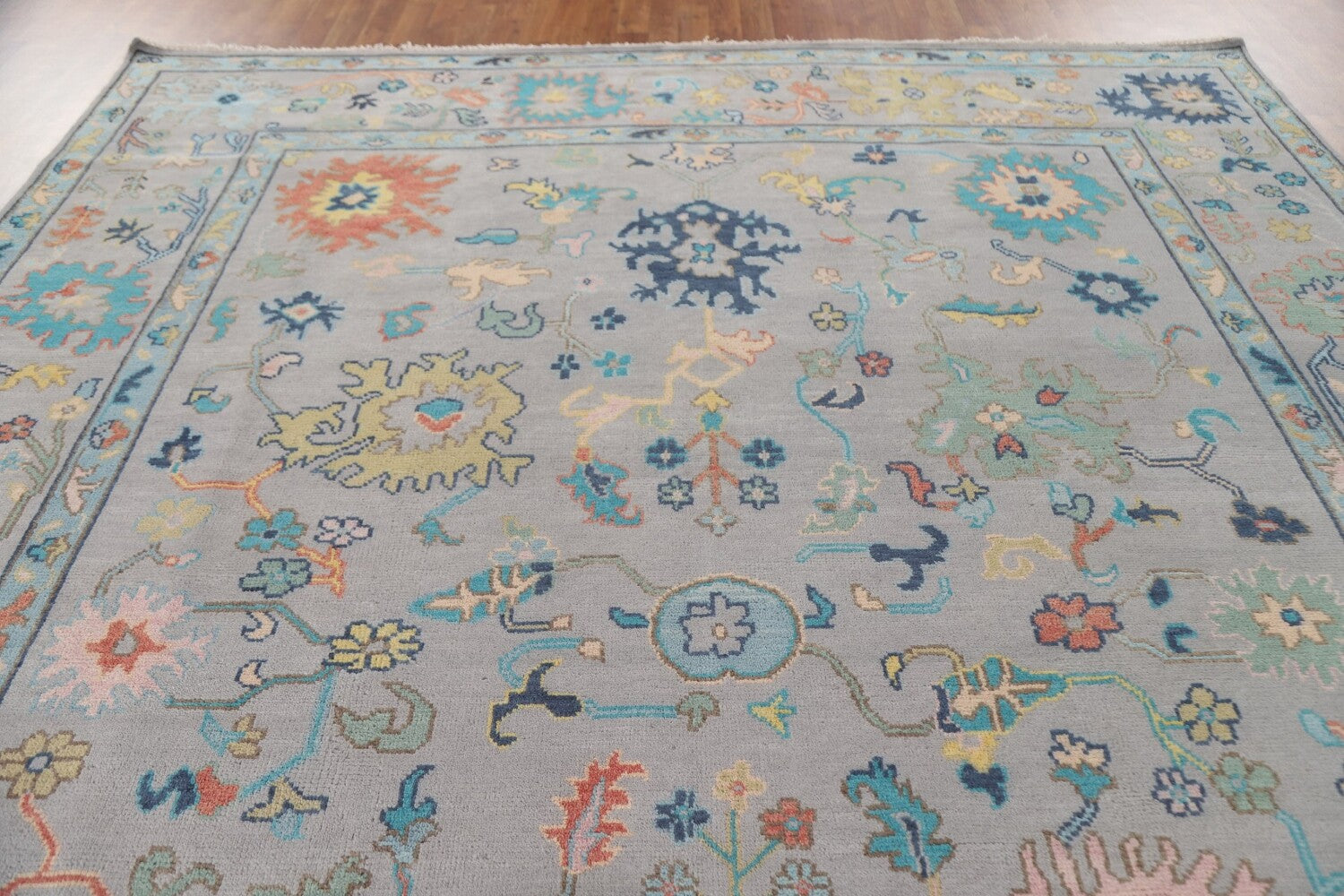 A Beautiful Genuine India Oushak rug is Hand Knotted by skillful weavers in India with 100% Wool Material. This rug is in New, First Quality condition. dimensions are 11' 10'' X 9' 1'' in foot and 361 X 277 in centimeter. the primary color is Greys & Charcoal.