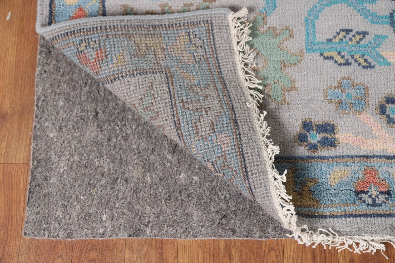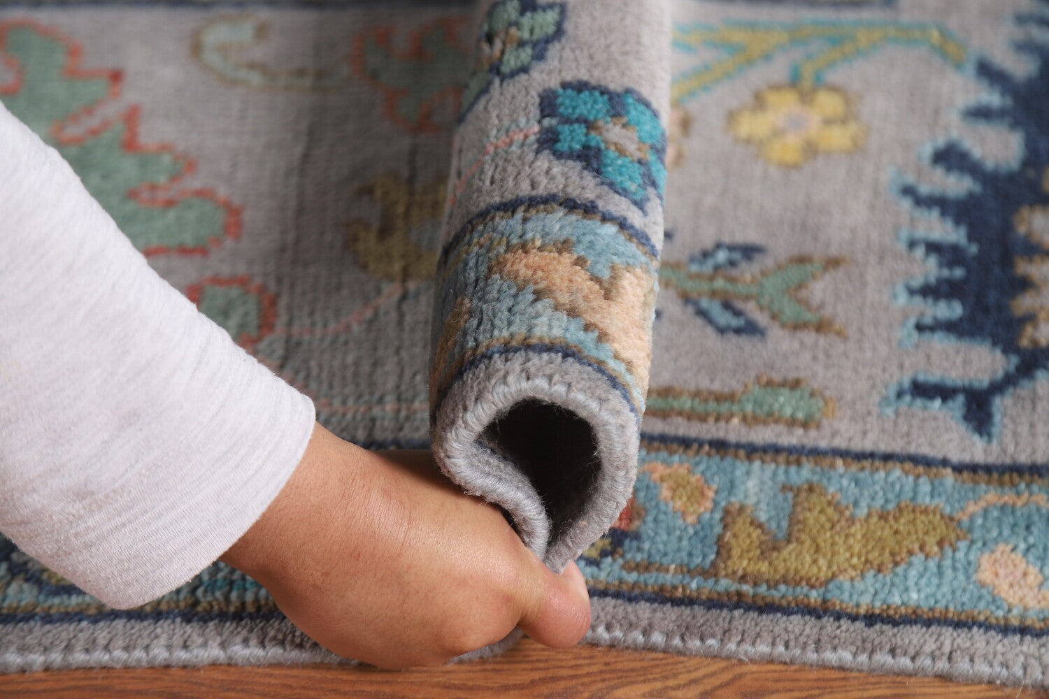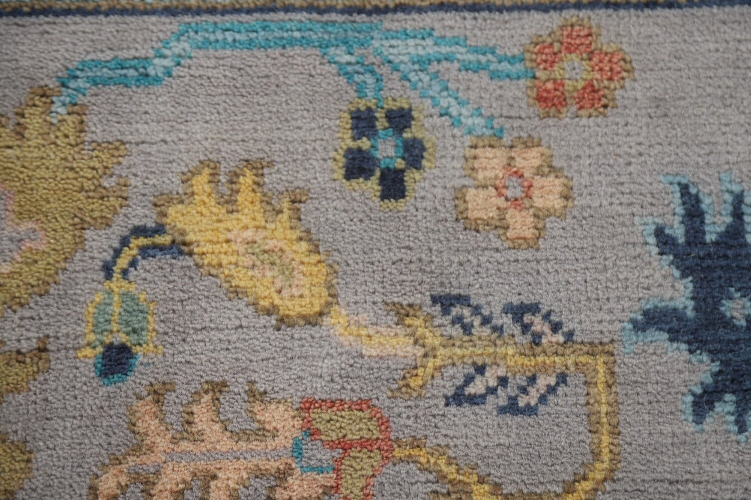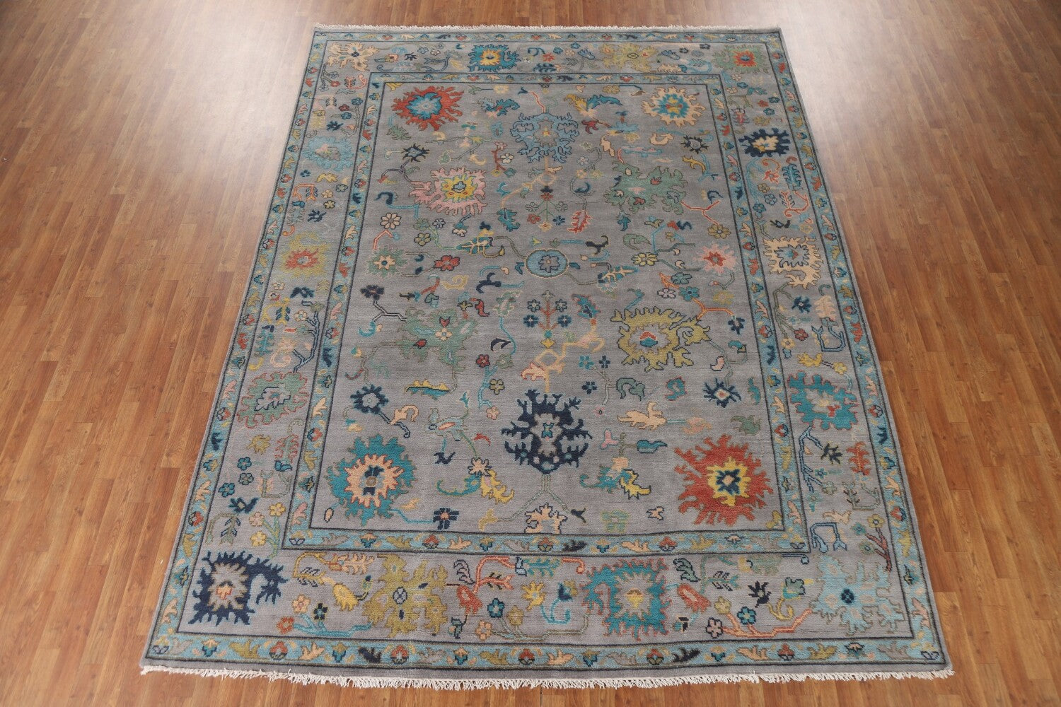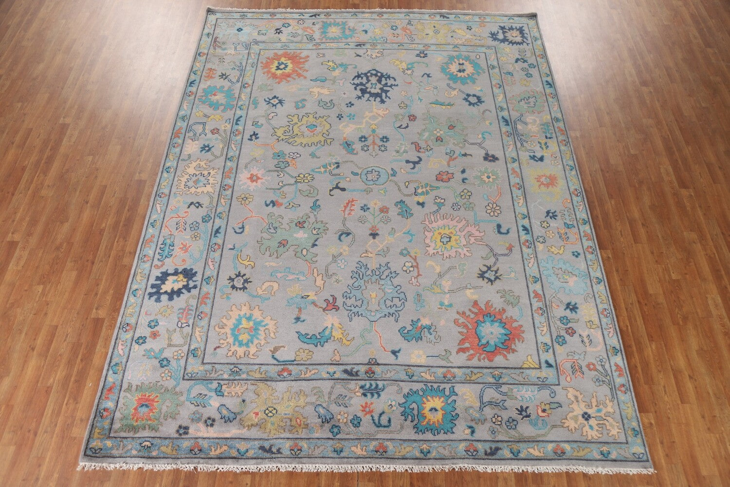 A Beautiful Genuine India Oushak rug is Hand Knotted by skillful weavers in India with 100% Wool Material. This rug is in New, First Quality condition. dimensions are 11' 10'' X 9' 1'' in foot and 361 X 277 in centimeter. the primary color is Greys & Charcoal.