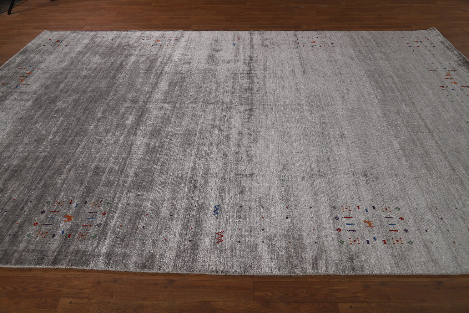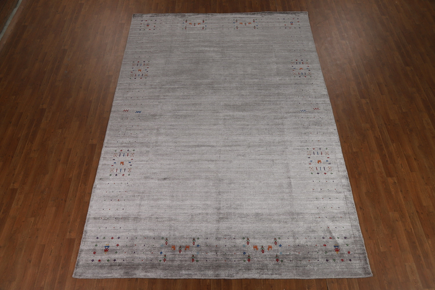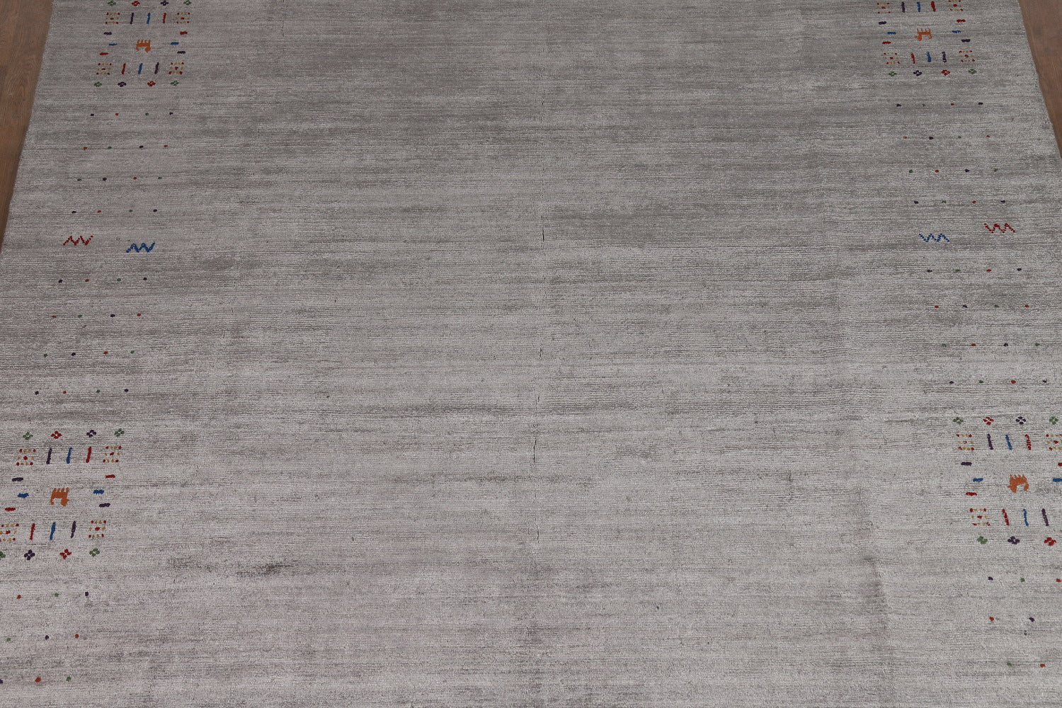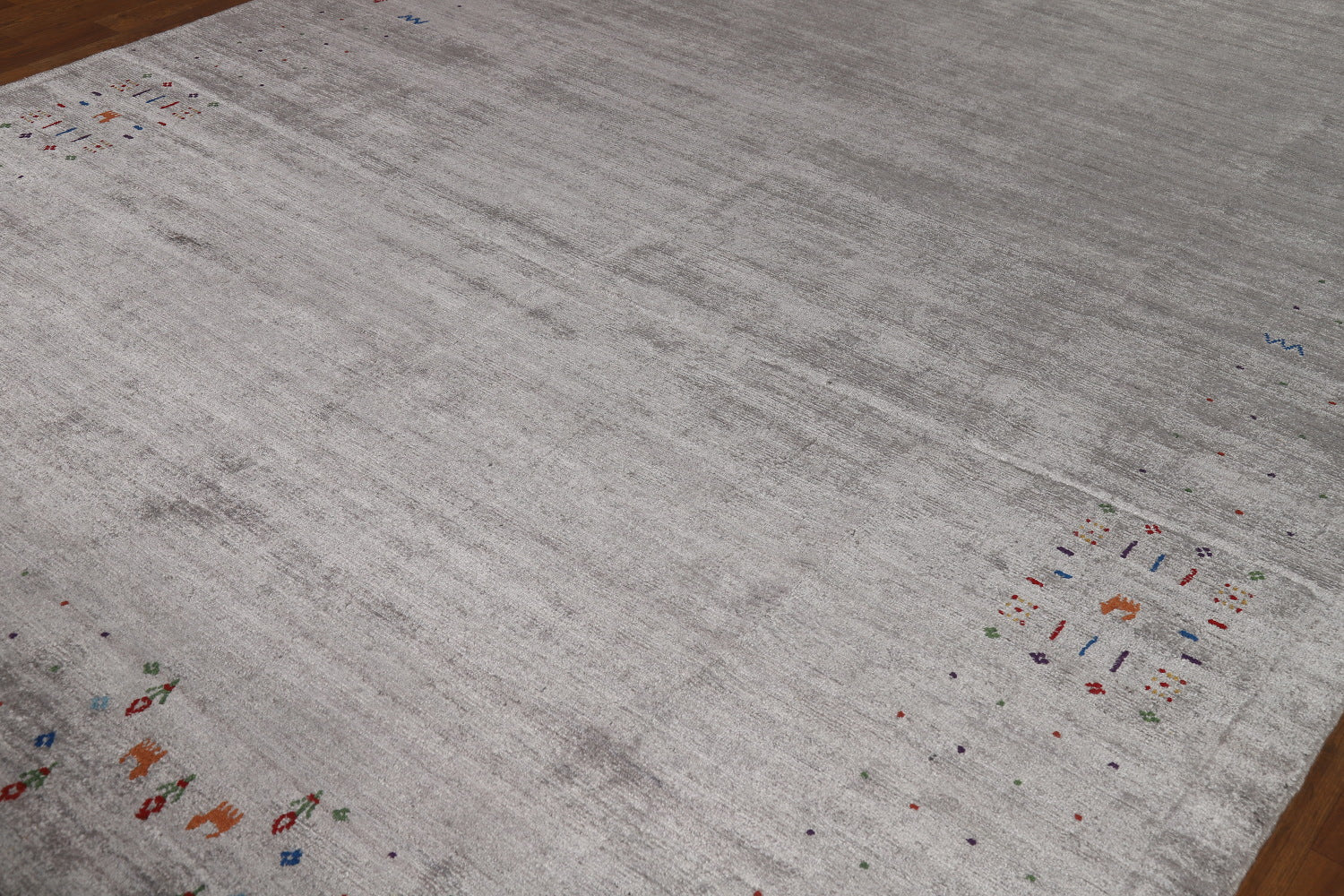 Silver Gray Silk Gabbeh Oriental Area Rug 8x12