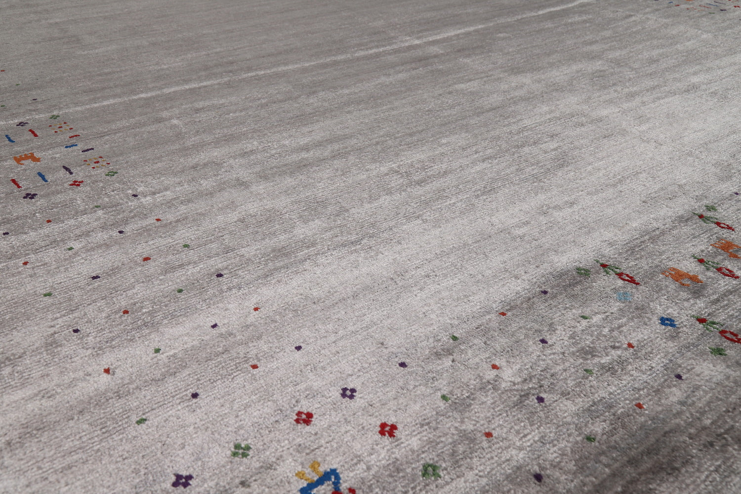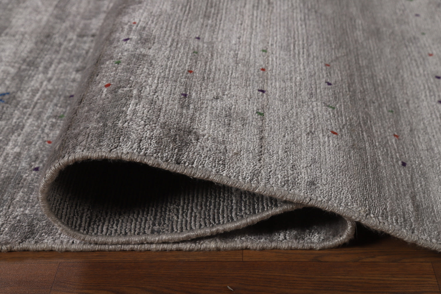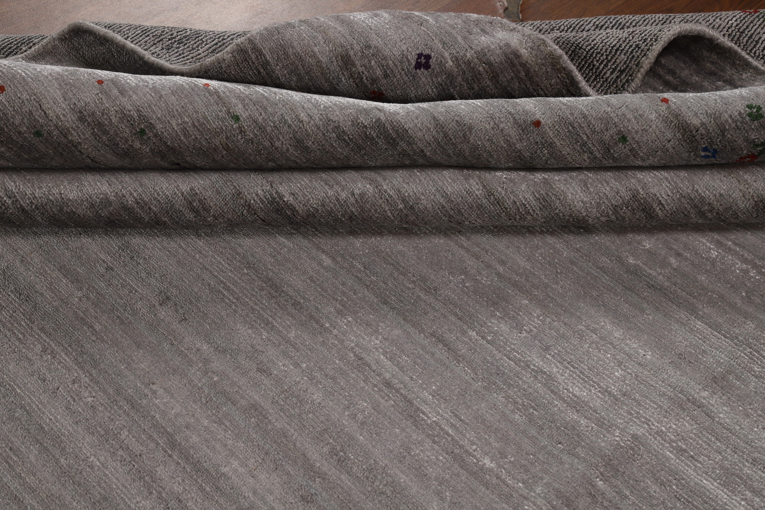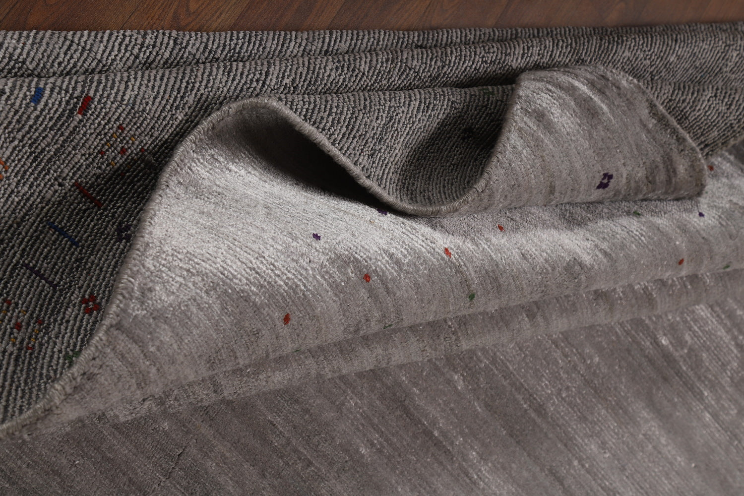 Silver Gray Silk Gabbeh Oriental Area Rug 8x12