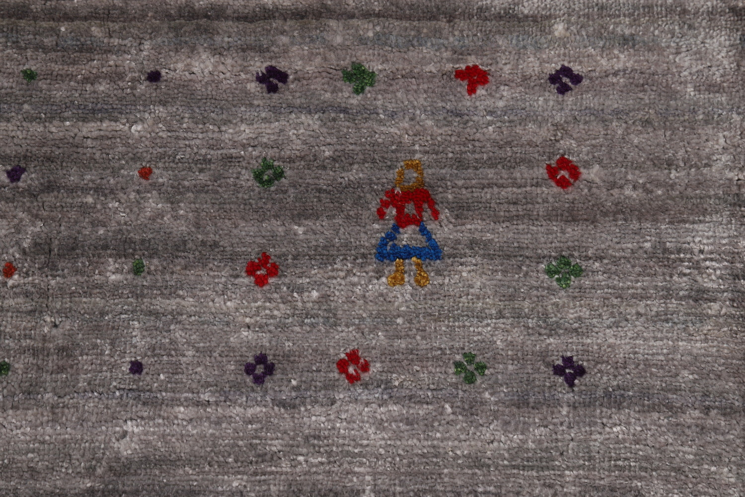 A Beautiful Genuine India Gabbeh rug is Hand Knotted by skillful weavers in India with Silk Material. This rug is in New, First Quality condition. dimensions are 11' 6'' X 7' 11'' in foot and 351 X 241 in centimeter. the primary color is Greys & Charcoal.