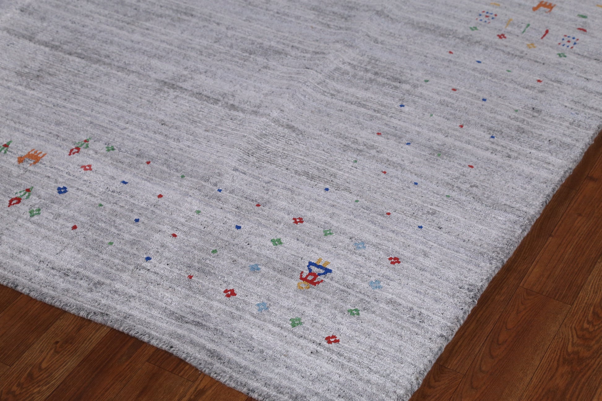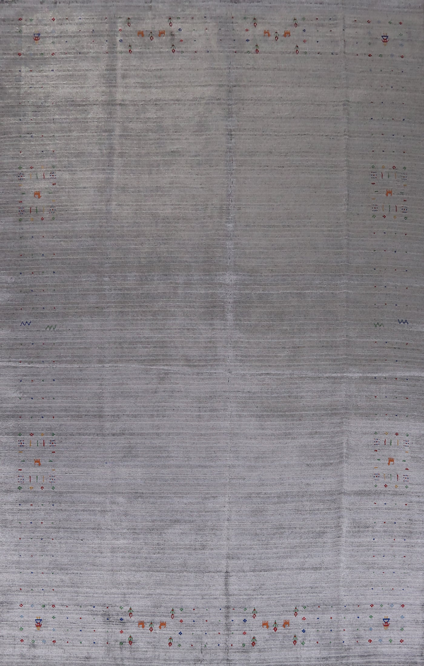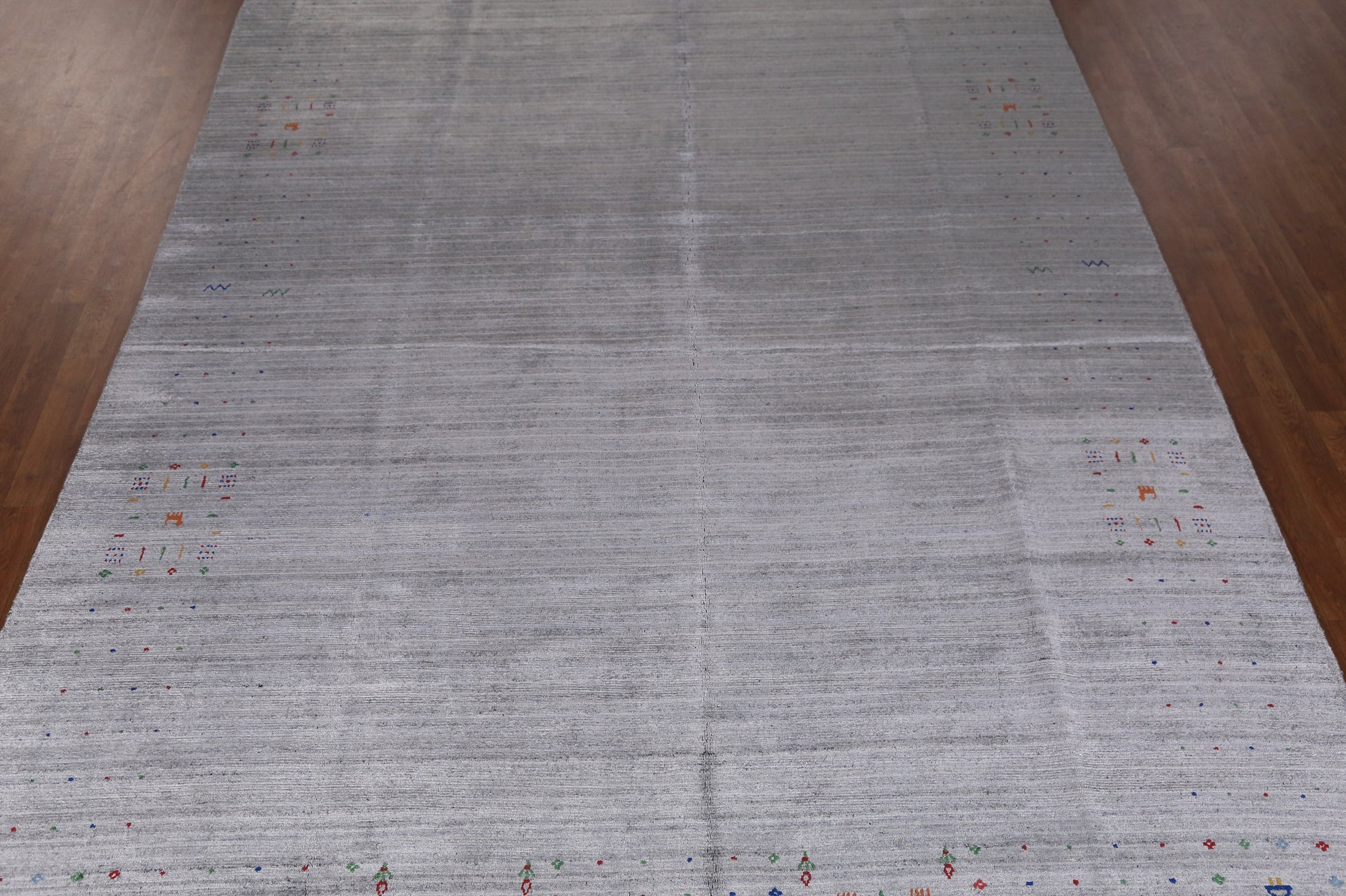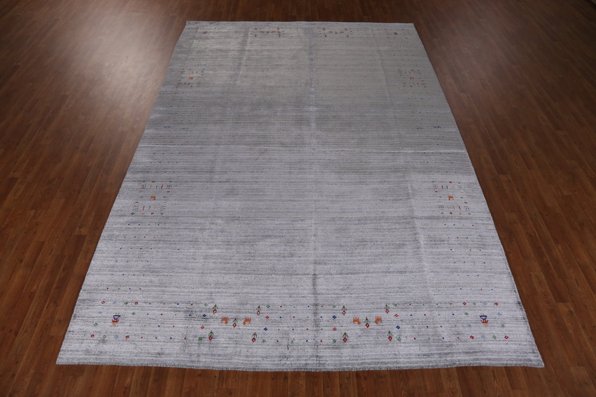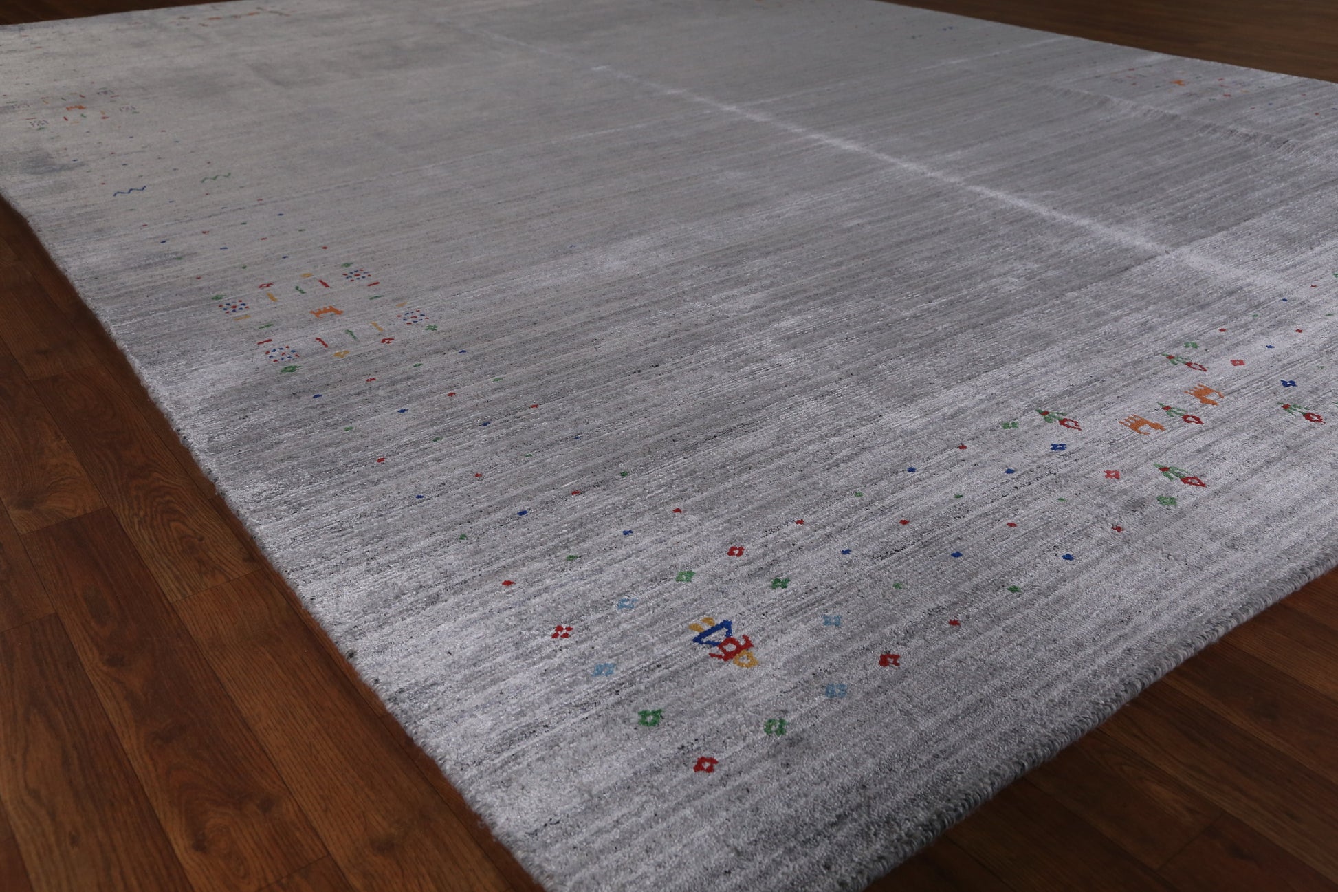 Silver Gray Silk Gabbeh Oriental Area Rug 8x12