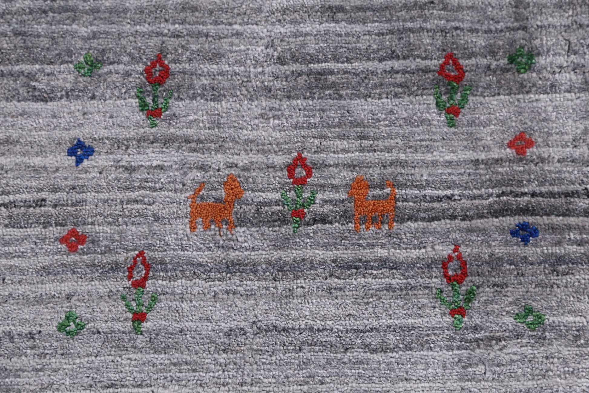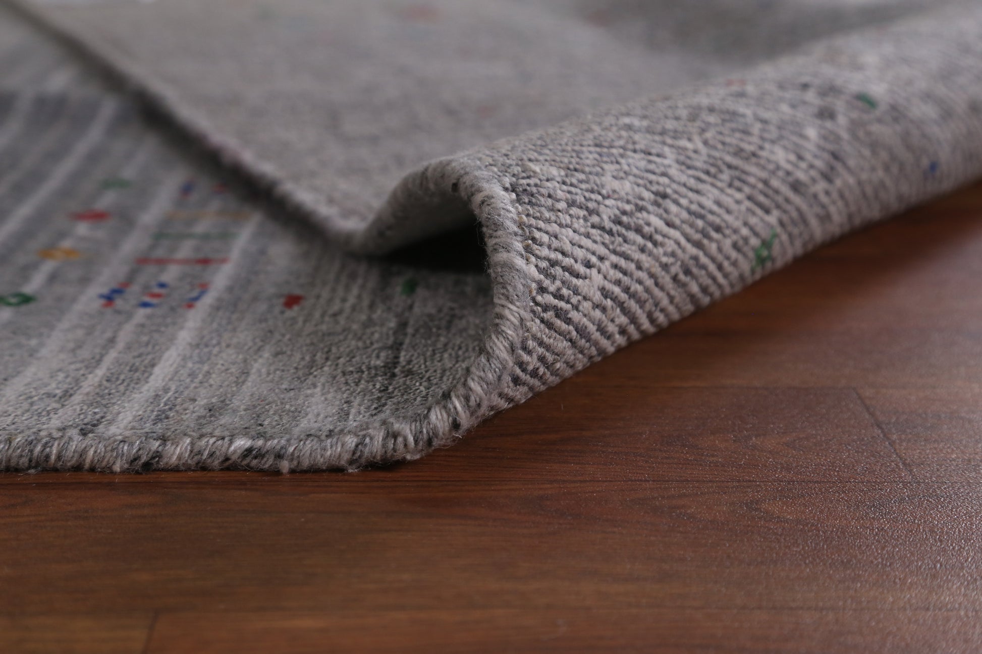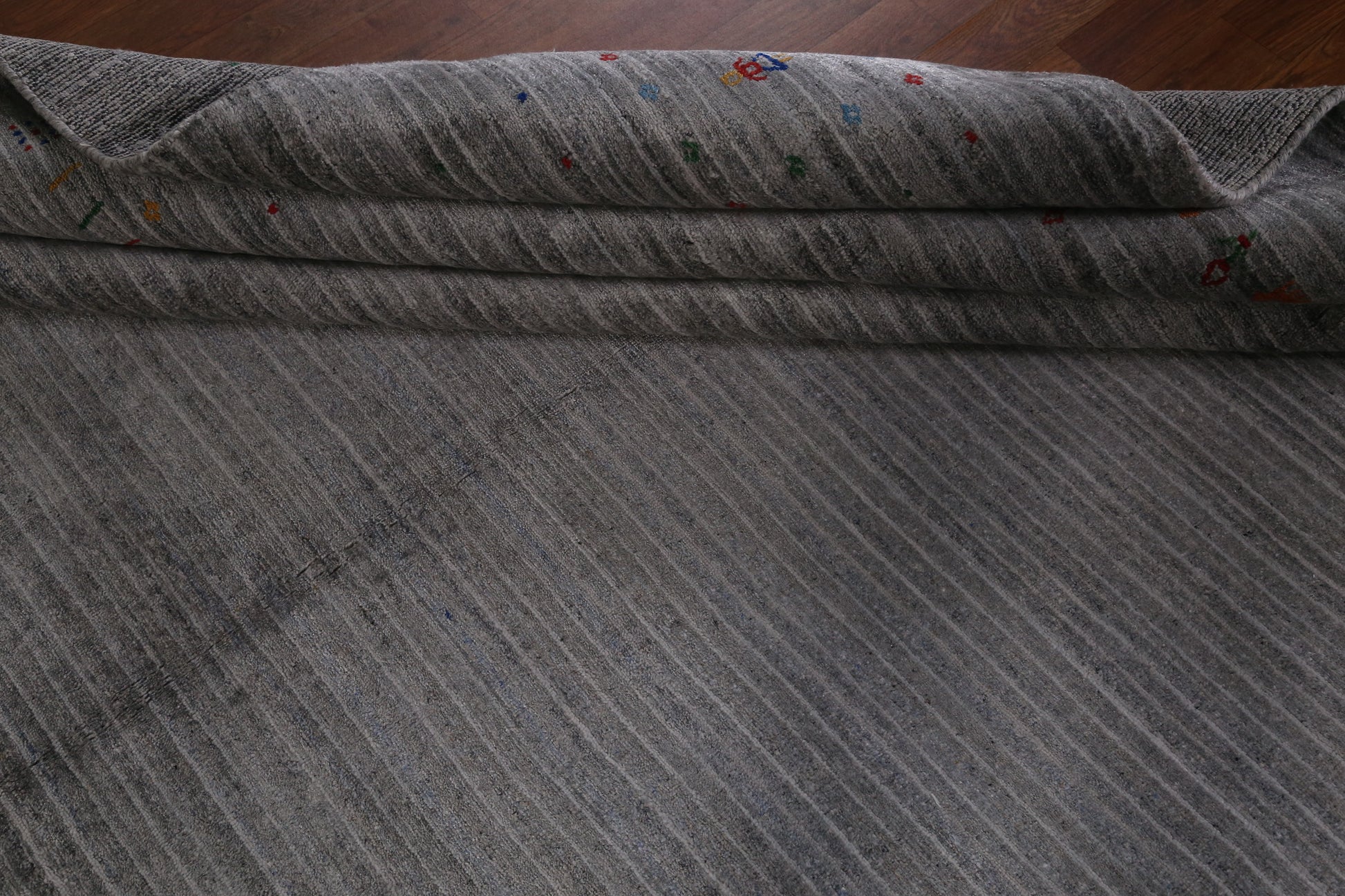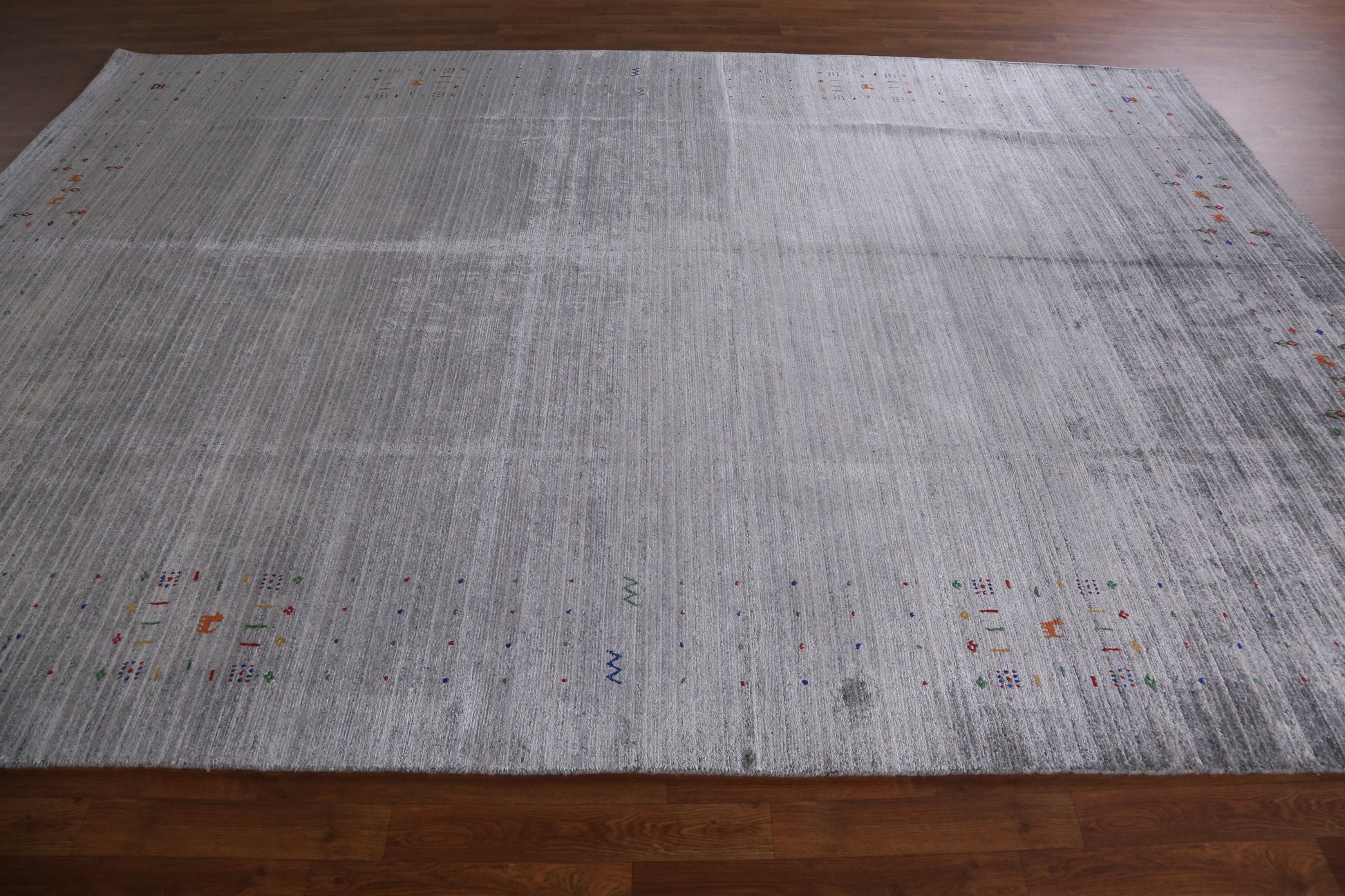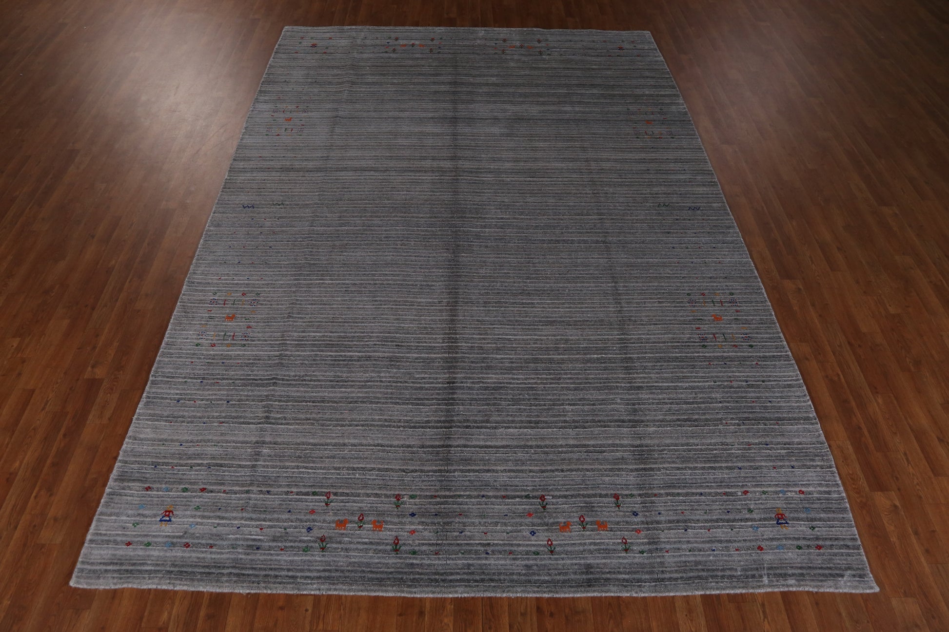 Silver Gray Silk Gabbeh Oriental Area Rug 8x12